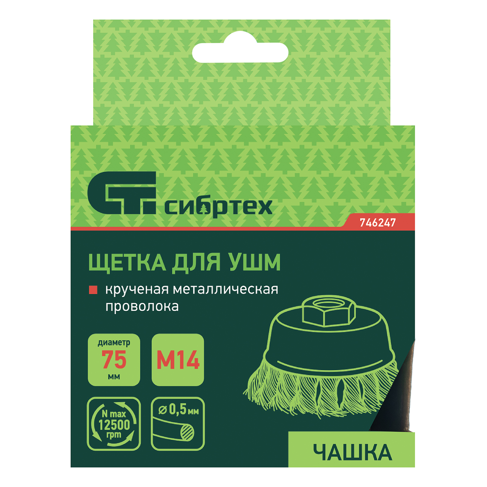 <p>Щетка Сибртех «Чашка» 746247 диаметром 75 мм, с присоединительной резьбой М14, с щетиной из крученой проволоки диаметром 0,5 мм, устанавливается на УШМ, поддерживающую работу со скоростью 12500 об/мин. Изделие предназначено для грубой (черновой) обработки поверхностей и подходит для удаления загрязнений, снятия толстого слоя ржавчины, ЛКМ, зачистки сварных швов.</p><h2>Преимущества</h2><ul><li>Прочность и долговечность — щетина из крученой стальной проволоки выдерживает значительные нагрузки.</li><li>Высокая производительность — насадка формы «чашка» оптимальна для зачистки больших поверхностей.</li><li>Универсальность — щетка подходит для обработки любых твердых материалов: металла, древесины, цветных металлов, пластика и т. д.</li><li>Устойчивость к разрушению — корпус покрыт эмалью, а щетина —техническим маслом.</li></ul>