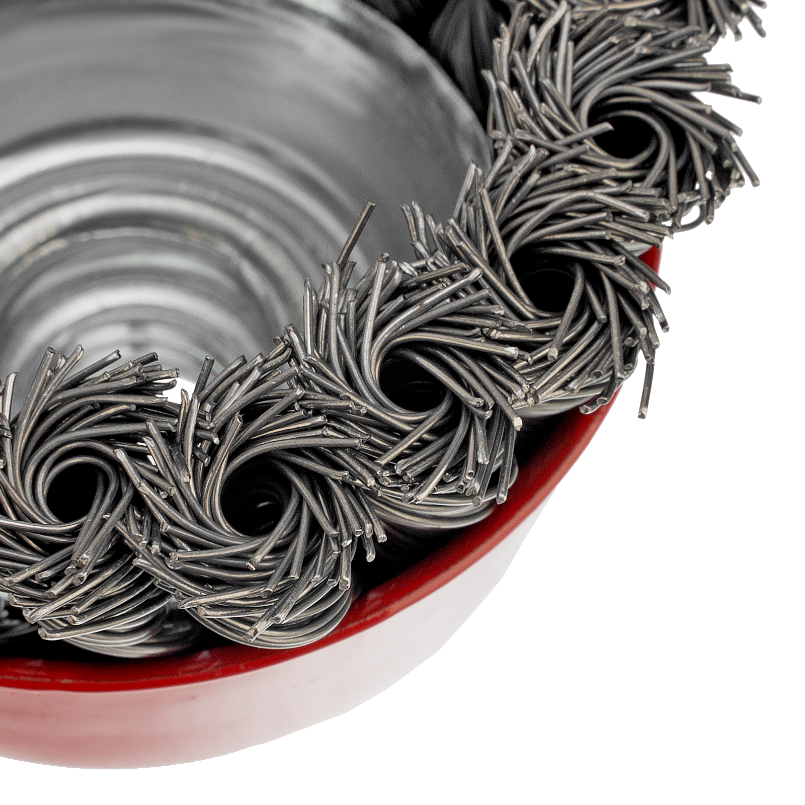 Прочность и долговечность — щетина из крученой стальной проволоки выдерживает значительные нагрузки.
