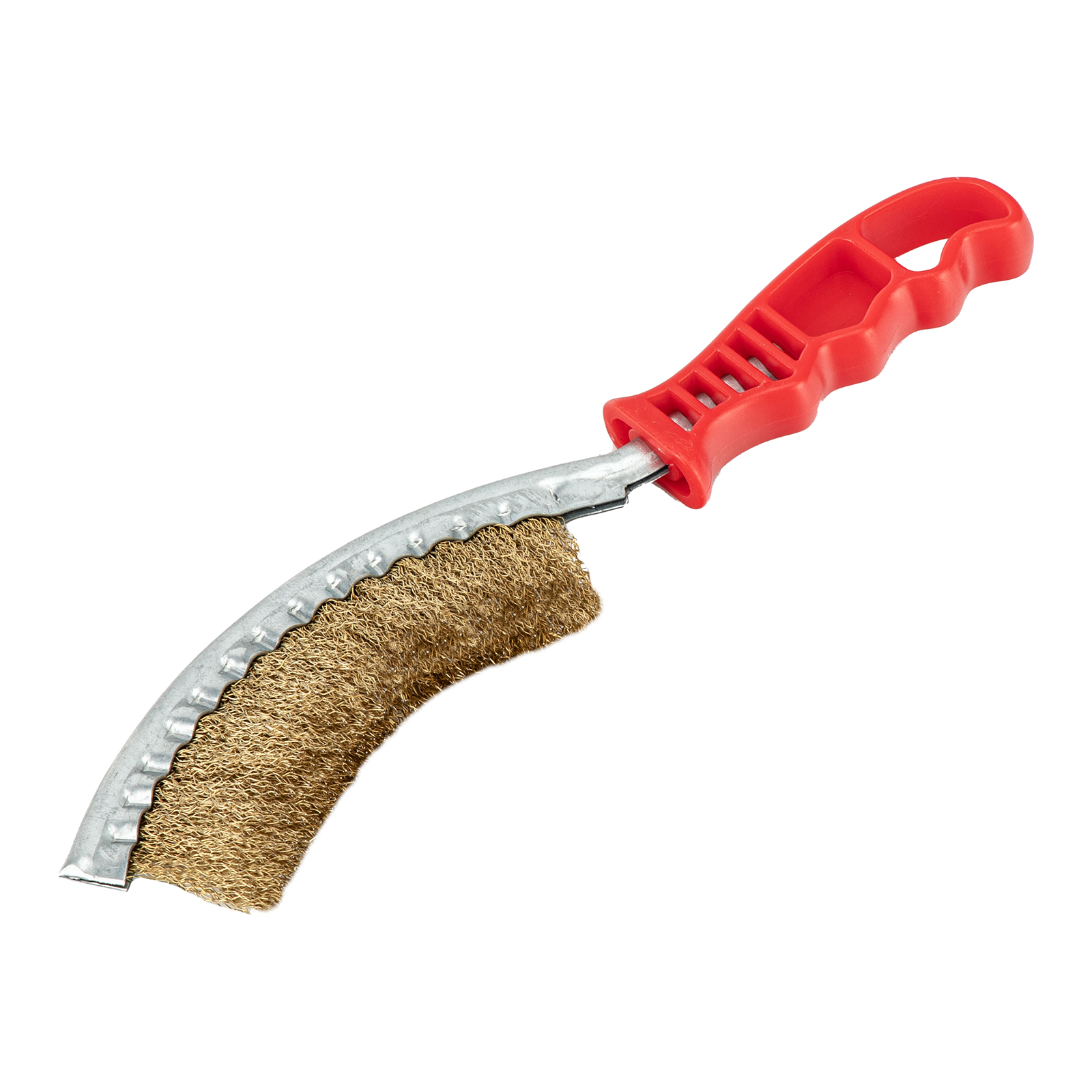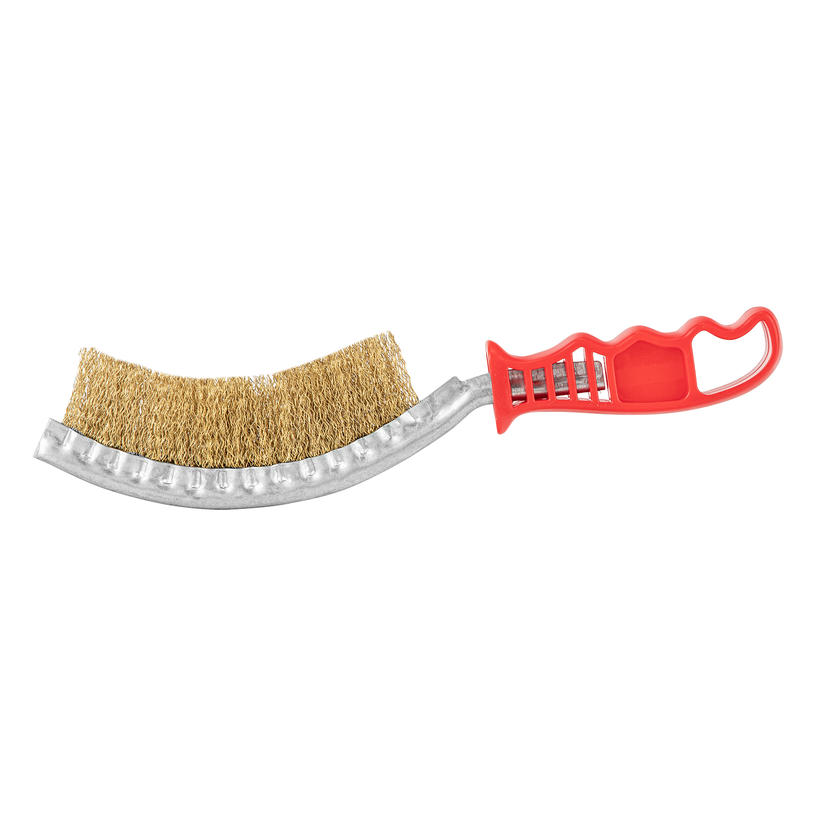 Изогнутая металлическая щетка Matrix 74839 с пластиковой ручкой эффективно очищает металлические, деревянные и другие поверхности от ржавчины, различных загрязнений и остатков лакокрасочных покрытий. Изогнутой щеткой удобно обрабатывать изделия цилиндрической формы, например, трубы. Инструмент пригодится во время строительства или ремонта, будет полезен в гараже, на производстве или в быту.