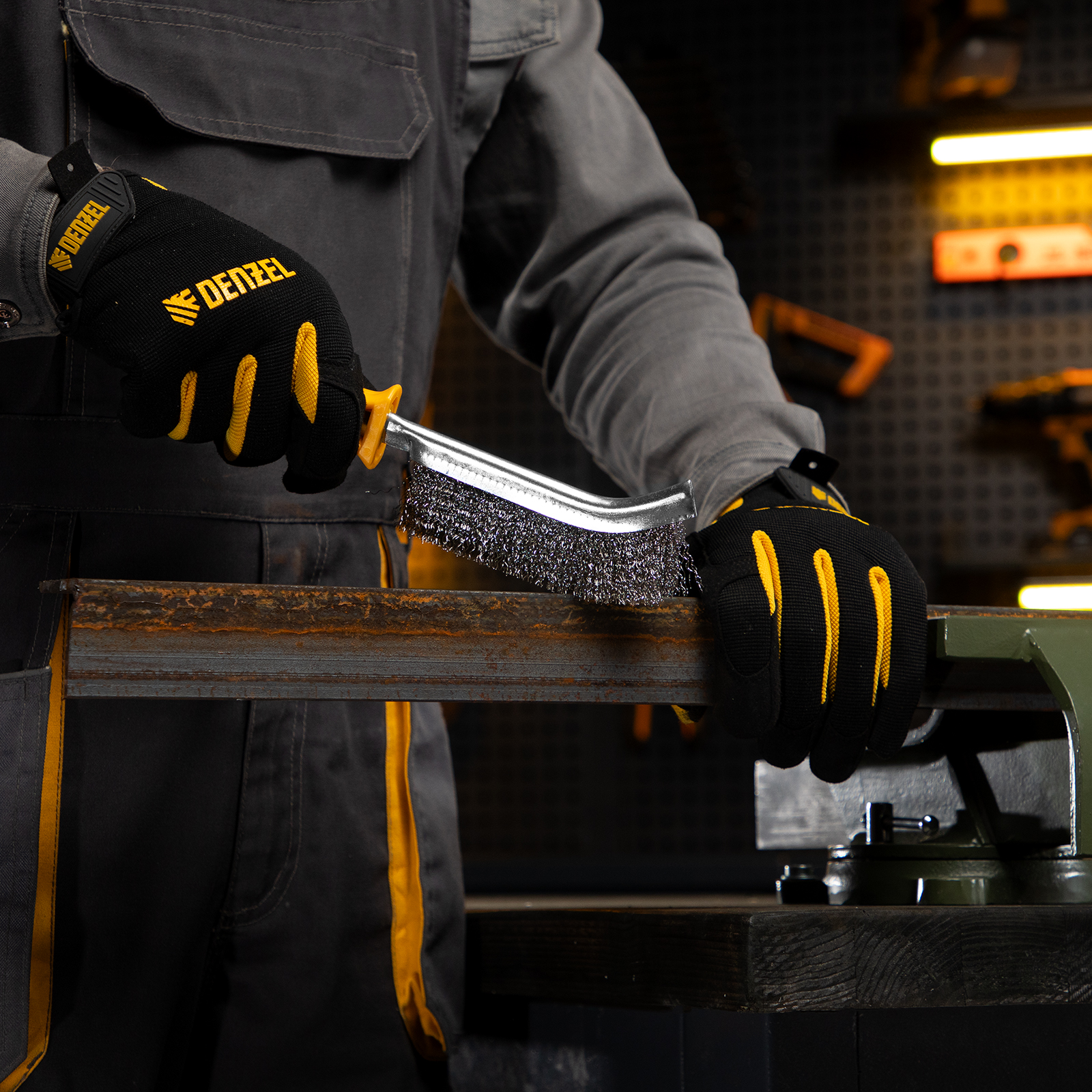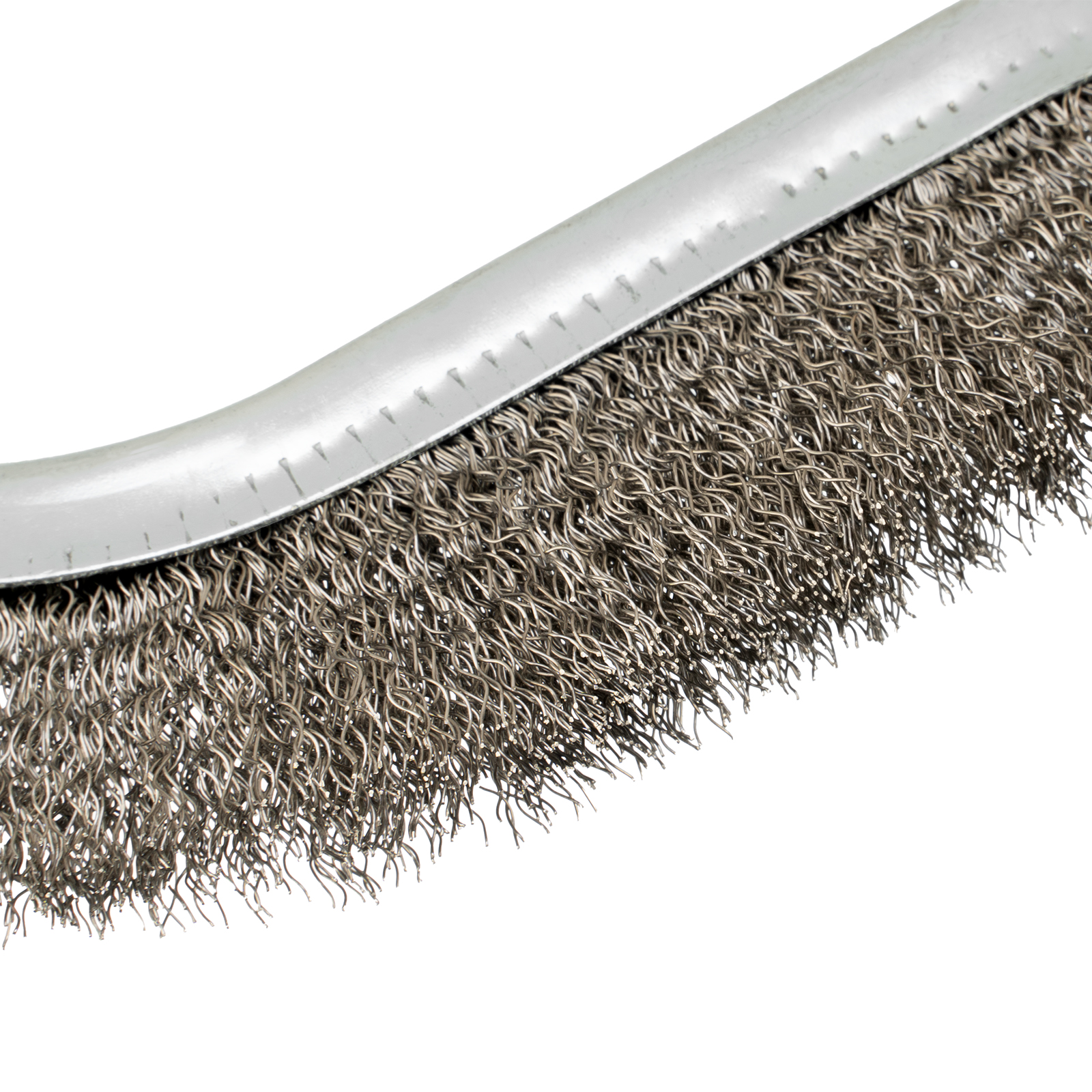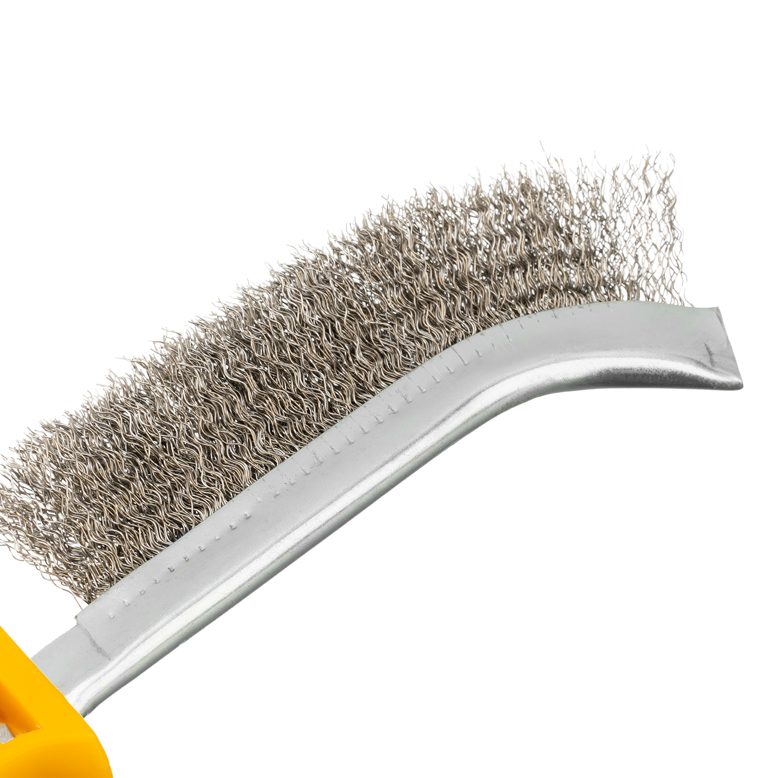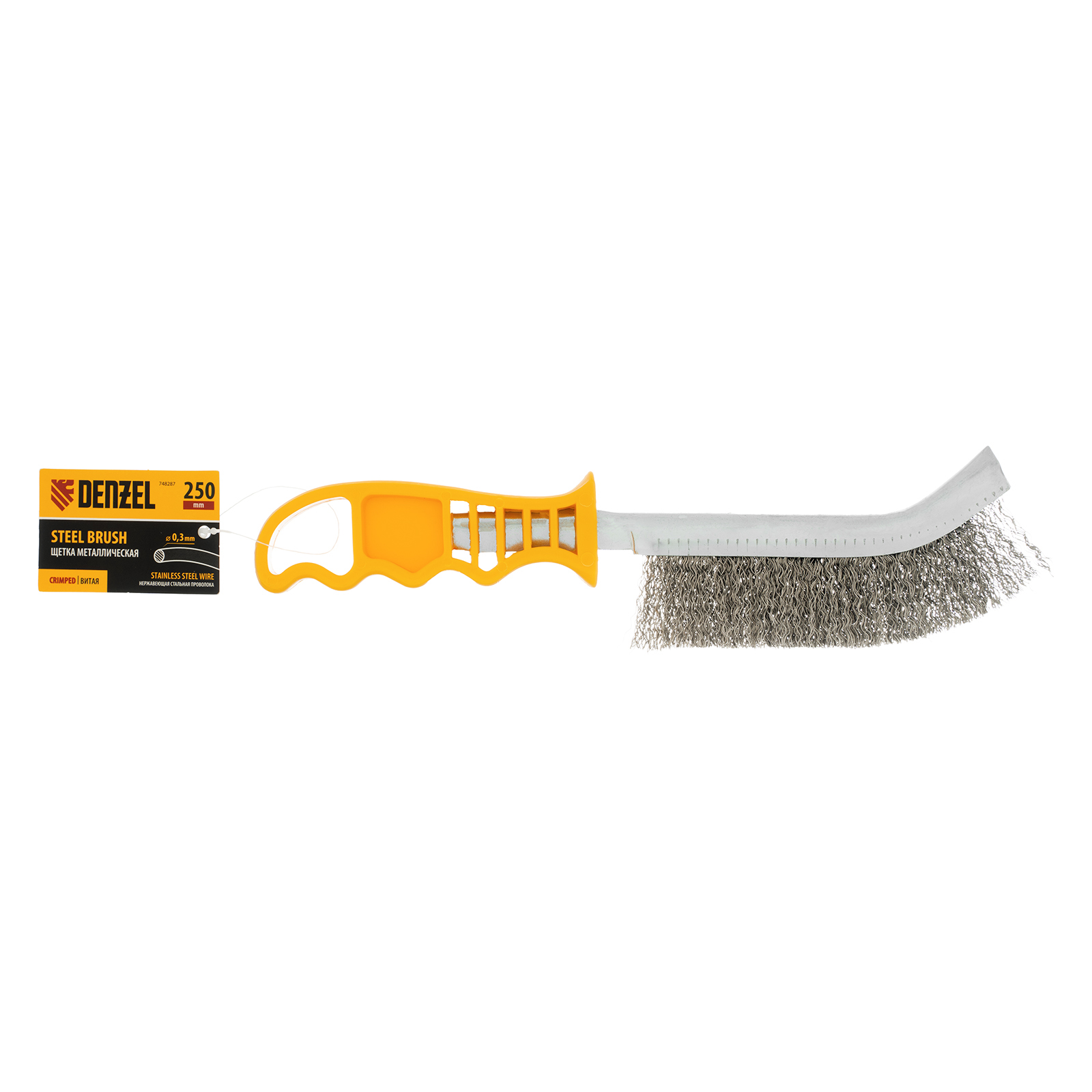 Металлическая зачистная щетка Denzel 748287 с пластмассовой рукояткой и щетиной из нержавеющей проволоки, используется для очищения металлических, деревянных и других поверхностей от ржавчины, загрязнений, остатков лакокрасочных покрытий. Щетина из нержавейки с высокой абразивной способностью обеспечивает эффективность щетки. Благодаря изогнутому корпусу щетка удобна для обработки поверхностей со сложным рельефом. Инструмент пригодится во время строительства, кузовного ремонта, а также на производстве и в быту.