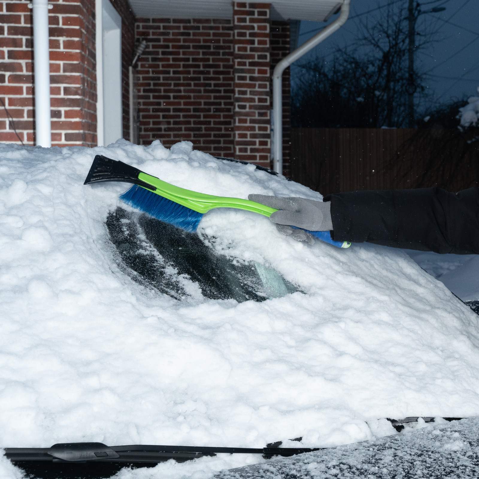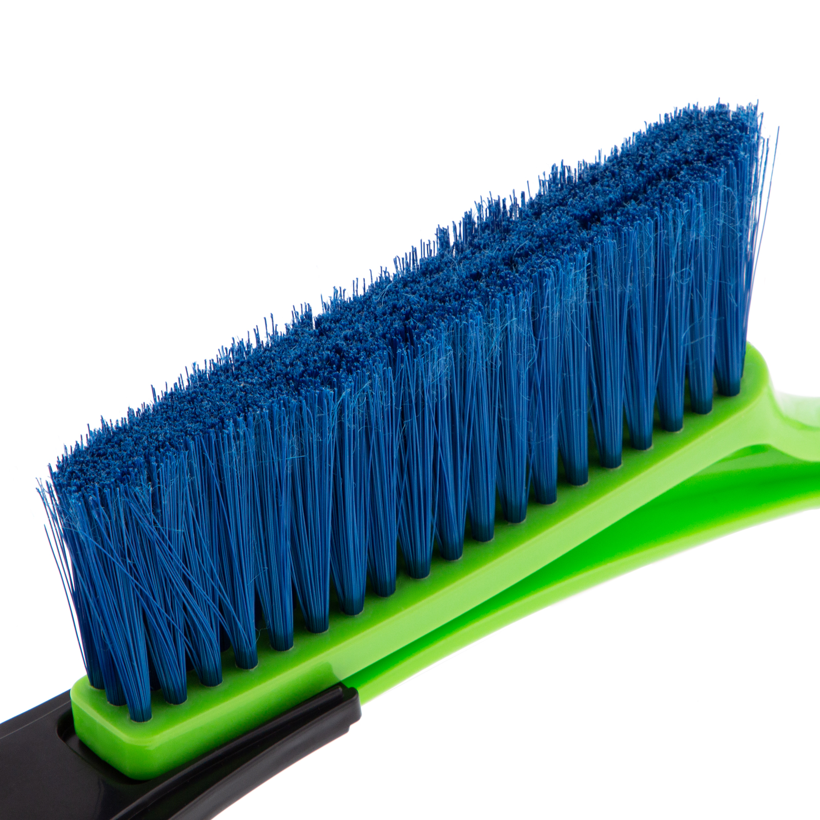 - Комфортная эксплуатация — благодаря мягкой накладке на рукоятке щетку удобно держать без перчаток.