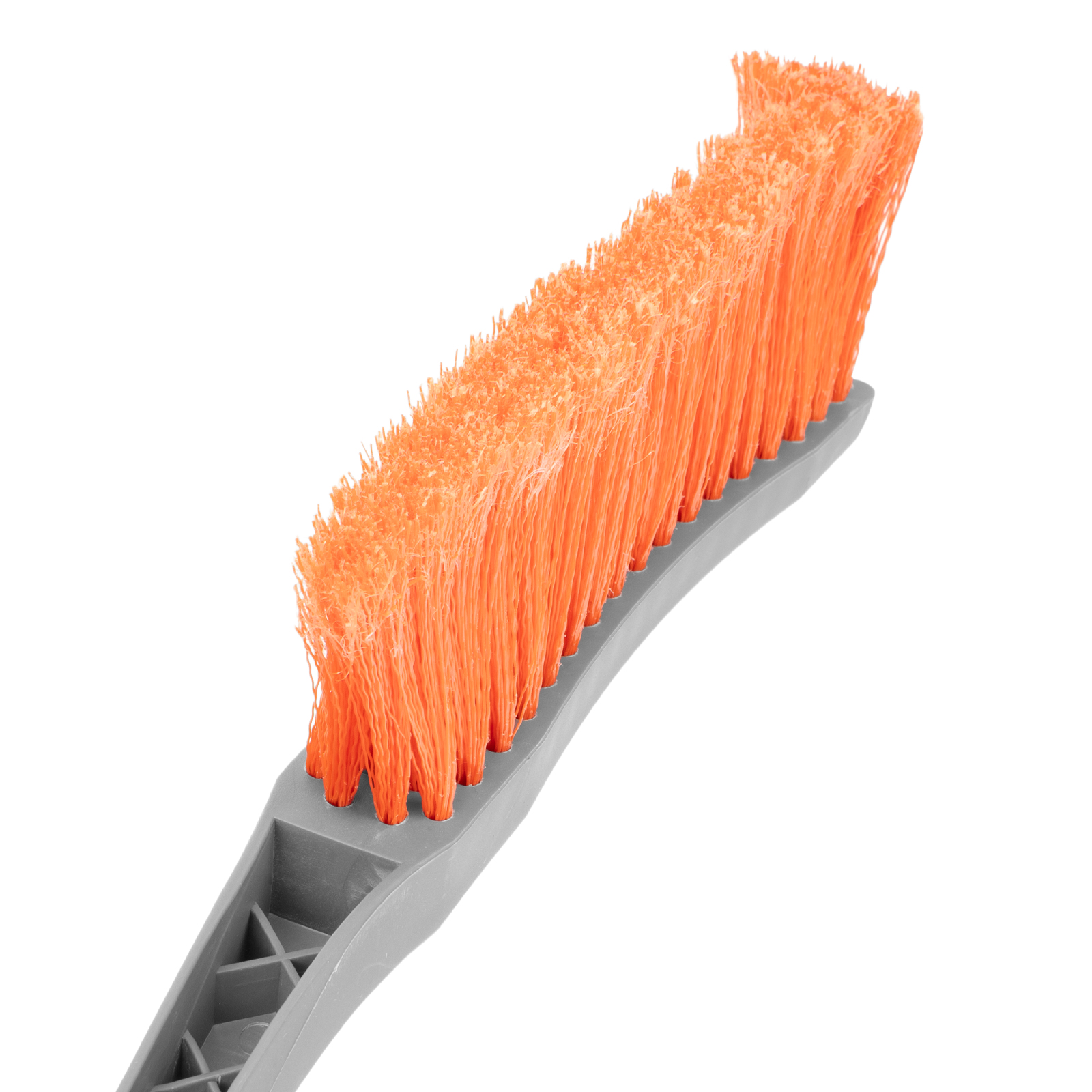 - Эргономичность — изогнутая рукоятка облегчает очистку труднодоступных мест, благодаря мягкой накладке щетку комфортно держать без перчаток.