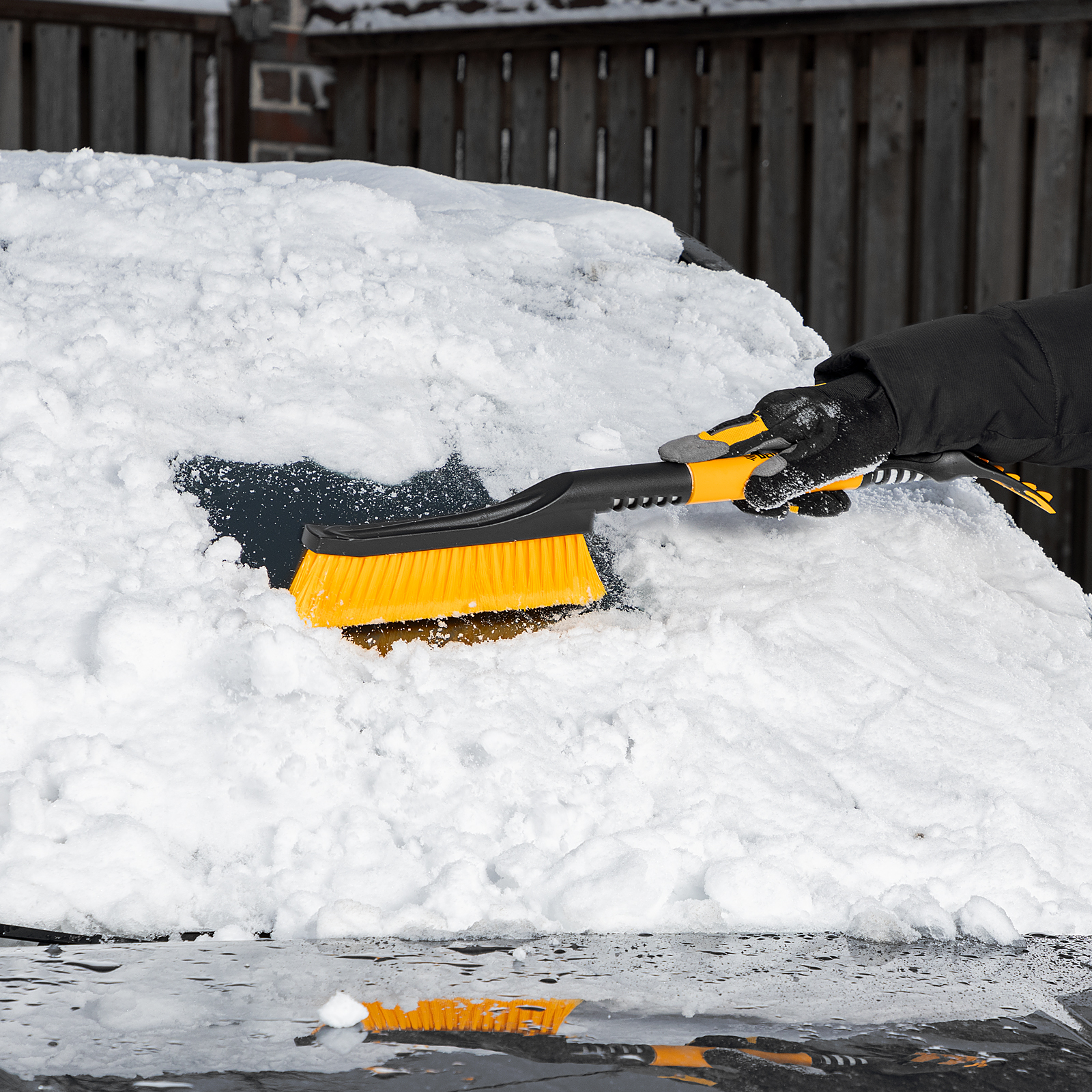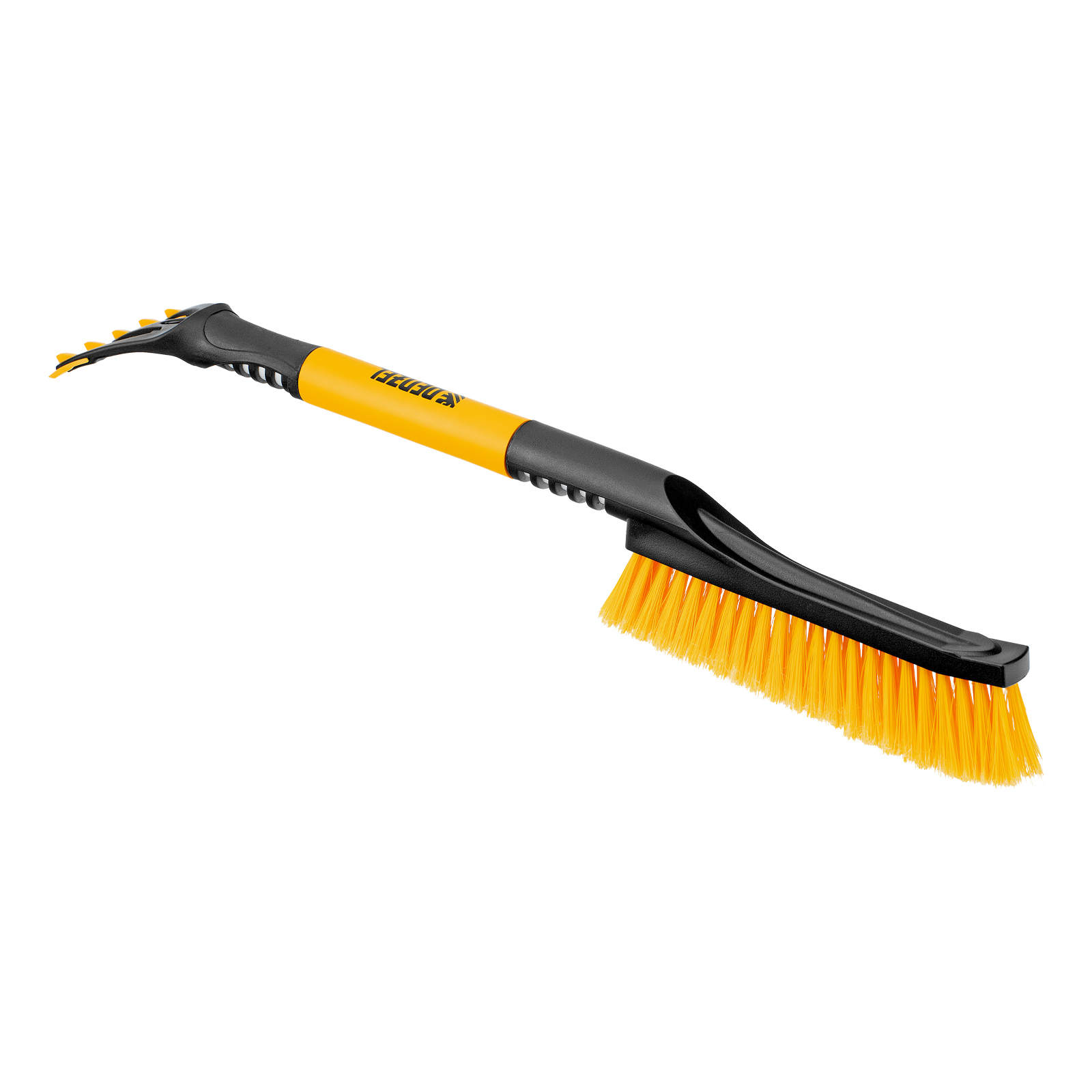 - Комфортная эксплуатация — благодаря мягкой неопреновой накладке на рукоятке щетку удобно держать в руке даже в сильные морозы.