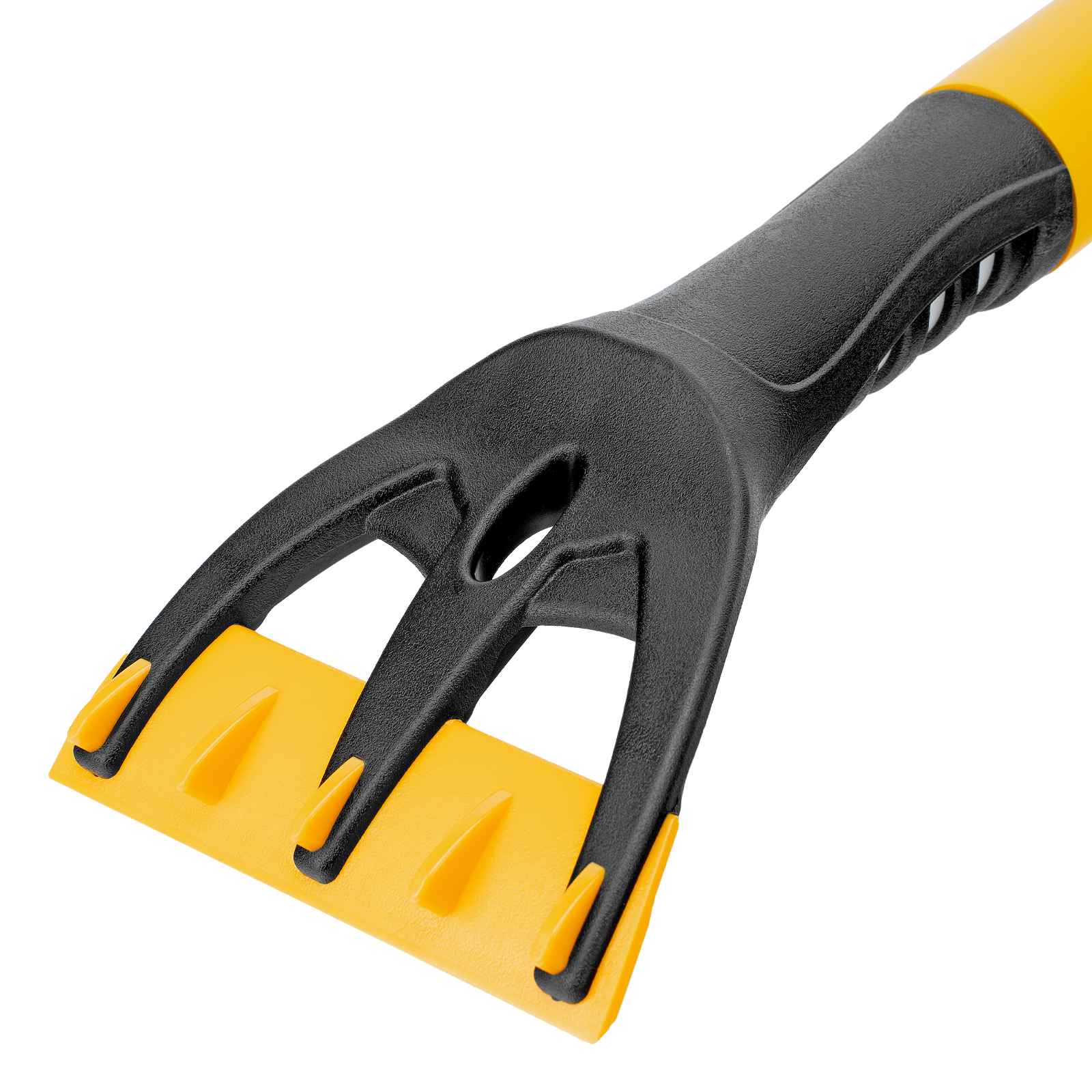 - Эффективность — скребок шириной 10 см быстро очищает поверхности стекол и зеркал от толстой наледи благодаря специальным зубьям.