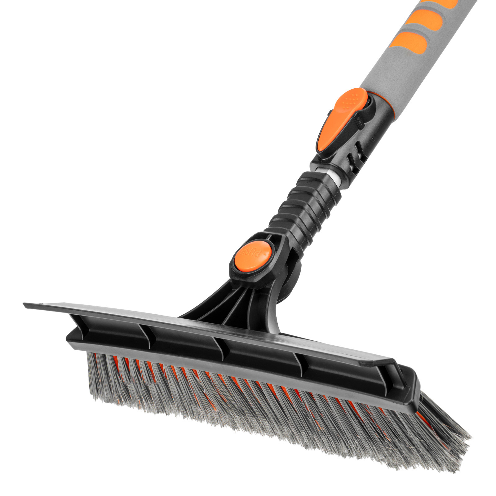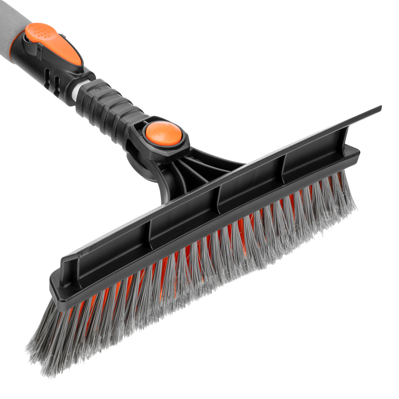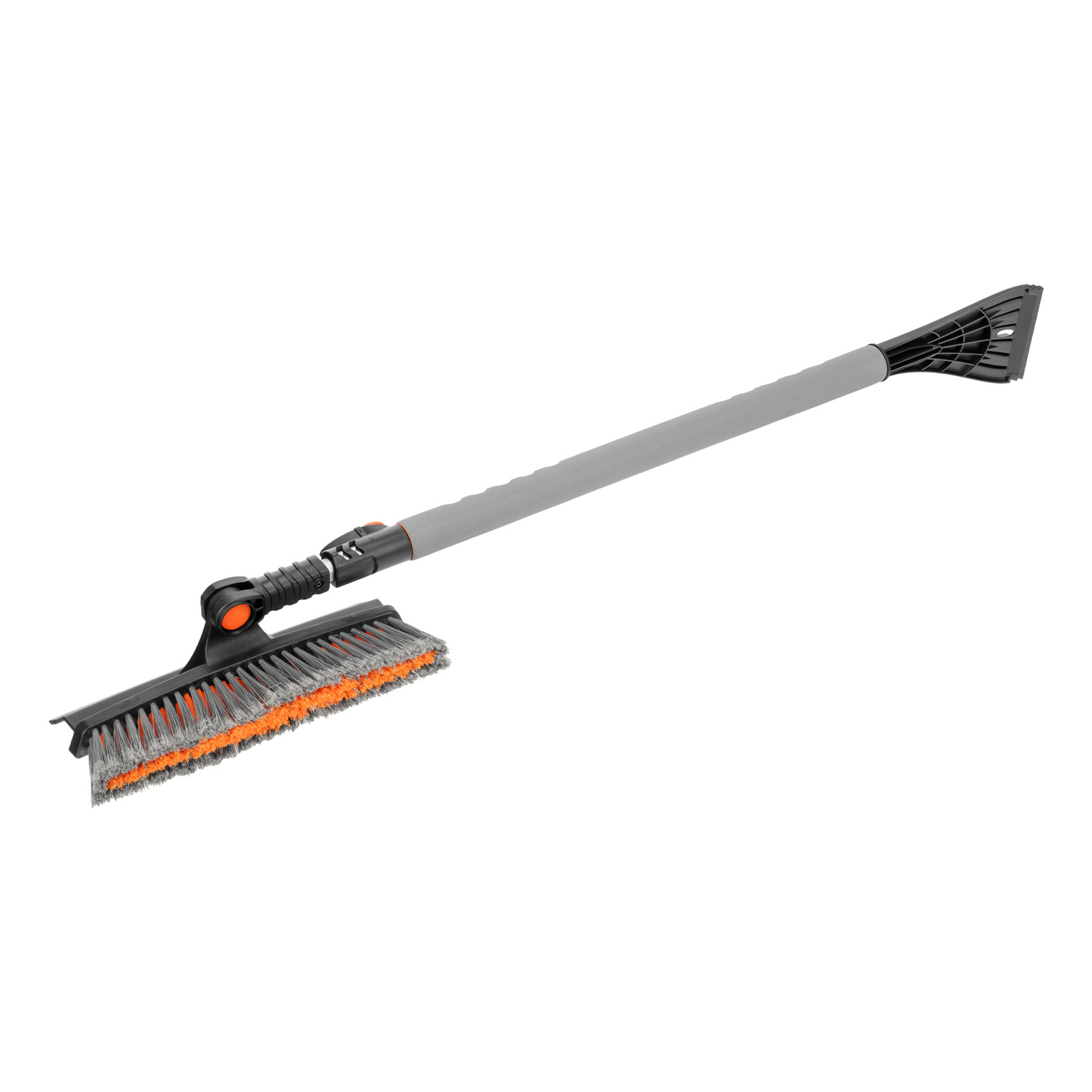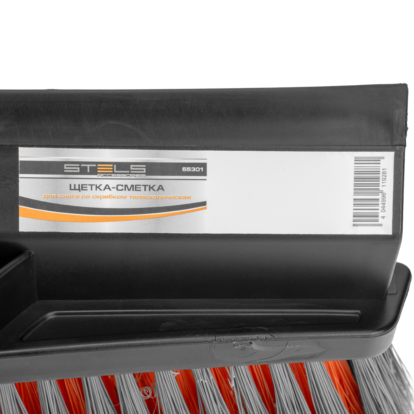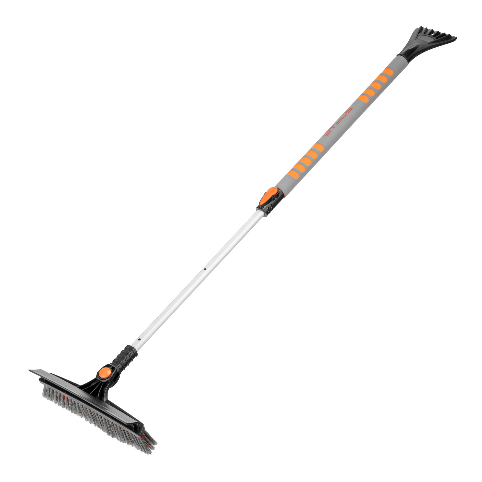 Телескопическая щетка-сметка для снега со скребком Stels 55301 регулируется по длине в диапазоне 90-130 см. Позволяет быстро очистить автомобиль от снега и наледи, раздвижная рукоятка облегчает чистку капота и крыши. Длина рабочей части составляет 29 см, ширина скребка — 10 см. Щетка будет полезна автолюбителям.