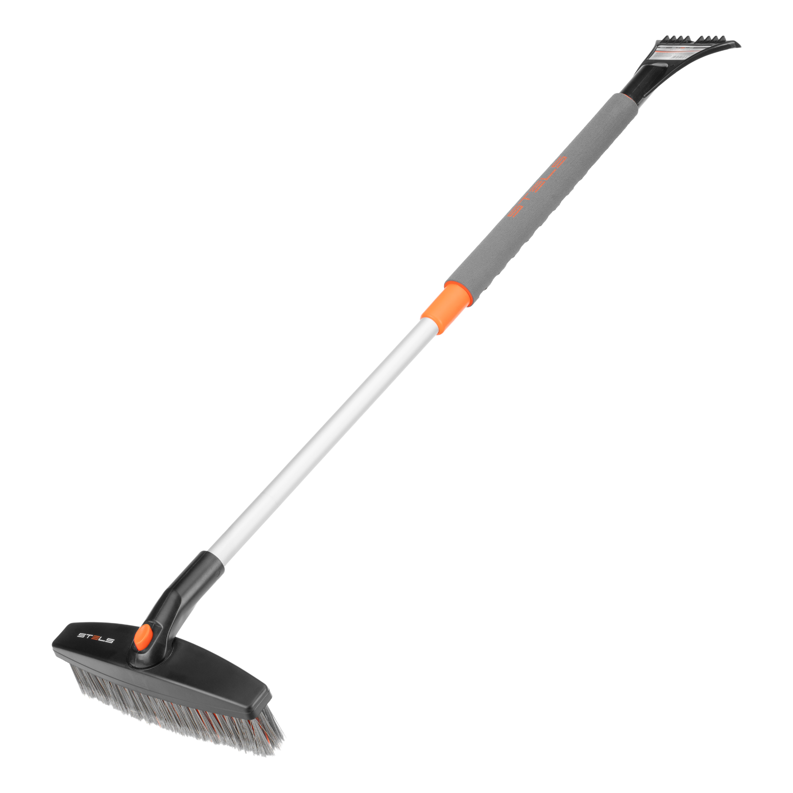 Телескопическая щетка-сметка для снега со скребком Stels 55313 регулируется по длине в диапазоне 82-110 см. Позволяет быстро очистить автомобиль от снега и наледи, раздвижная рукоятка облегчает чистку капота и крыши. Длина рабочей части составляет 23 см, ширина скребка — 11 см. Щетка будет полезна автолюбителям.