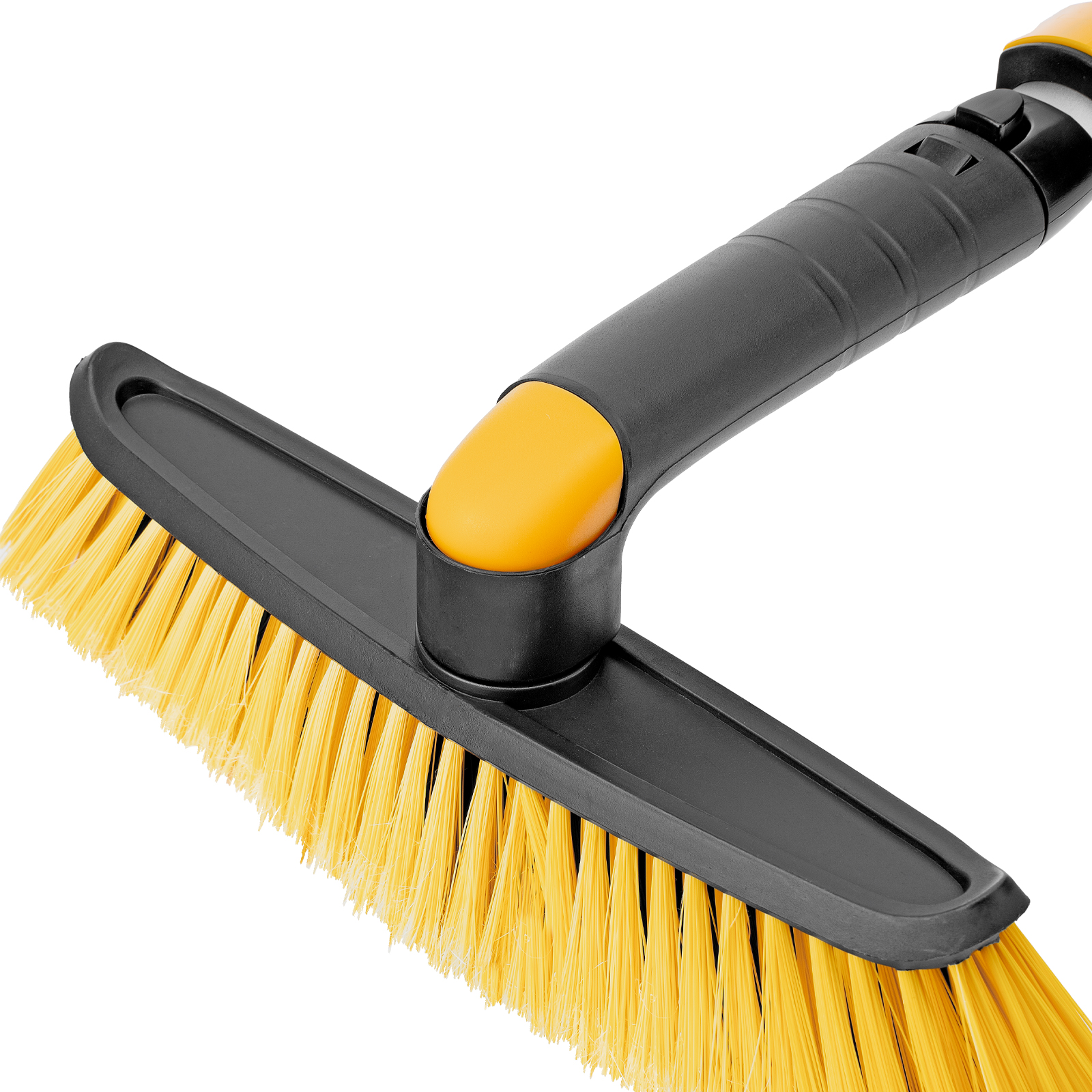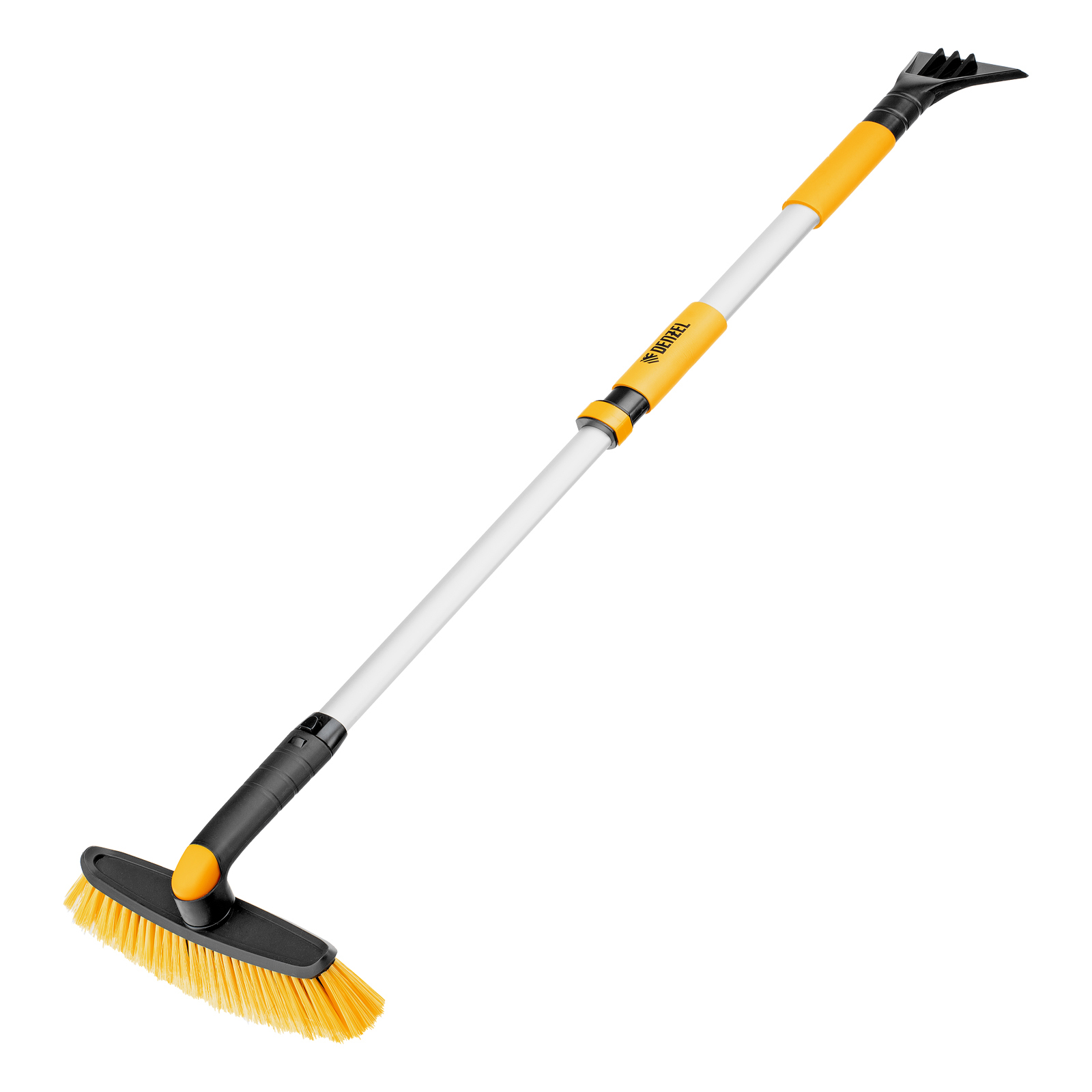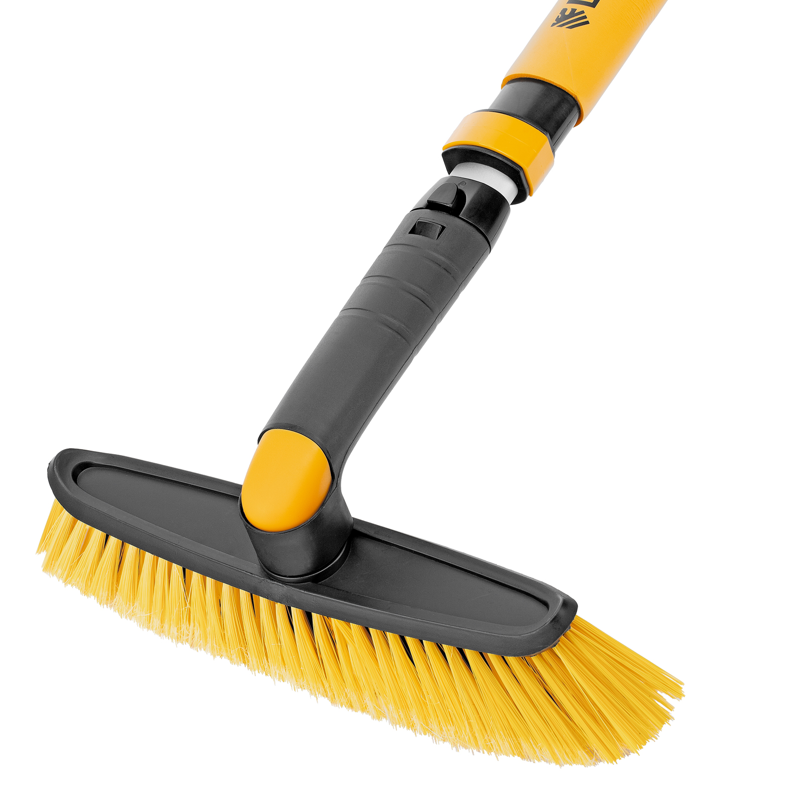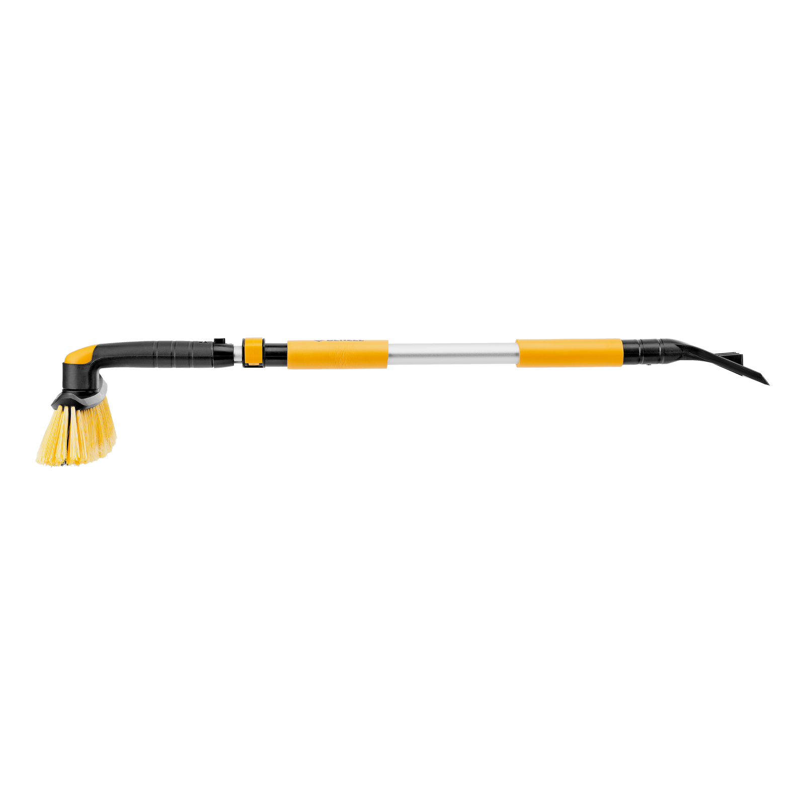 - Регулировка длины — рукоятка выдвигается и фиксируется на длине 75-112 см, за счет чего можно без труда очистить крышу транспортного средства.