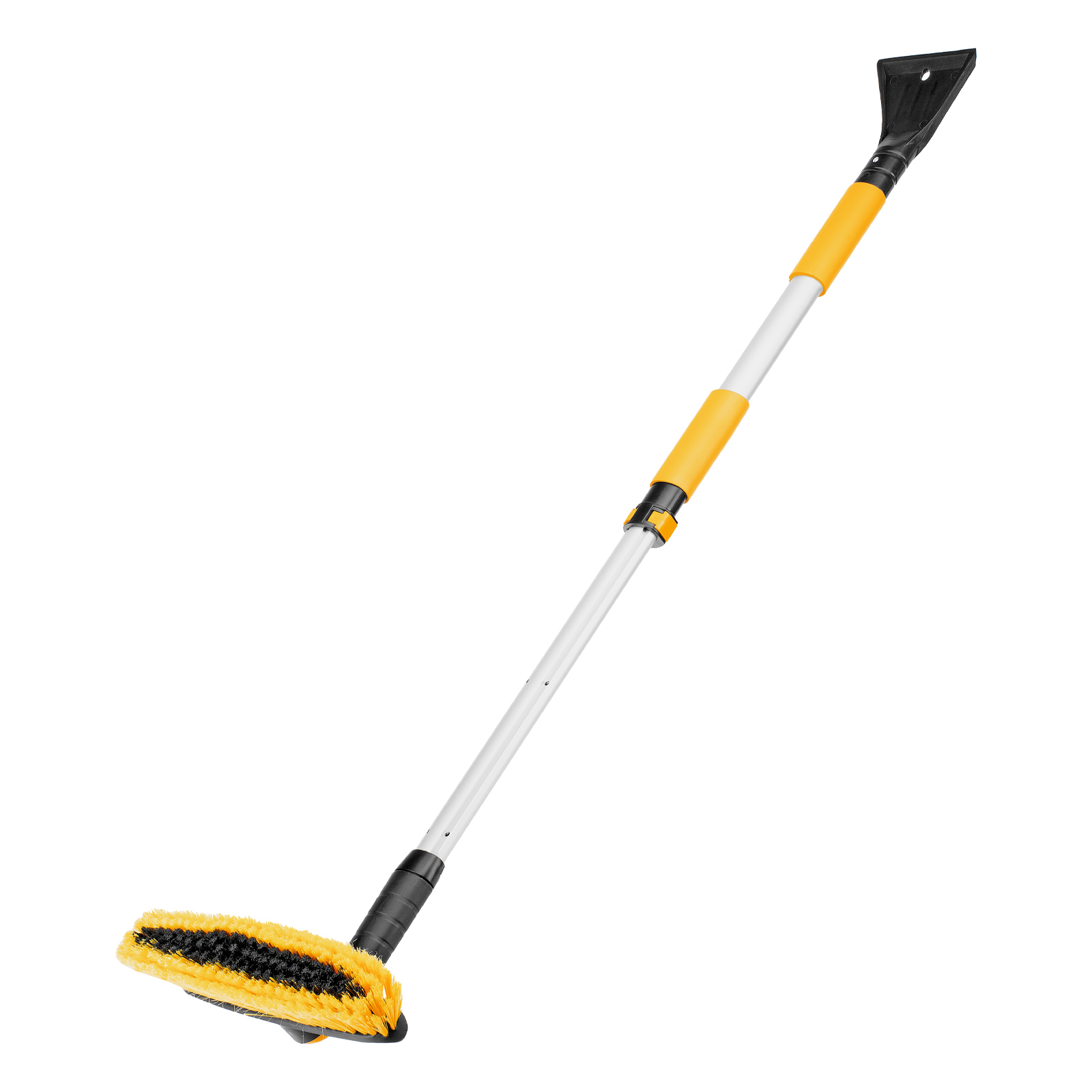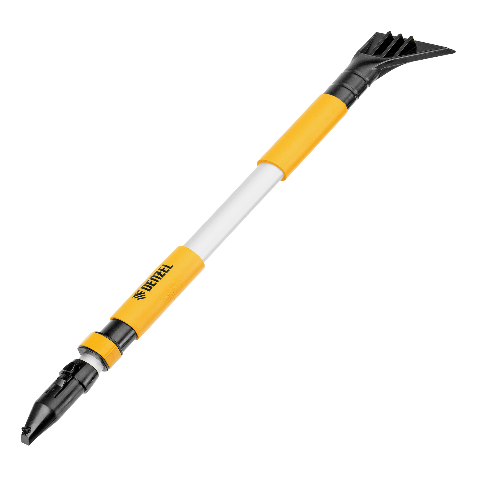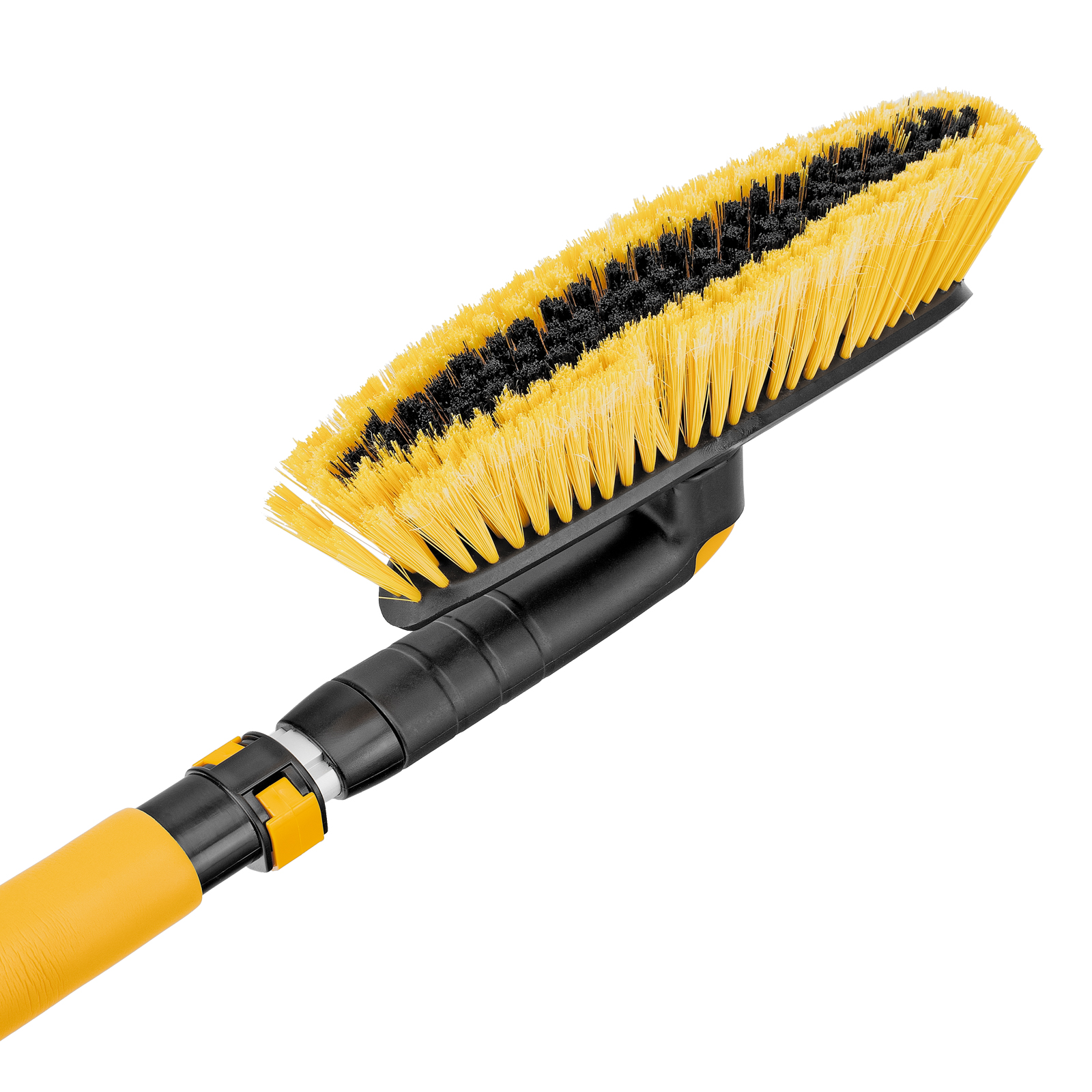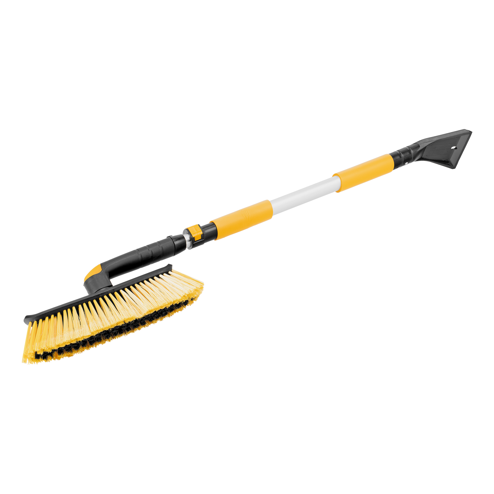 - Регулировка длины — рукоятка выдвигается и фиксируется на длине 75-112 см, за счет чего можно без труда очистить крышу транспортного средства.