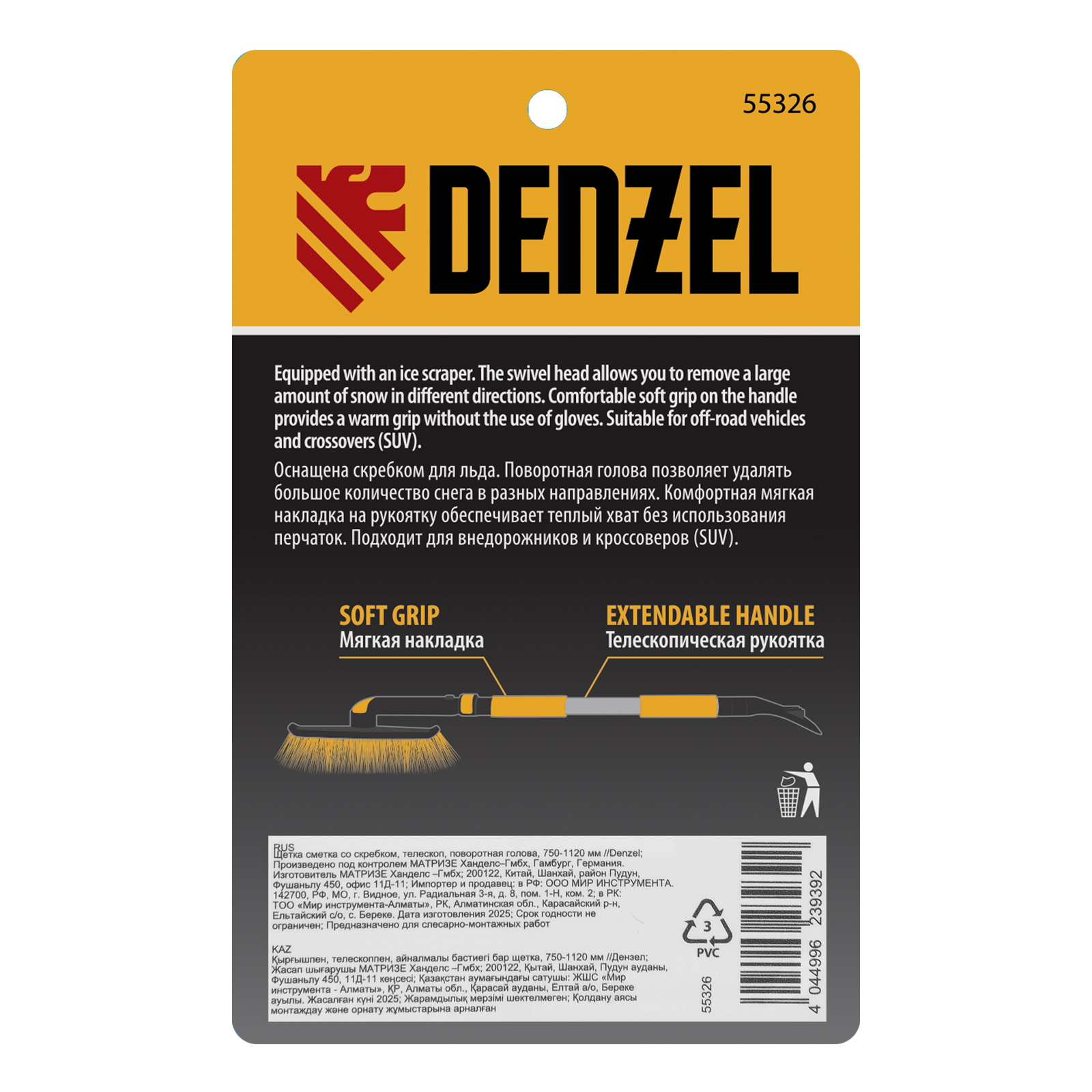 Щетка-сметка Denzel 55326 со скребком, поворотной головой и телескопической рукояткой длиной 75-112 см предназначена для быстрой и эффективной очистки кузова автомобиля от снега и наледи. Ее использование позволяет сохранить лакокрасочное покрытие автомобиля в хорошем состоянии, а также обеспечивает безопасность водителя и других участников дорожного движения.