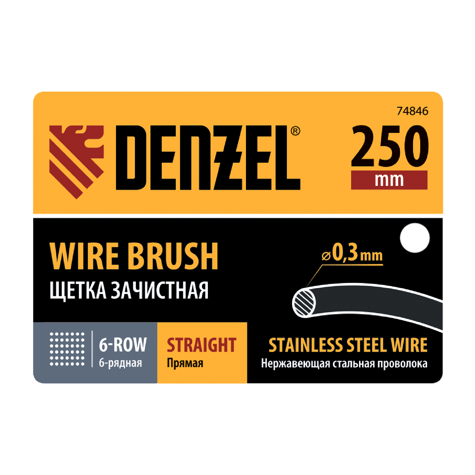 Зачистная 6-рядная щетка Denzel 74846 с прямой проволокой из нержавеющей стали и деревянной рукояткой — ручной инструмент для обработки деревянных, металлических и других поверхностей. Позволяет удалять загрязнения, ржавчину, остатки отделочных покрытий и т.д. Стальная щетина толщиной 0,3 мм с высокой абразивной способностью, расположенная в 6 рядов, обеспечивает эффективное выполнение работ.