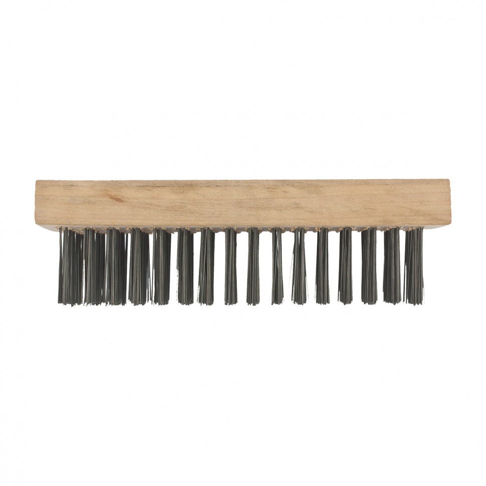 <p>Плоская зачистная шестирядная щетка Сибртех 74810 с деревянным корпусом и щетиной из закаленной прямой проволоки — ручной инструмент, позволяющий очистить поверхность от заусенцев, загрязнений, ржавчины, остатков штукатурки и лакокрасочного слоя. Расположенный в 6 рядов ворс обеспечивает эффективное воздействие на обрабатываемую поверхность. Щетка подходит для обработки металла, древесины, пластика и сварных швов. Используется в строительстве, авторемонтном деле, будет полезна во время ремонта и в быту.</p><h2>Преимущества</h2><ul><li>Прочность и износостойкость — ворс изготовлен из закаленной стальной проволоки.</li><li>Надежность — щетка имеет прочный деревянный корпус, щетина крепко зафиксирована в основании.</li><li>Устойчивость к повышенным нагрузкам — в каждом пучке 20 щетинок.</li><li>Защита от образования коррозии — проволока покрыта масляной пленкой.</li></ul>