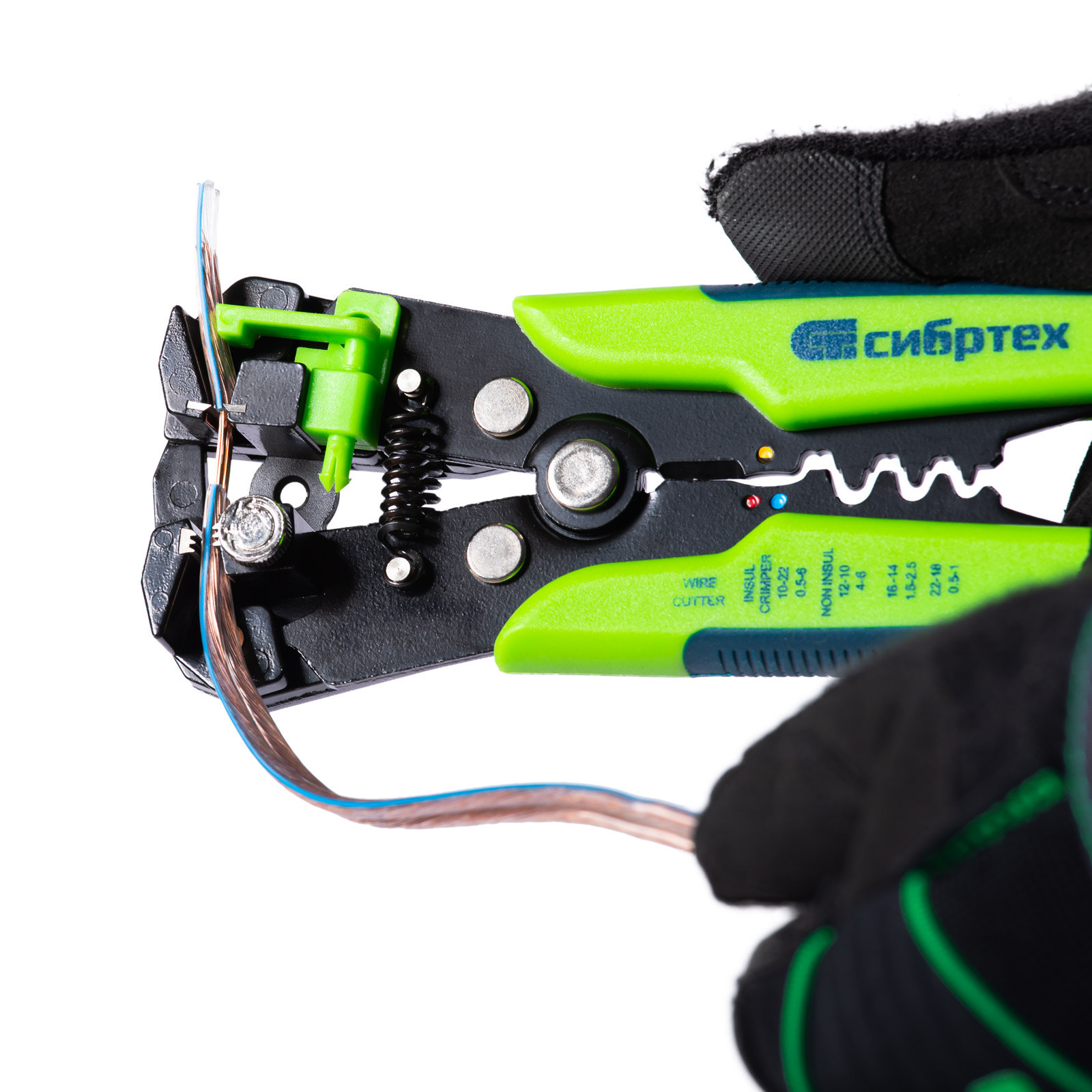 Щипцы Сибртех 17734 рассчитаны на зачистку и снятие изоляции с электропроводов, а также они имеют кусачки для обрезания кабеля. Инструмент станет незаменимым помощником в квартире, гараже, на даче, производстве, строительной площадке во время выполнения электромонтажных работ.