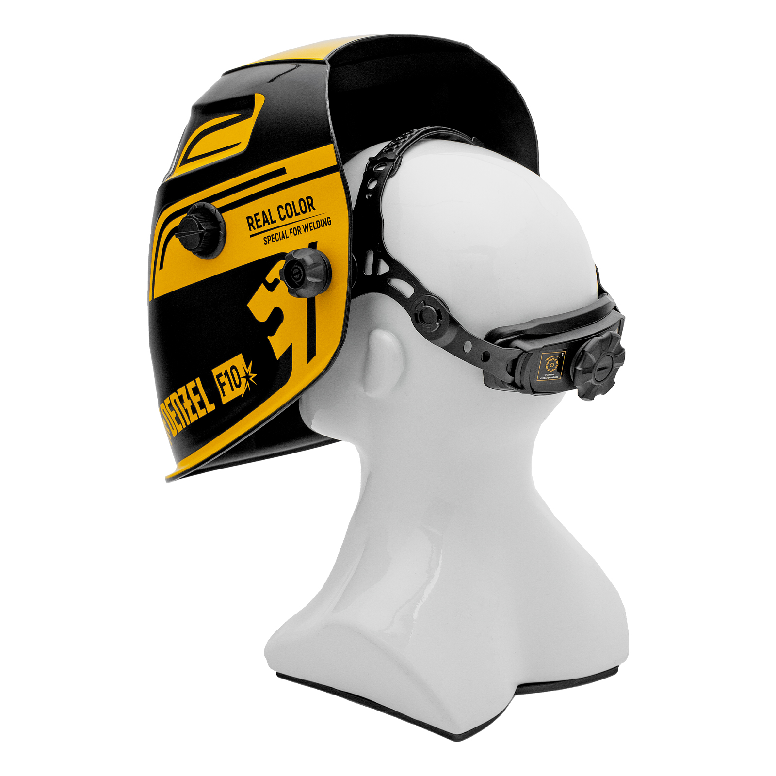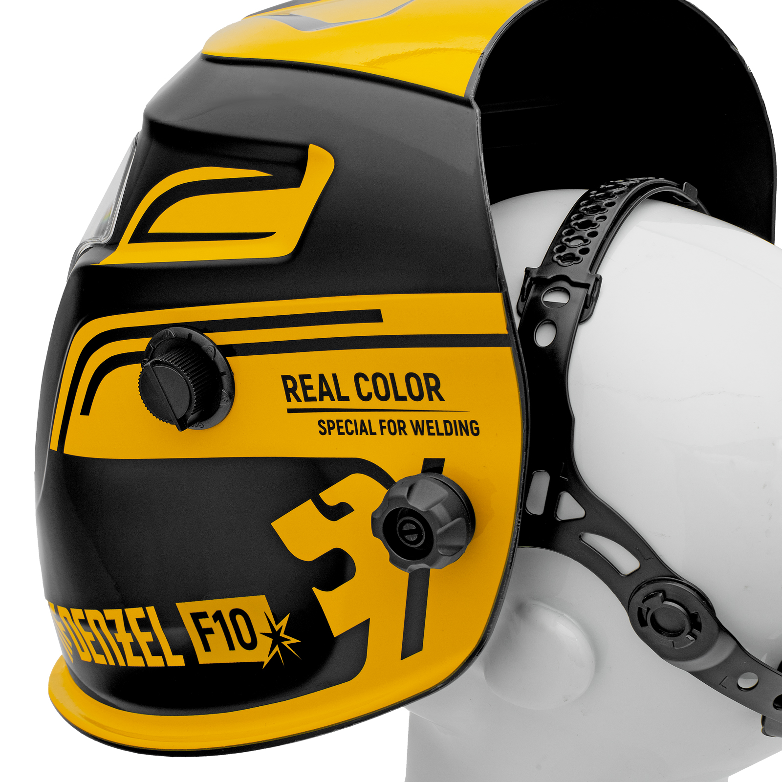 - Эргономичность — щиток оснащен поворотной системой крепления вверх/вниз: при подъеме маски центр тяжести автоматически смещается для максимального комфорта во время использования.