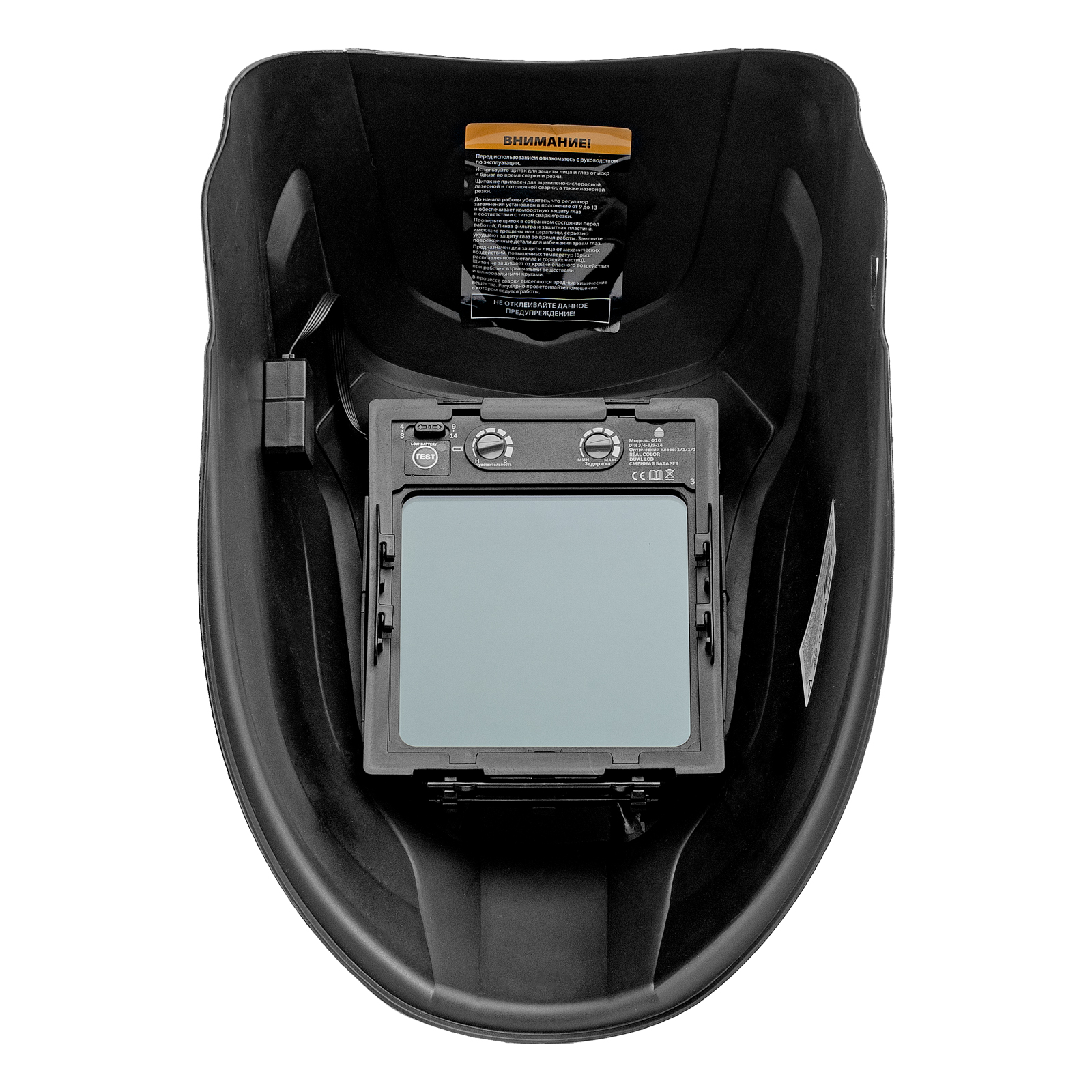 - Точная настройка рабочих параметров — можно переключаться между 2 диапазонами затемнения, а также вручную устанавливать степень затемнения в зависимости от режима сварки.
