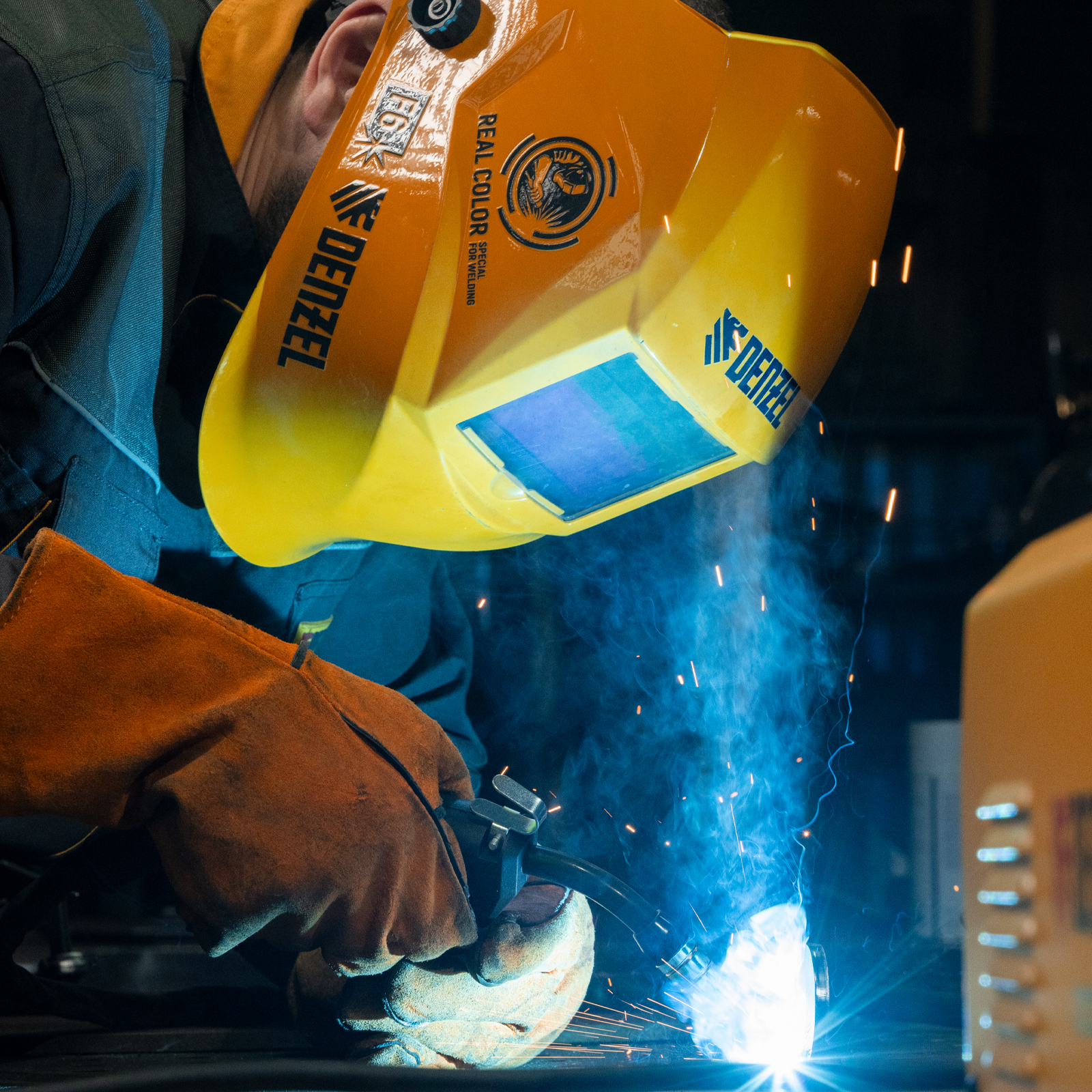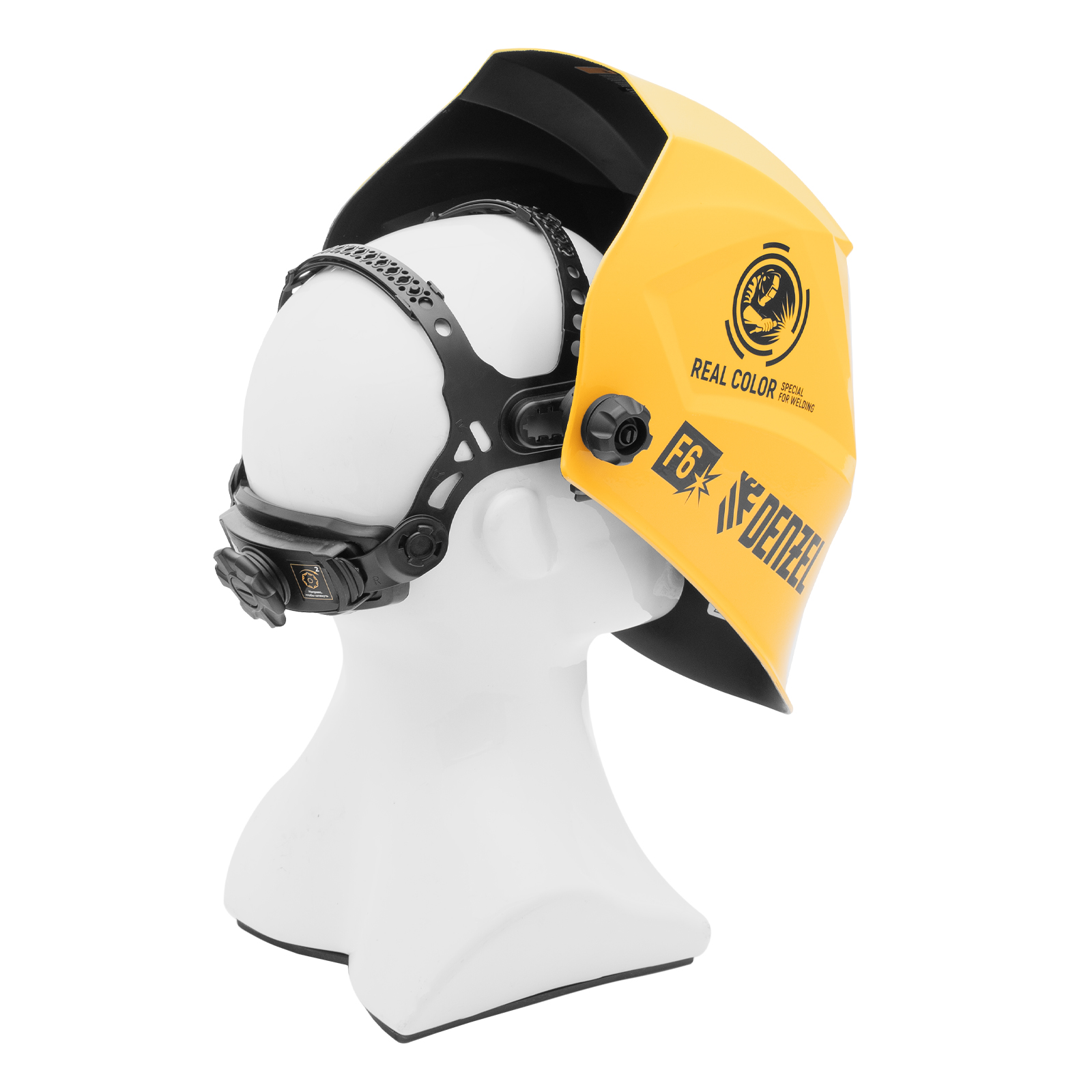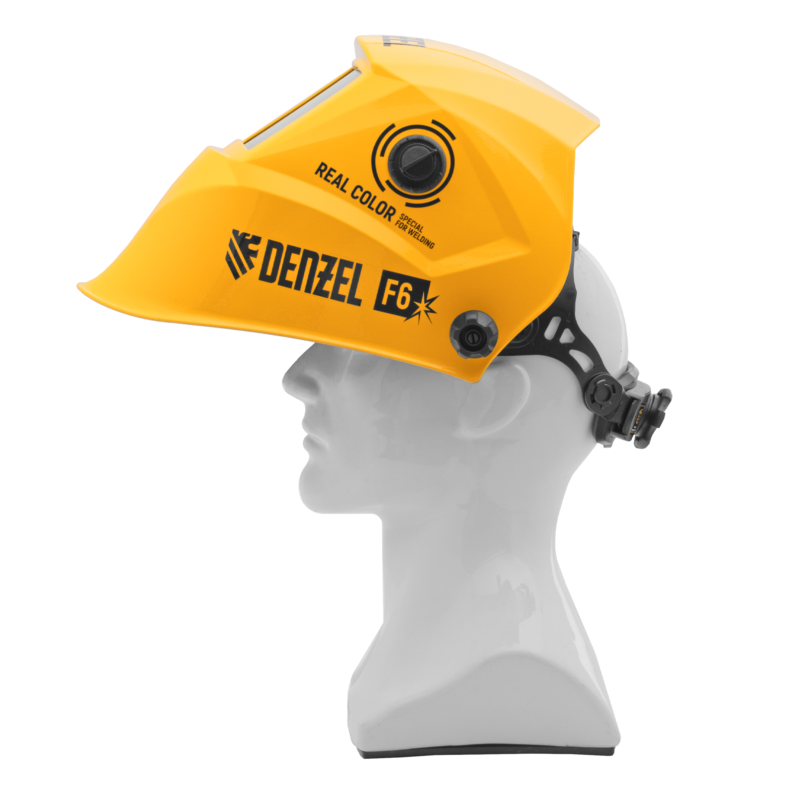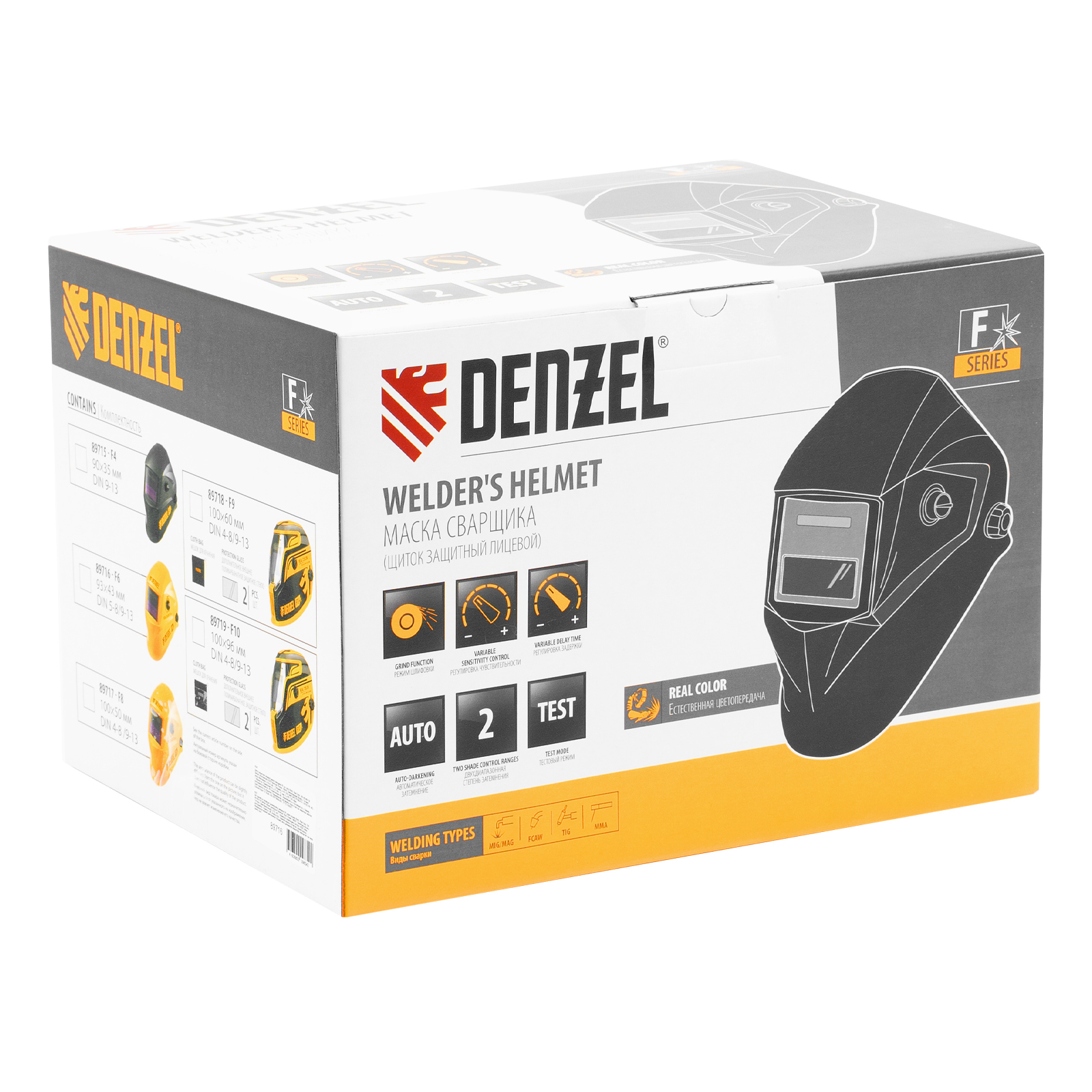 Защитный лицевой щиток (маска сварщика) Denzel F6 89716 со смотровым окном размером 93 x 43 мм и функцией затемнения DIN 4/5-8/9-13 используется во время проведения сварочных работ. Надежно защищает глаза и лицо пользователя от искр, брызг расплавленного металла, а также от инфракрасного и ультрафиолетового излучения. Корректную работу светофильтра обеспечивают два фотодатчика. Щиток подходит для проведения сварочных работ в режимах MMA, MIG/MAG, TIG, а также для выполнения плазменно-дуговой сварки, плазменной и дуговой резки.