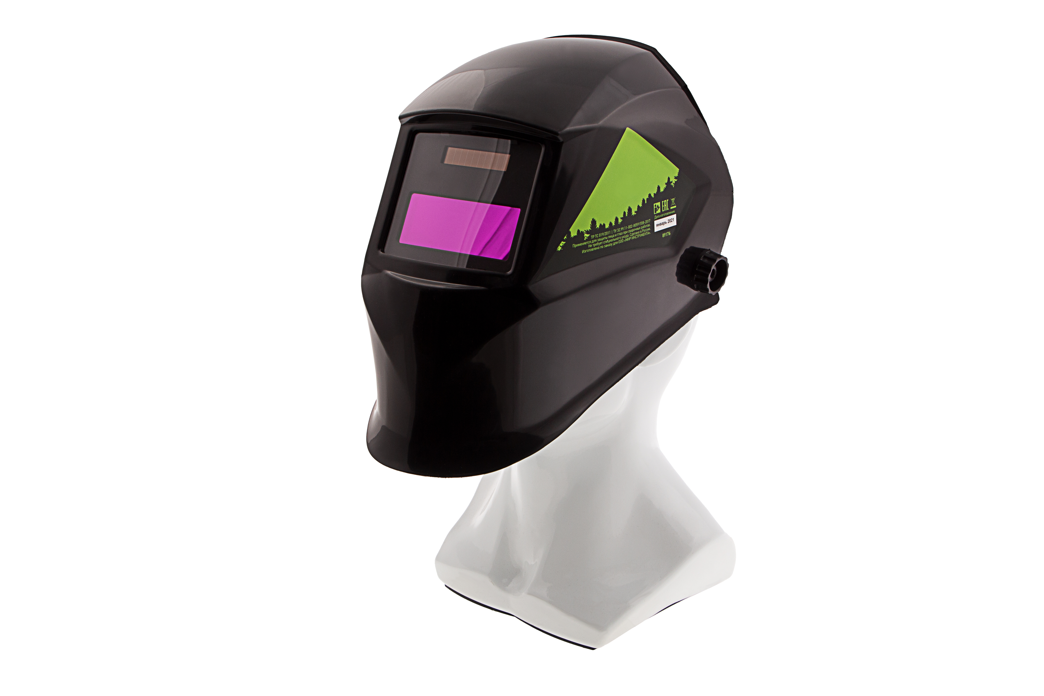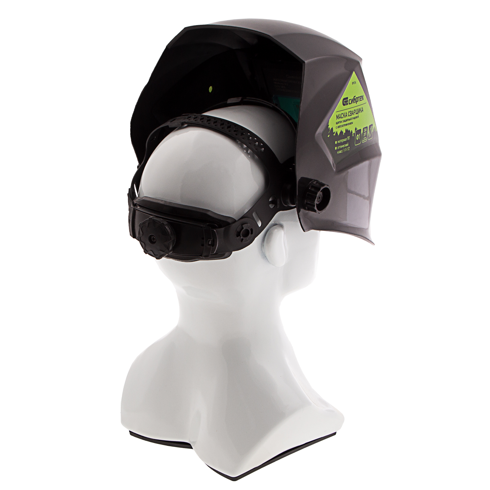 - Удобная посадка на голове — регулируемое оголовье позволяет надежно зафиксировать щиток, чтобы он не спадал во время работы.