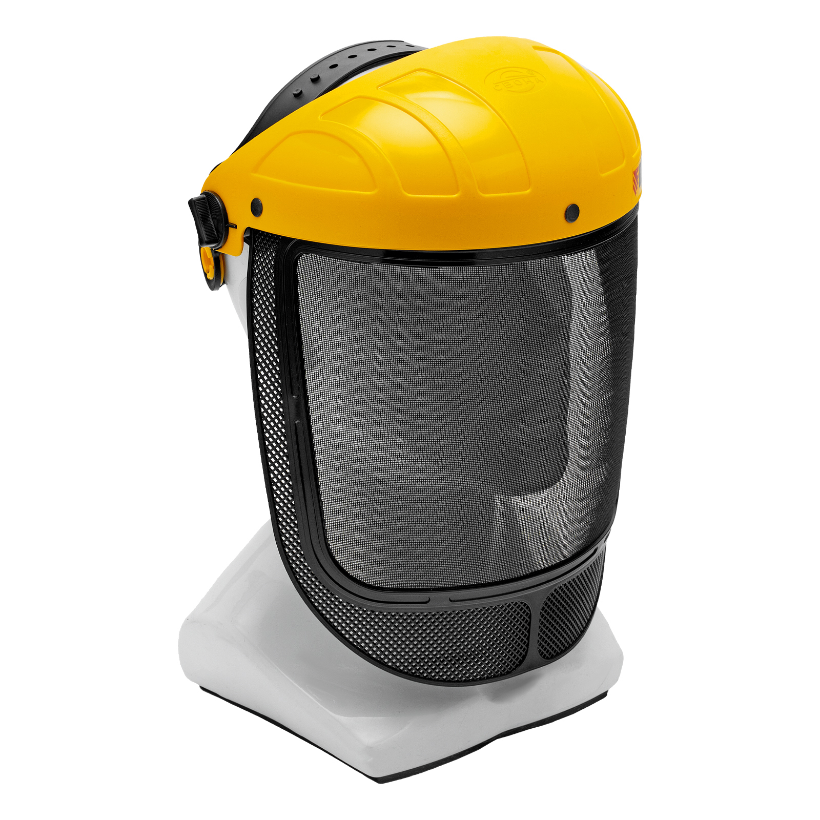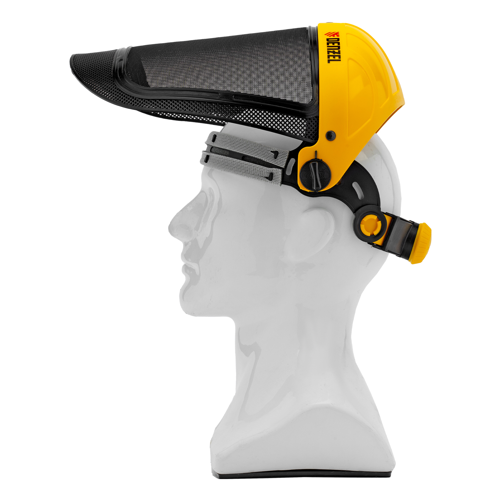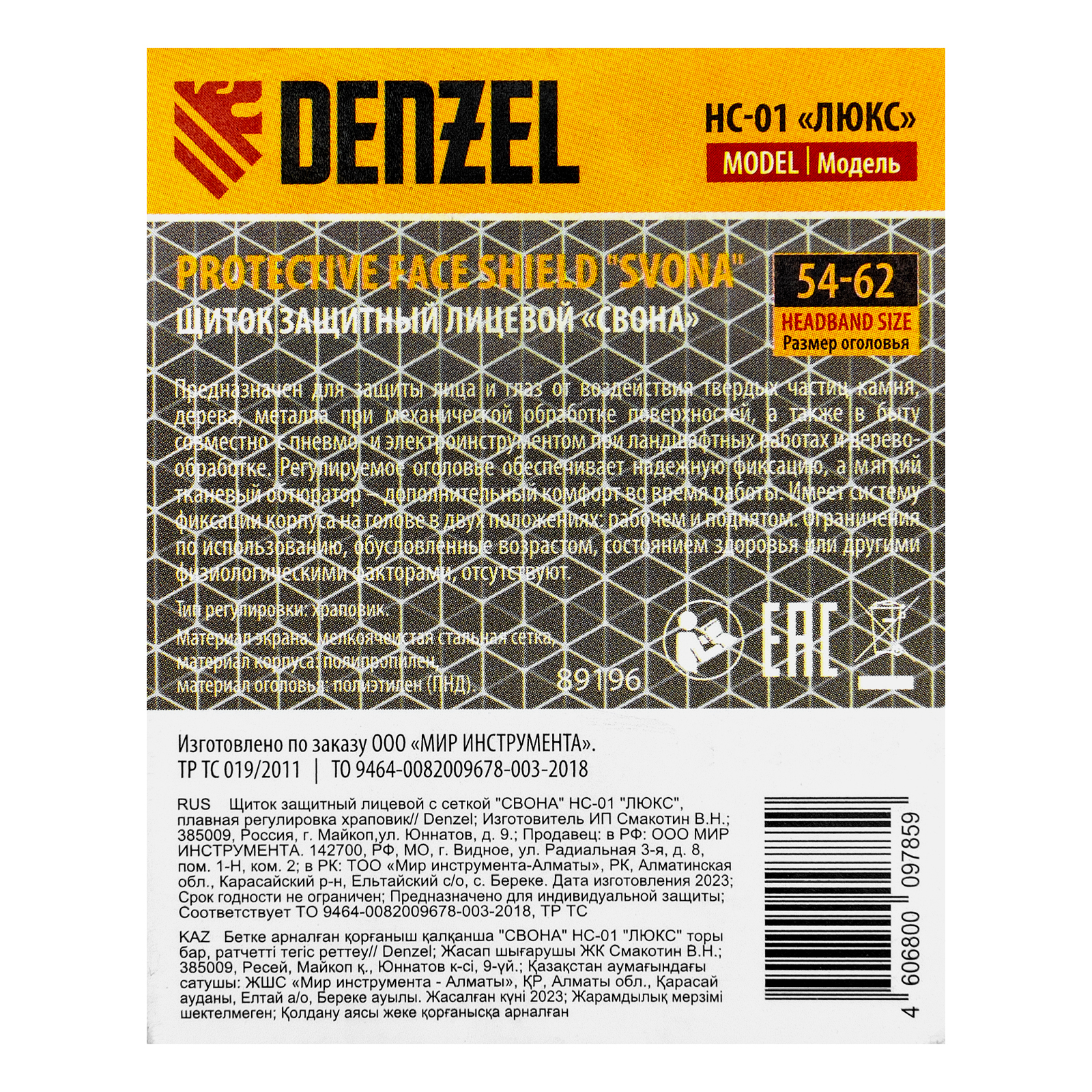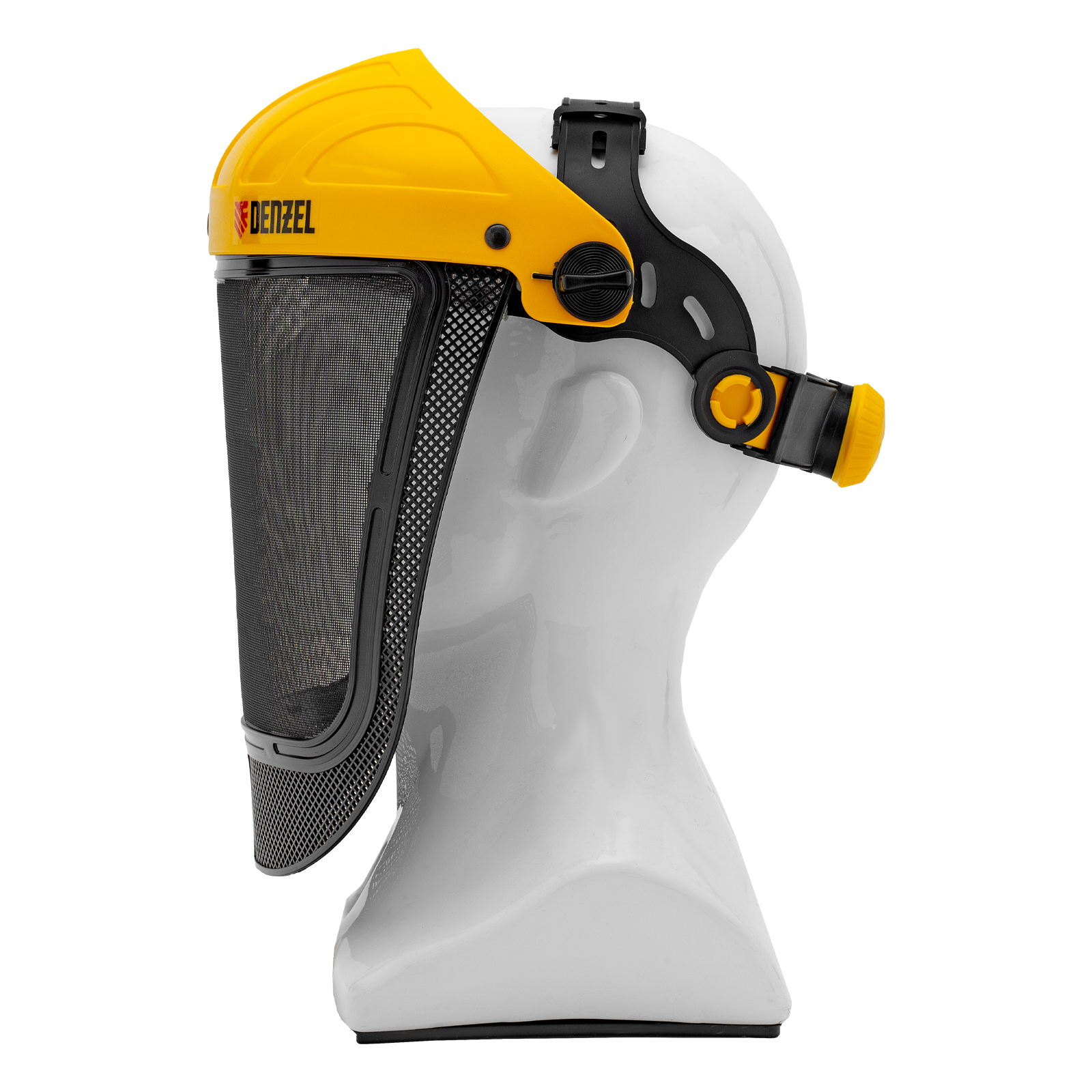 Лицевой щиток Denzel «СВОНА» НС-01 «ЛЮКС» 89196 с храповиком для плавной регулировки предназначен для защиты глаз, лица и лобной части головы пользователя во время работы с бензиновым и электрическим инструментом. Экран из мелкоячеистой стальной сетки надежно защищает пользователя от летящих частиц травы, камней, опилок и т.д. Щиток является улучшенной версией модели Denzel 89197.