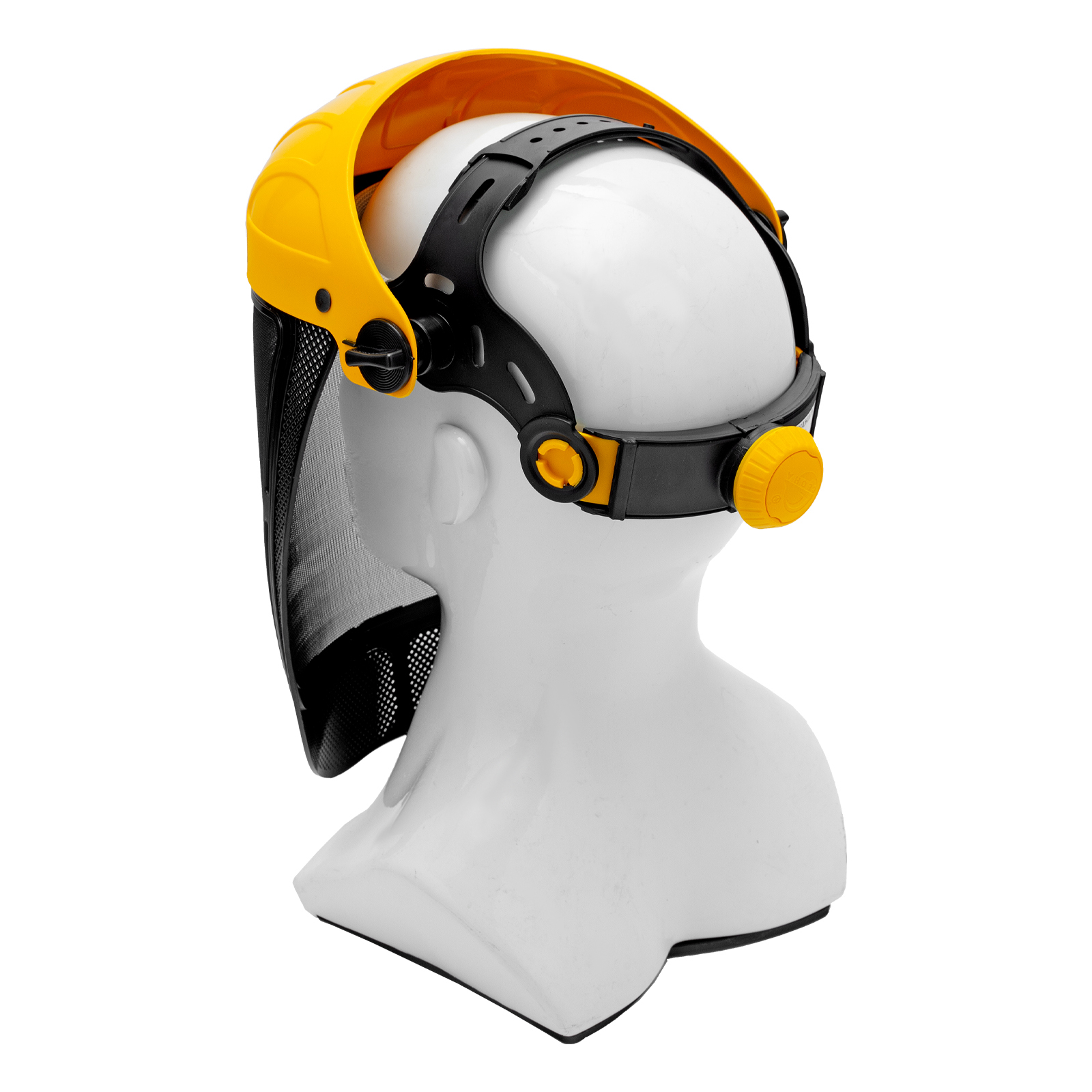 - Надежная защита — увеличенный сетчатый экран закрывает не только лицо, но и шею.