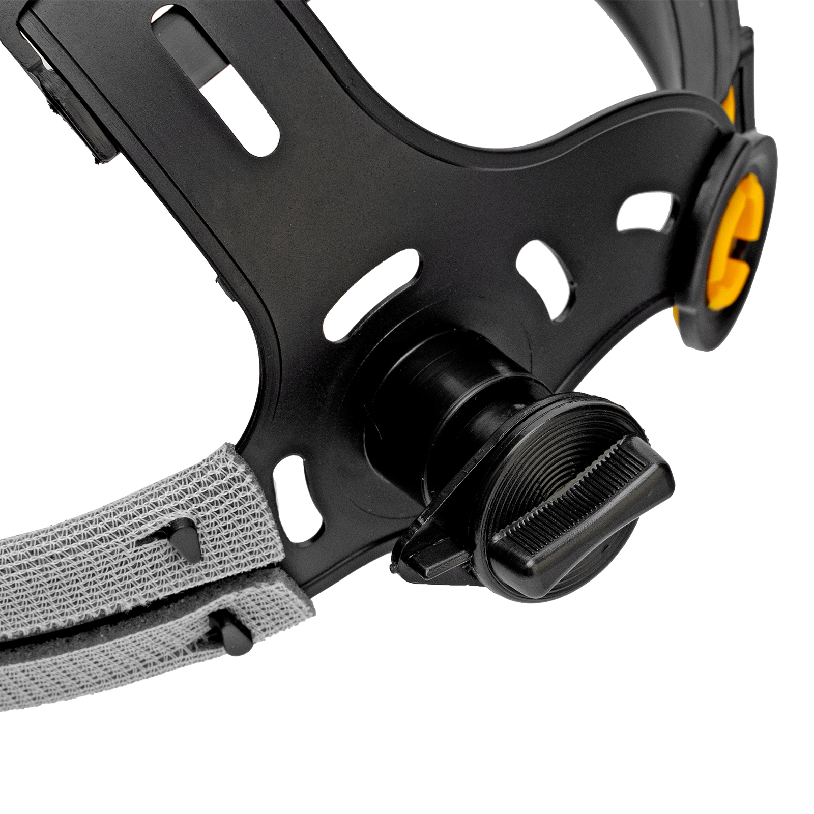 - Плотная фиксация на голове — наголовное крепление с храповиком позволяет плавно подгонять и точно регулировать размер оголовья в диапазоне 54-62 см.