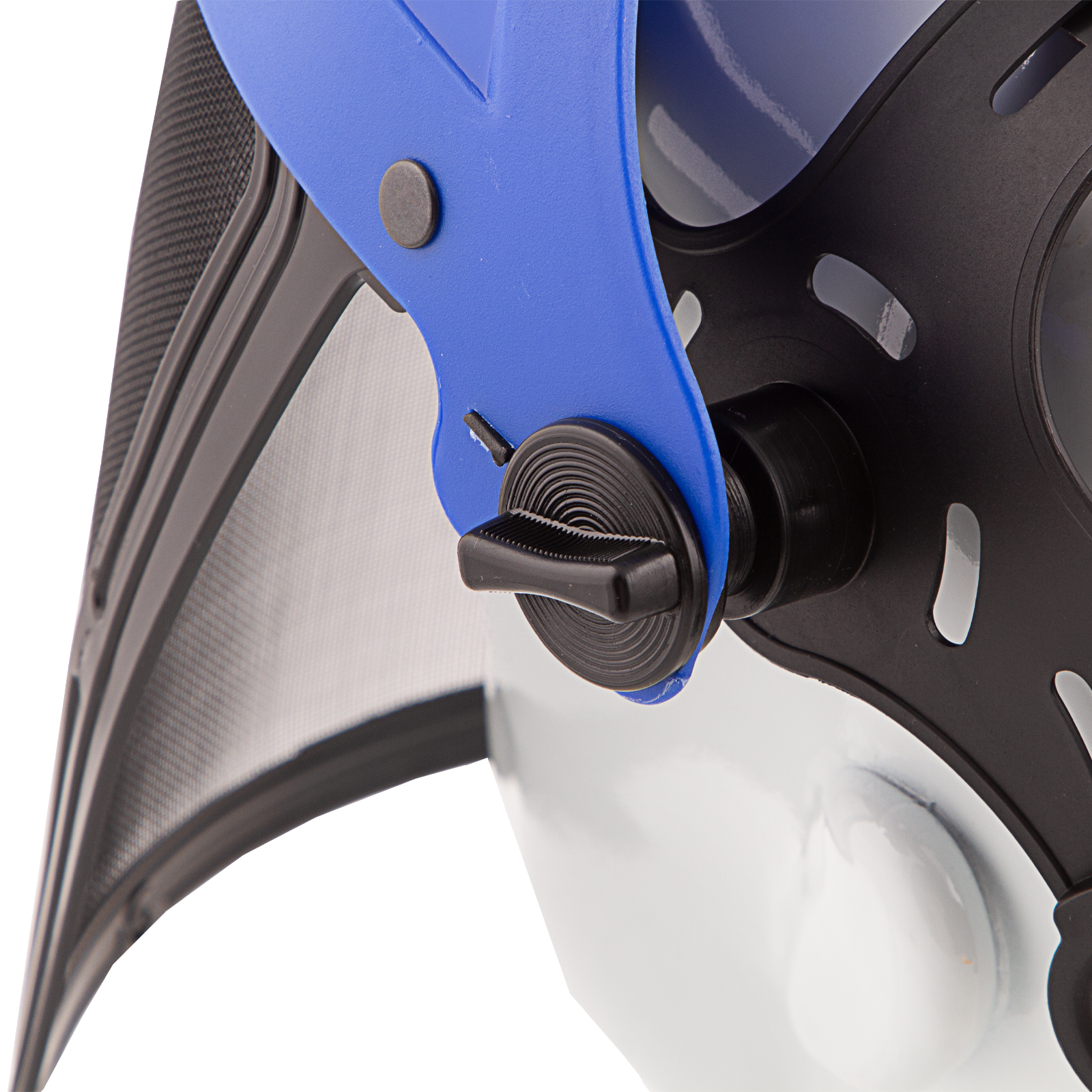 - Плотная посадка — оголовье с реечной регулировкой обеспечивает надежную фиксацию щитка на голове.