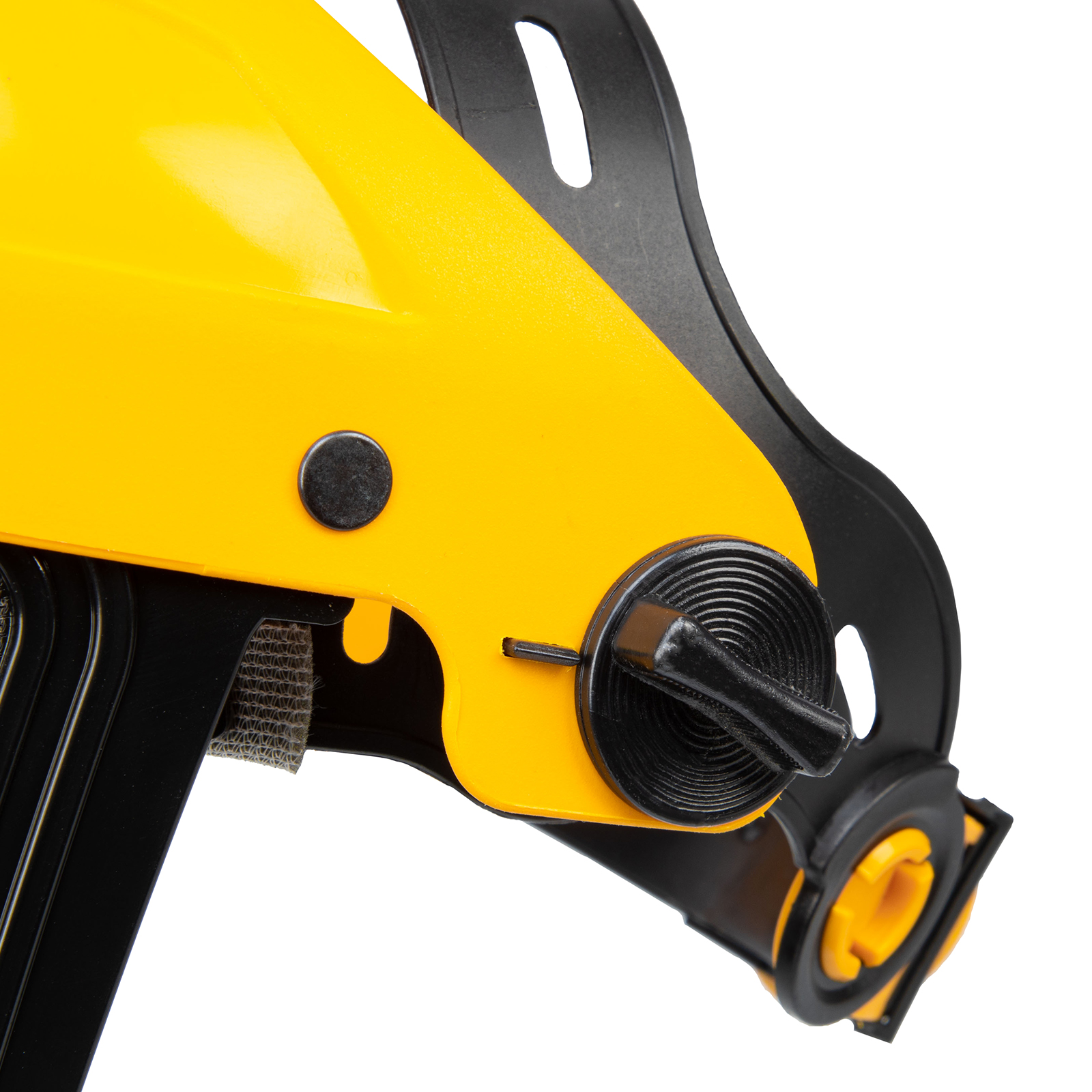 Щиток предназначен для защиты глаз, лица и лобной части головы оператора во время работы с бензо- и электроинструментом. Экран из мелкоячеистой стальной сетки надежно защищает от летящих частиц травы, камней, опилок, и др. Щиток плотно фиксируется на голове за счет точной регулировки по глубине и обхвату головы.