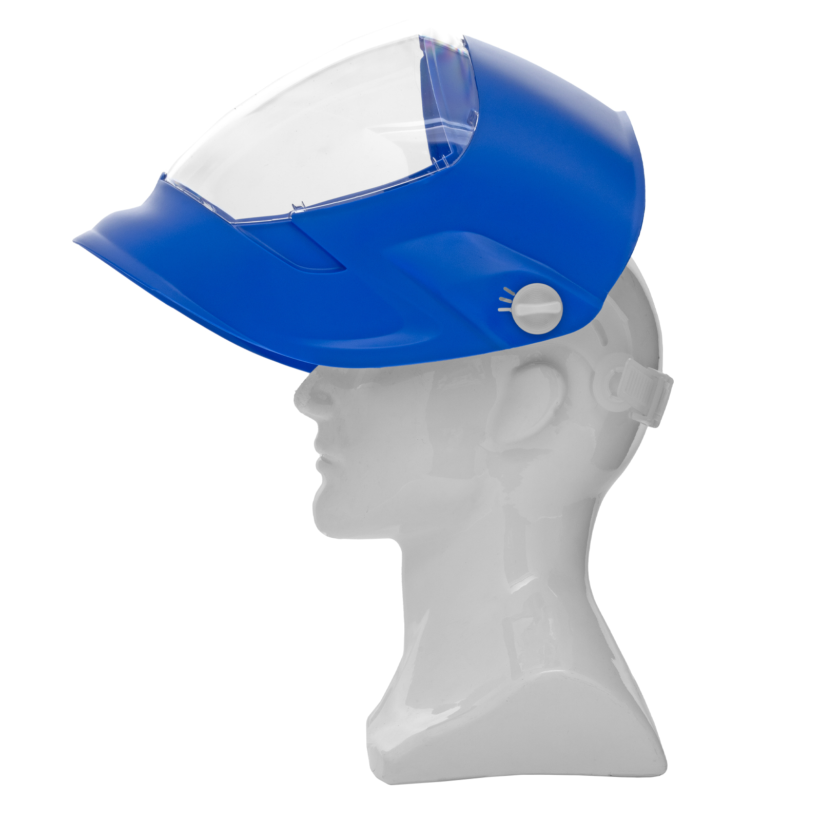 - Теменная и налобная ленты плавно регулируются, обеспечивая комфортную посадку щитка, что особенно удобно при ношении головного убора.