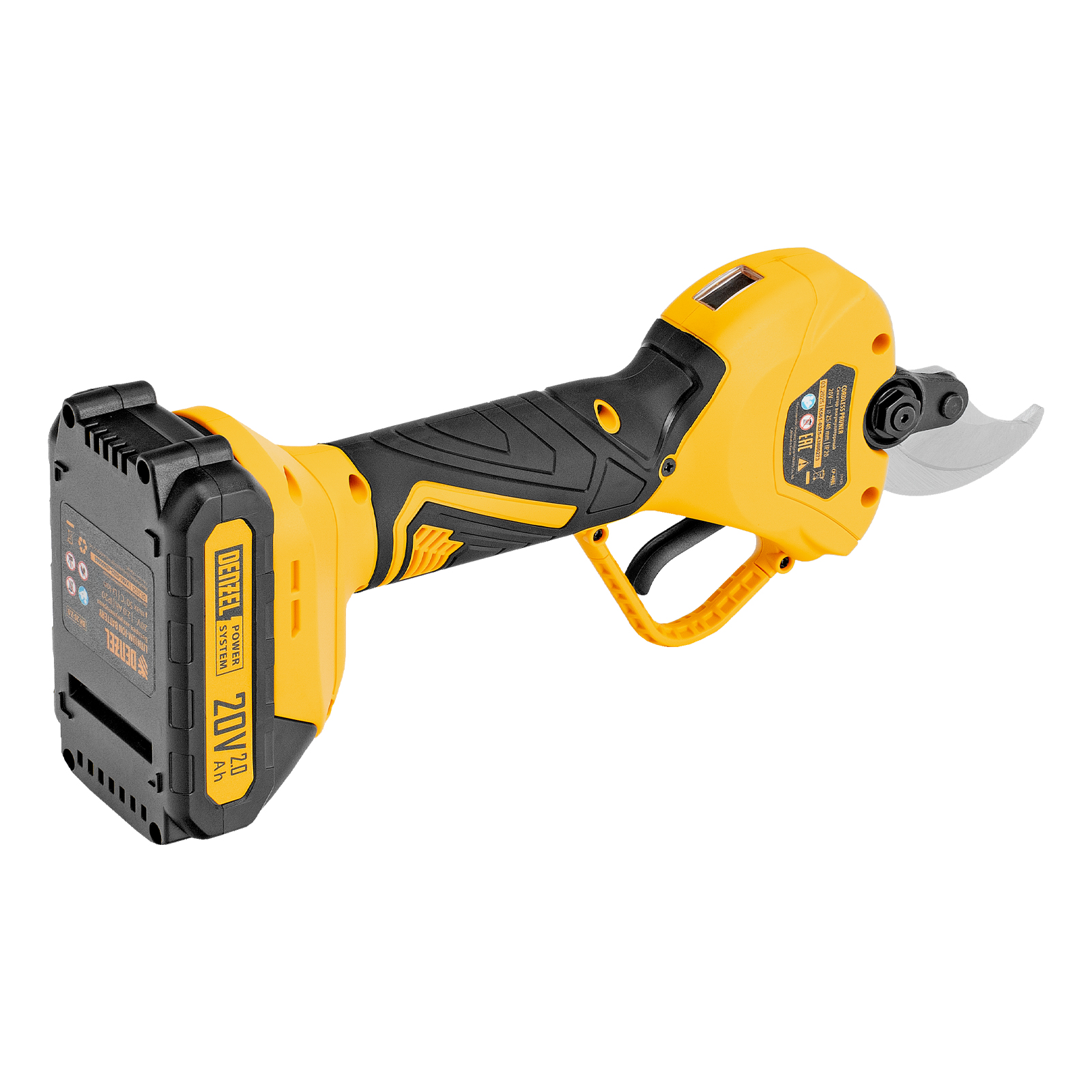 Аккумуляторный секатор Denzel CP-40BL 59438 с бесщеточным двигателем и лезвиями из стали SK5 предназначен для срезания веток. Электронная регулировка толщины реза позволяет устанавливать Бесщеточный двигатель обеспечивает эффективную работу в саду и не требует обслуживания. Благодаря аккумулятору Li-Ion 20 В емкостью 2 А·ч секатор полностью автономен и не требует подключения к электросети. Пригодится владельцам приусадебных участков.