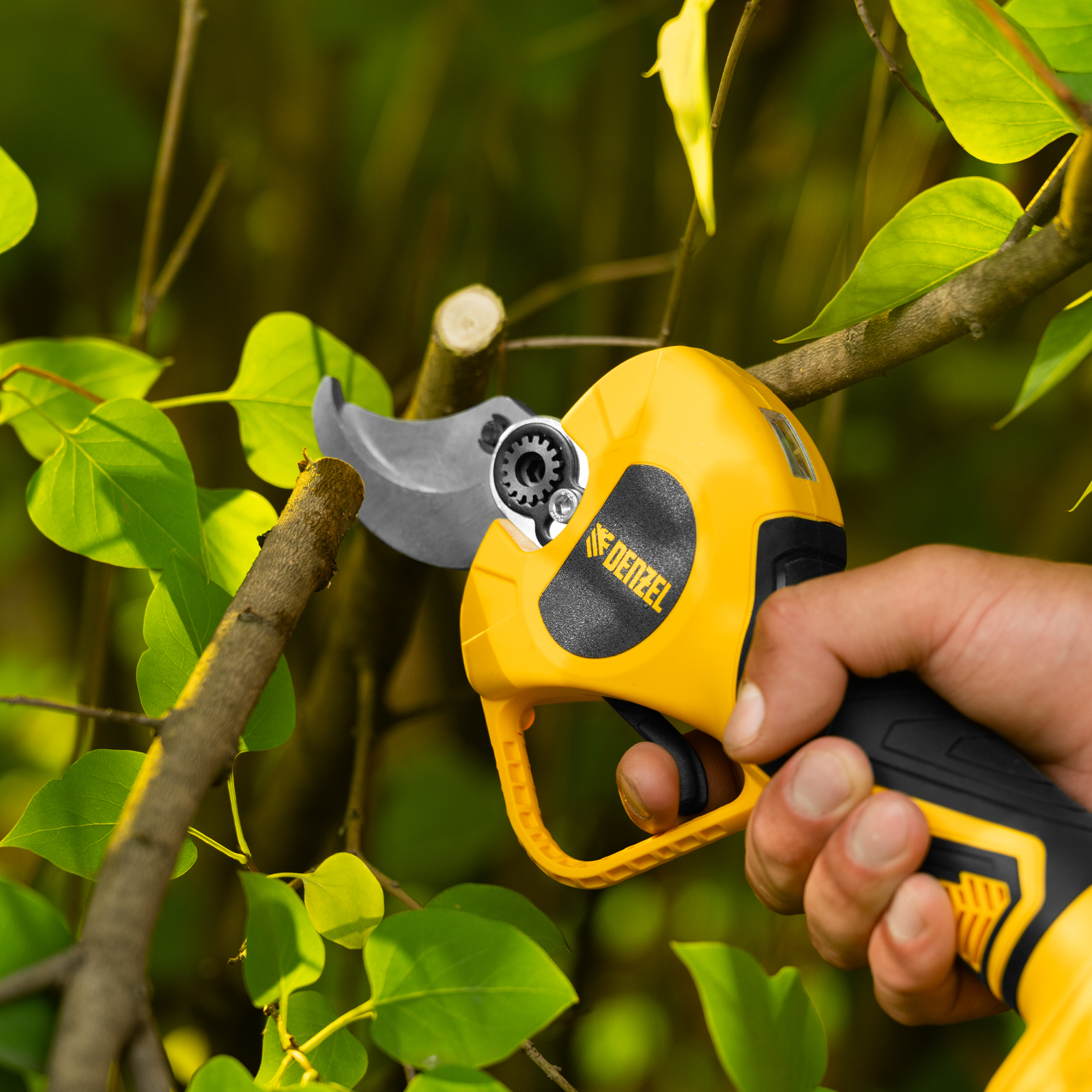 - Эффективная работа — электронная регулировка раскрытия лезвий и двухступенчатый редуктор обеспечивают точность и комфорт при каждом срезе.