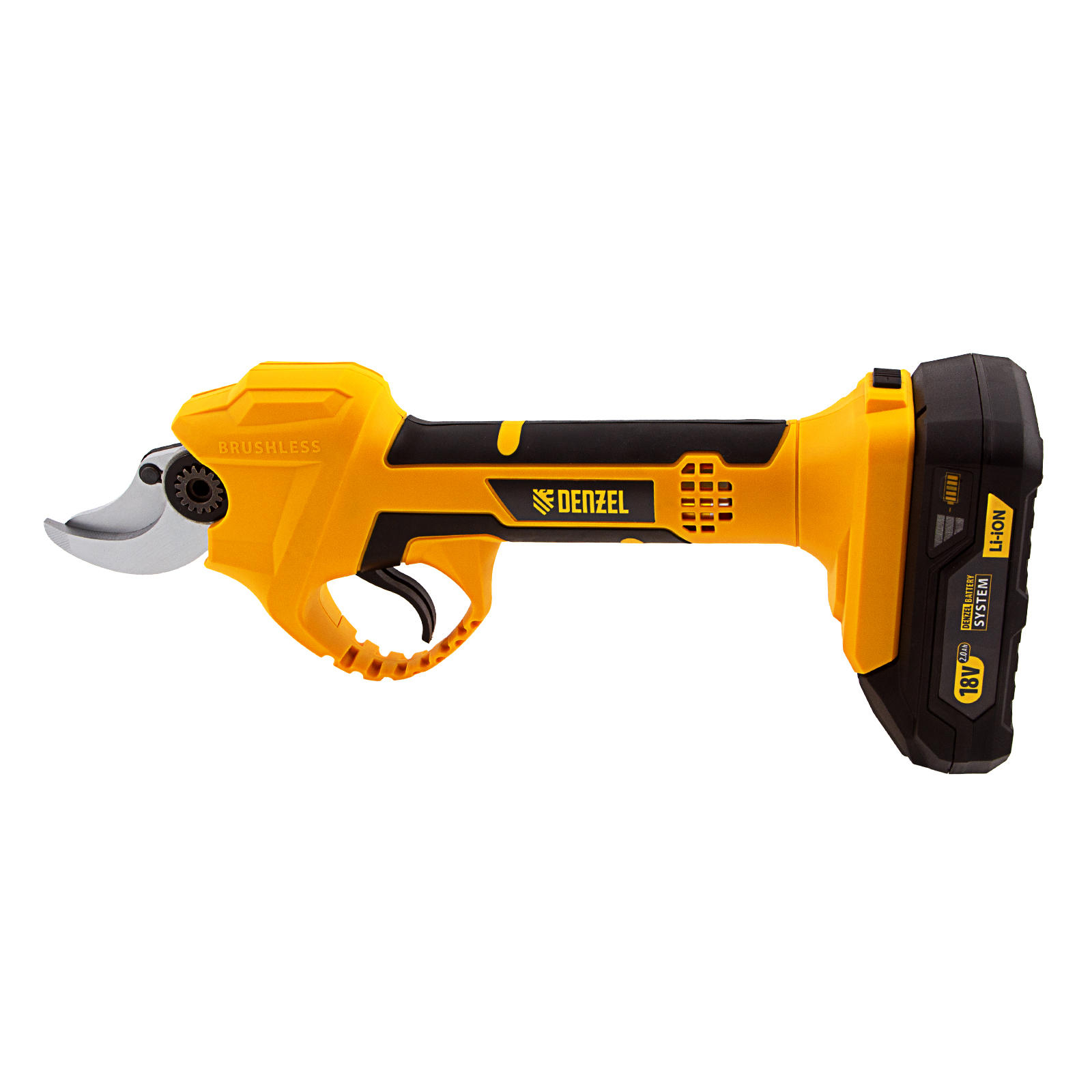 Аккумуляторный секатор Denzel CP-30 с батареей 18В Li-Ion предназначен для срезания ветвей толщиной до 30 мм. Станет незаменимым помощником для владельцев загородных домов, дач и плодовых питомников. Компактный бесщеточный электродвигатель обеспечивает эффективную работу инструмента. Секатор работает от аккумулятора, поэтому будет полезен при работе в труднодоступных местах и отдаленных участках сада.