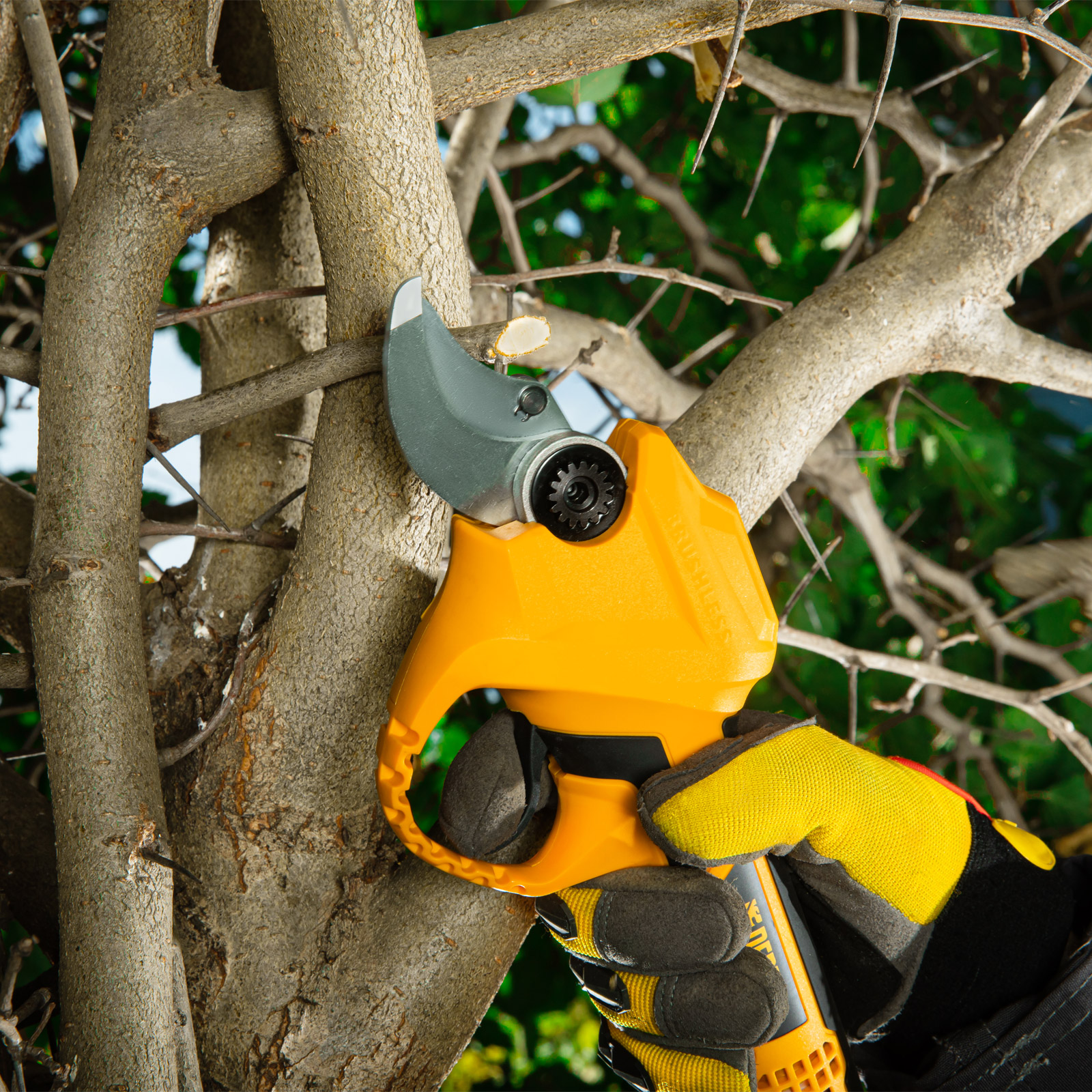 - Предотвращение случайного повторного включения — в случае, если отключение произошло по причине разрядки, секатор не запустится после установки заряженного аккумулятора, а перейдет в защищенный режим.