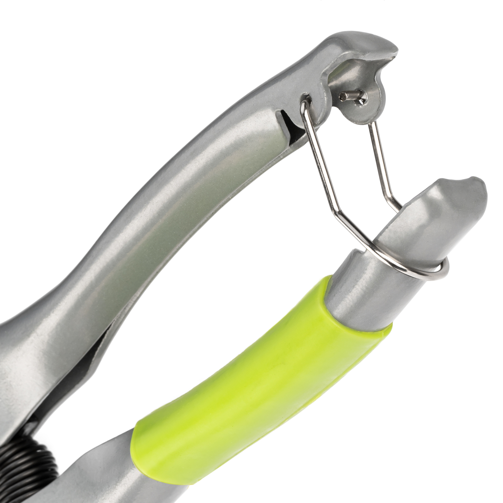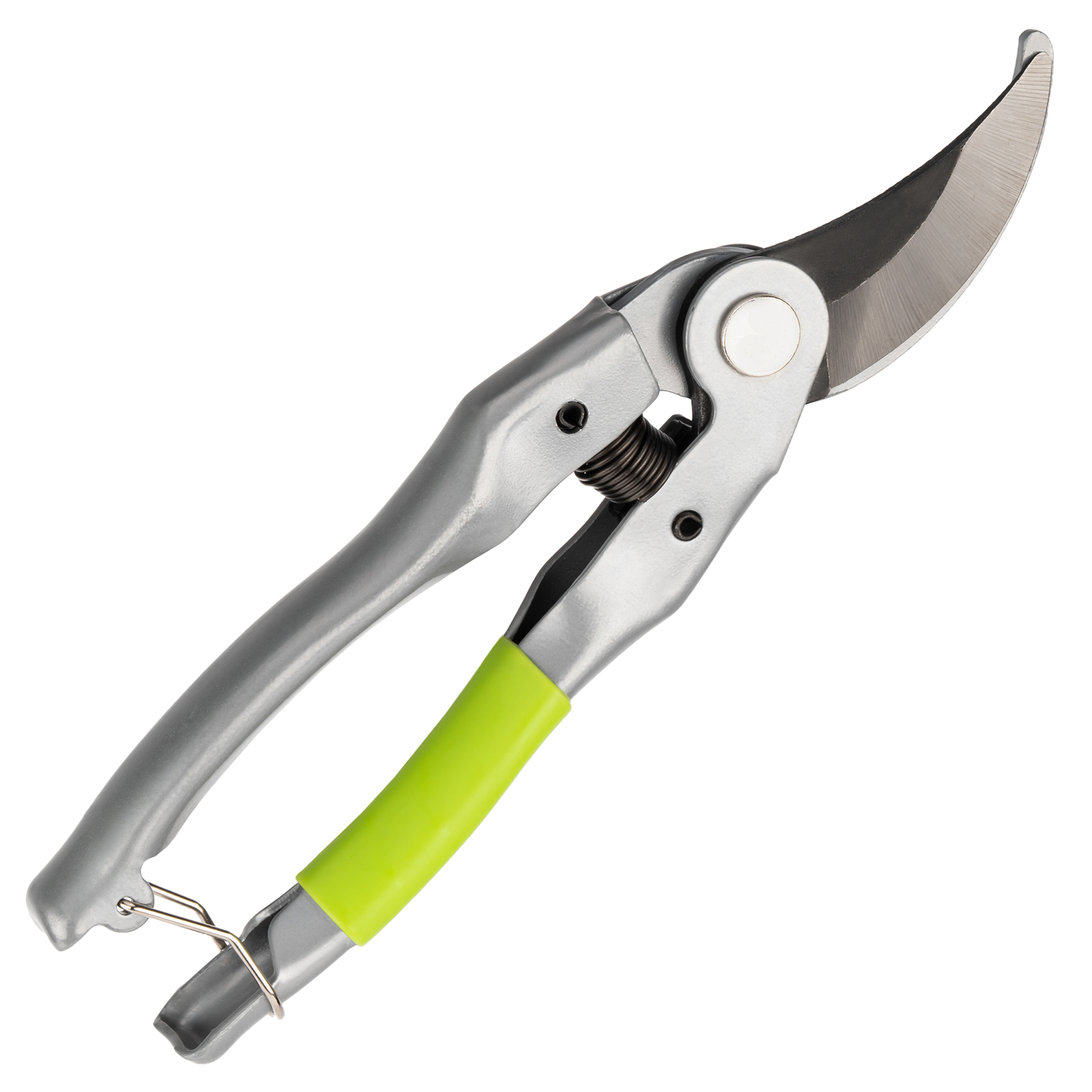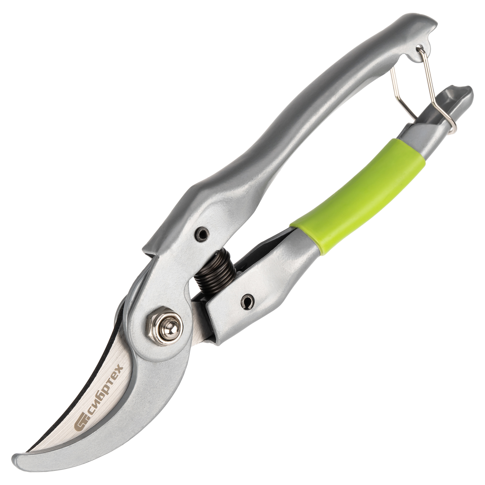 - Безопасность пользователя — металлическая скоба фиксирует рукоятки в сжатом состоянии, что исключает риск случайного раскрытия лезвий во время хранения или транспортировки.