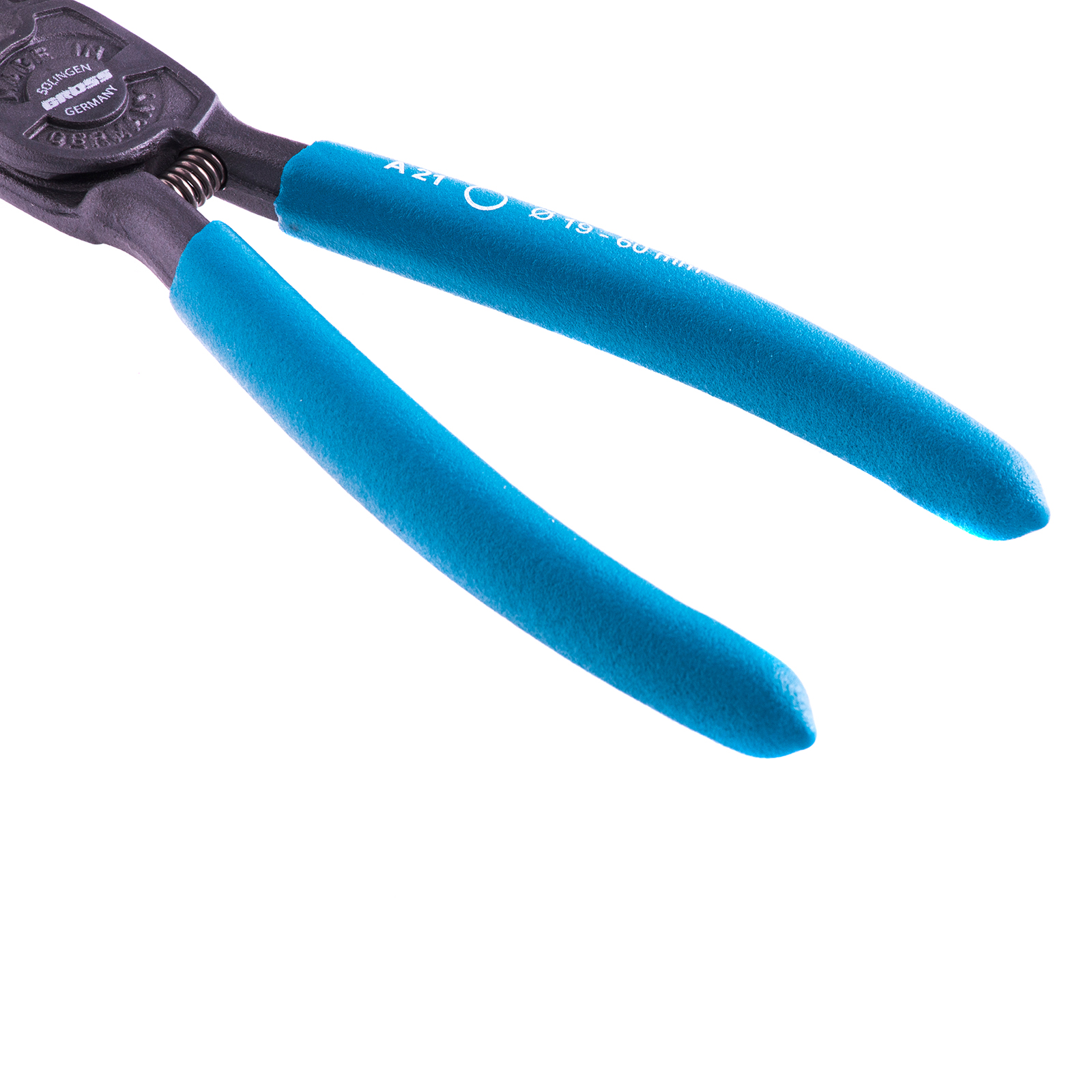 Съемник Gross 18341 длиной 165 мм, с изогнутыми губками, работает на разжим внешних стопорных колец диаметром 19-60 мм для дальнейшей установки их на вал механизма или снятия с него. Имеет наконечники диаметром 1,8 мм и подходит для колец с проушинами соответствующего размера. Изогнутые губки упрощают работу в труднодоступных местах. Инструмент будет полезен в мастерской, автосервисе, а также дома, в гараже или на даче.
