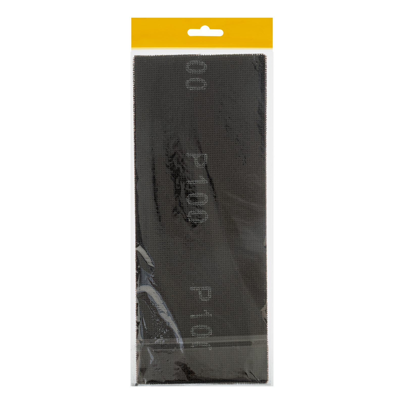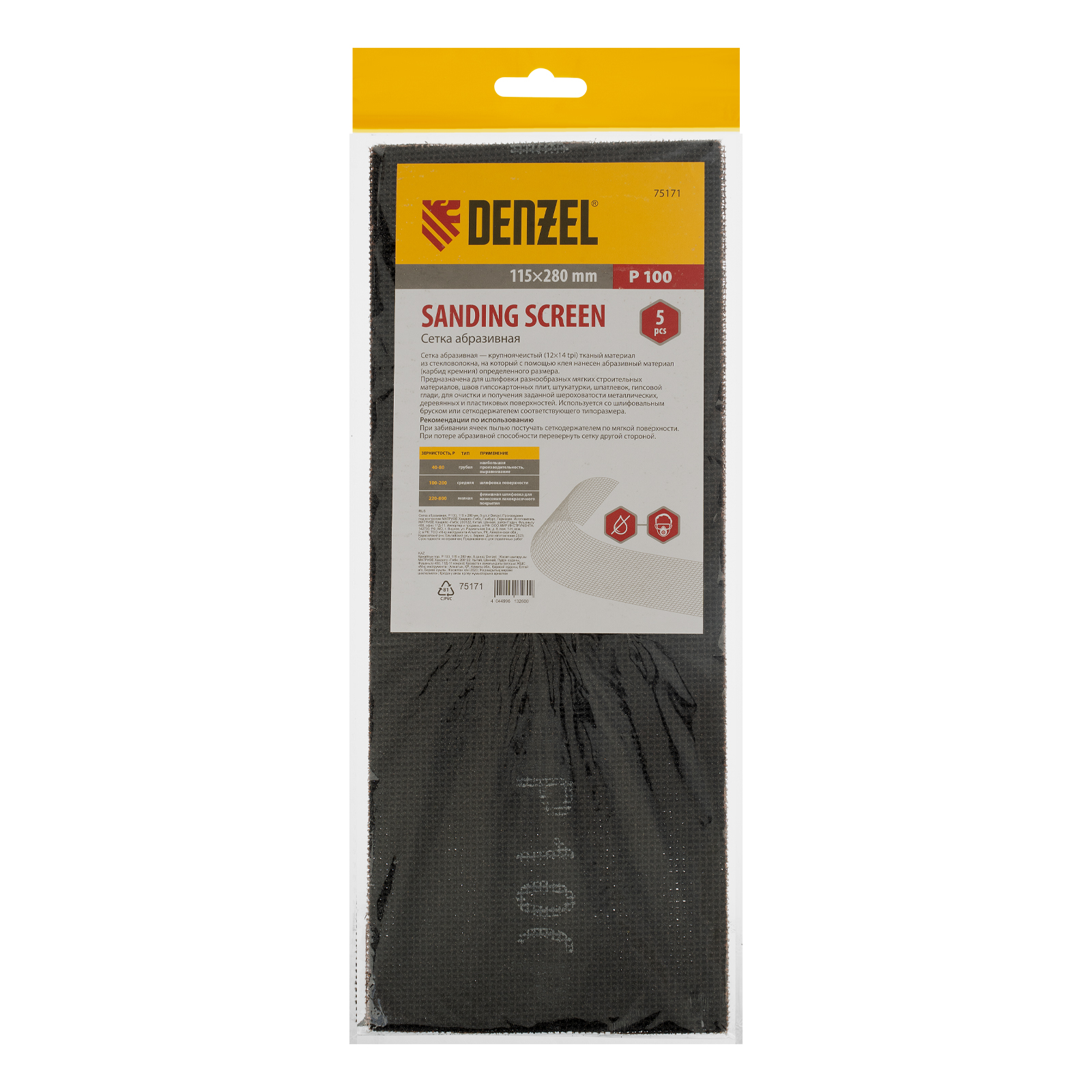 Абразивная сетка Denzel 75171 размером 115 х 280 мм, с зернистостью P 100, 5 шт. в упаковке, применяется для промежуточной шлифовки шпаклеванных поверхностей, а также твердой древесины и металла. Эффективно удаляет верхний слой материала, ржавчину и лакокрасочные покрытия, сглаживает заусенцы. Частицы карбида кремния долго не стачиваются и обеспечивают высокий рабочий ресурс сетки. Полотно совместимо с ручными шлифовальными приспособлениями — брусками и сеткодержателями соответствующего типоразмера.