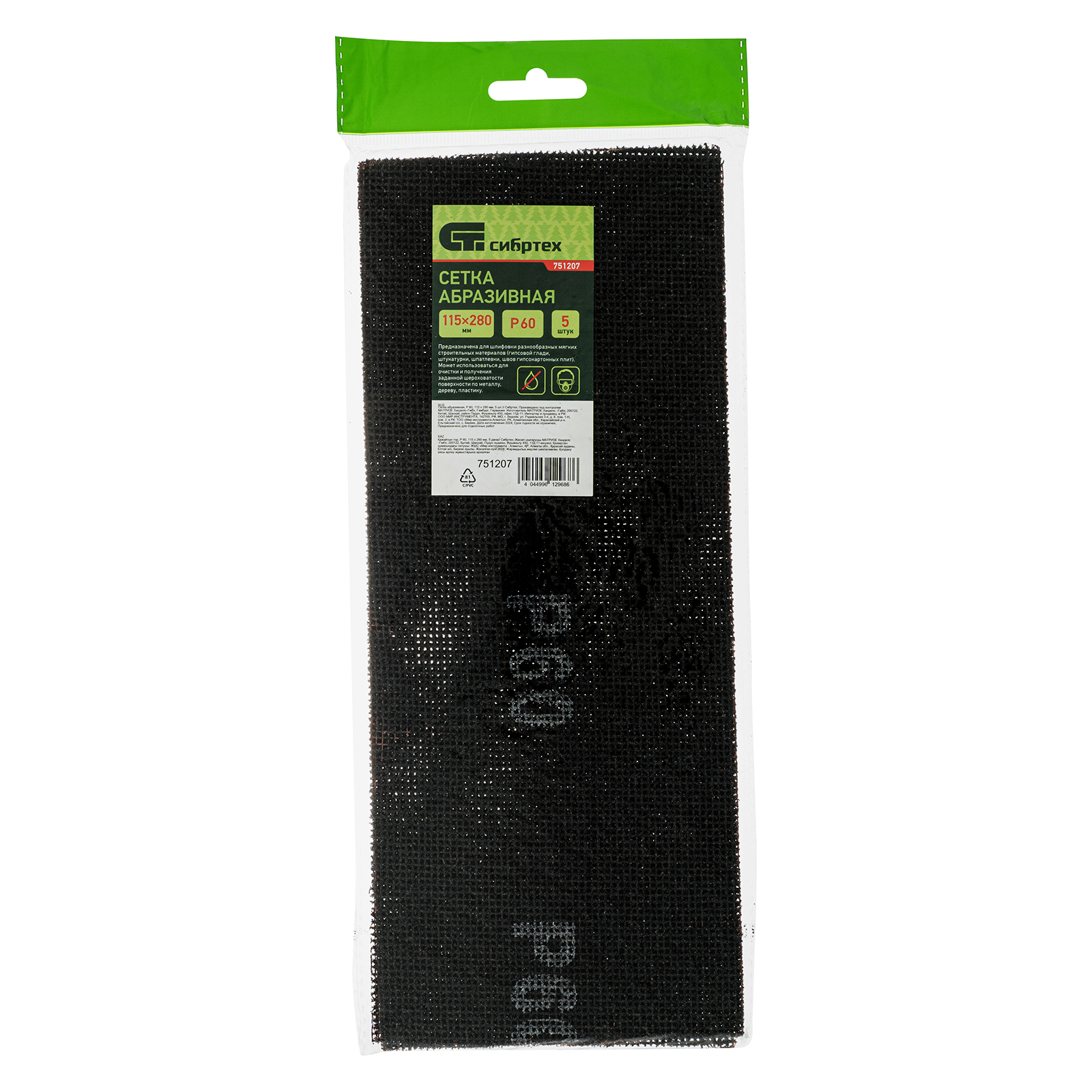 Абразивная сетка Сибртех 751207 размером 115 х 280 мм, с зернистостью P 60, 5 шт. в упаковке, применяется для черновой обработки шпаклеванной поверхности или мягкой древесины, подходит также для шлифовки металлических поверхностей. Крупнозернистый абразив P 60 эффективно снимает толстый слой материала, лак и краску, а также удаляет ржавчину и заусенцы. Сетку устанавливают на ручное приспособление для шлифования — брусок или сеткодержатель. Благодаря основе из прочного стекловолокна она выдерживает многократное применение.