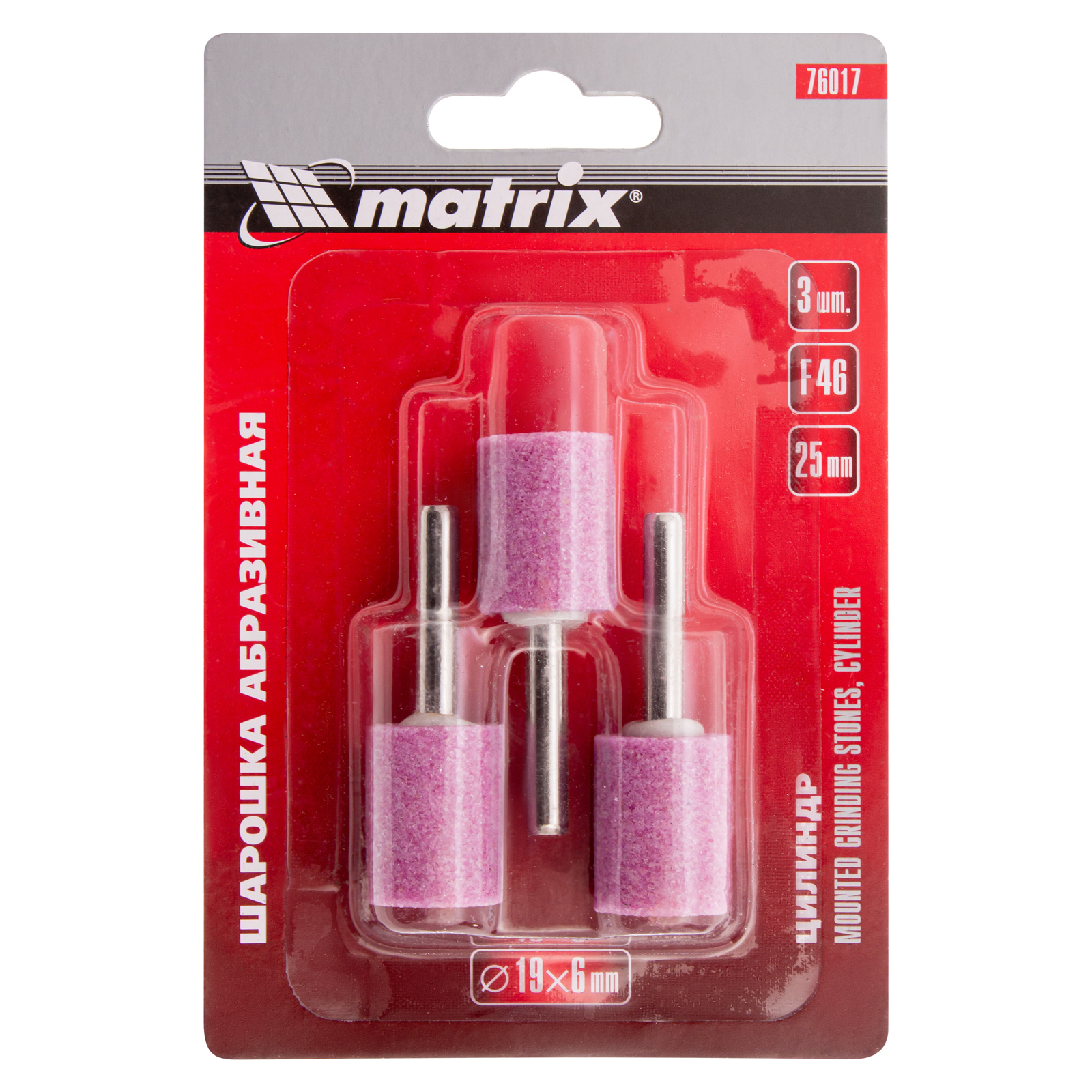 <p>Шарошка абразивная Matrix 76017, 19 х 25 мм, с хвостовиком диаметром 6 мм, 3шт., имеет форму цилиндра и покрыта крупнозернистым абразивом F46. Предназначена для очистки прямолинейных поверхностей, расширения отверстий, снятия фасок и удаления заусенцев. Она используется в качестве оснастки на дрелях, шуруповертах, а также ПШМ при выполнении отделочных и декоративных работ.</p><h2>Преимущества</h2><ul><li>Абразив из оксида алюминия универсален по своему применению, поэтому подходит для обработки различных поверхностей: металла, пластика, древесины, минеральных материалов.</li><li>Крупнозернистый абразив F46 позволяет осуществить грубую шлифовку заготовок.</li><li>Комплект состоит из 3 шарошек, которых хватит на большой объем работ.</li></ul>