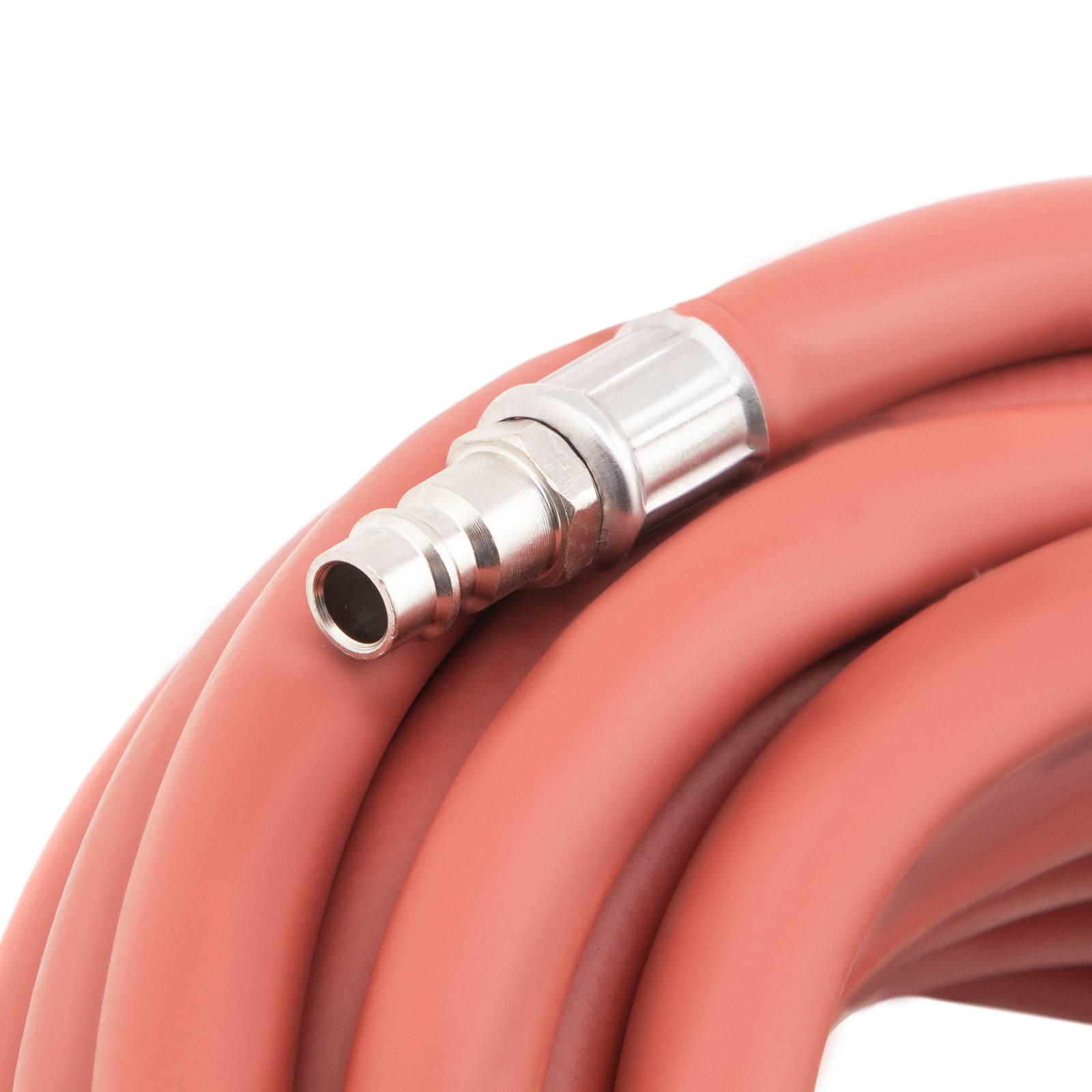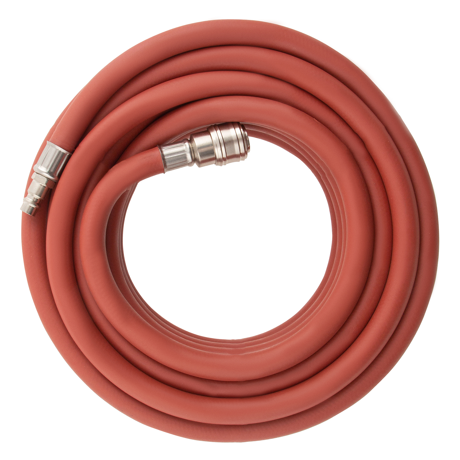 Пневматический армированный резиновый шланг Stels 57021, 10 х 16 мм, длиной 10 м, с быстросъемами, служит для подключения пневматического оборудования к компрессору и выдерживает давление до 24 бар. Изготовлен из резины и армирован капроновой нитью, что обеспечивает высокую устойчивость к механическому воздействию и пережатию, а также к перепадам температур. Может использоваться для прокладки воздушной магистрали. Шланг пригодится на производстве, строительной площадке и в автосервисе.