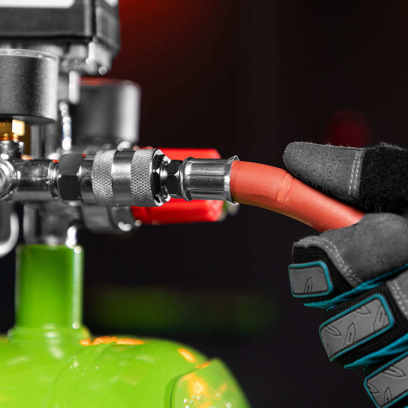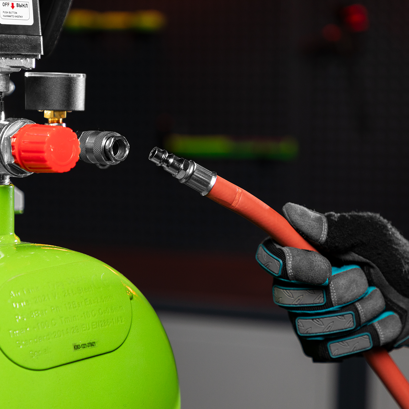 Быстросъемные соединения типа рапид облегчают подключение шланга к компрессору и пневматическим инструментам.