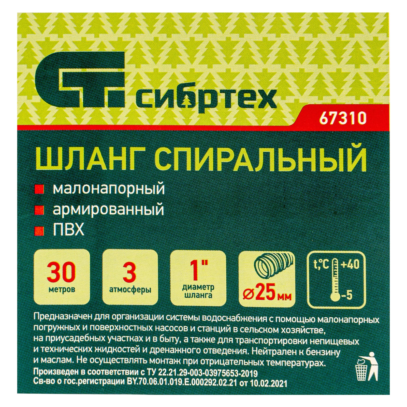 Малонапорный спиральный армированный шланг Сибртех 67310 длиной 30 метров и диаметром 25 мм рассчитан на давление до 3 атмосфер. Совместно с насосом/насосной станцией он позволяет создать систему водоснабжения на даче или в загородном доме. Также может использоваться для транспортировки непищевых и технических жидкостей, отведения воды в системах кондиционирования и вентиляции.