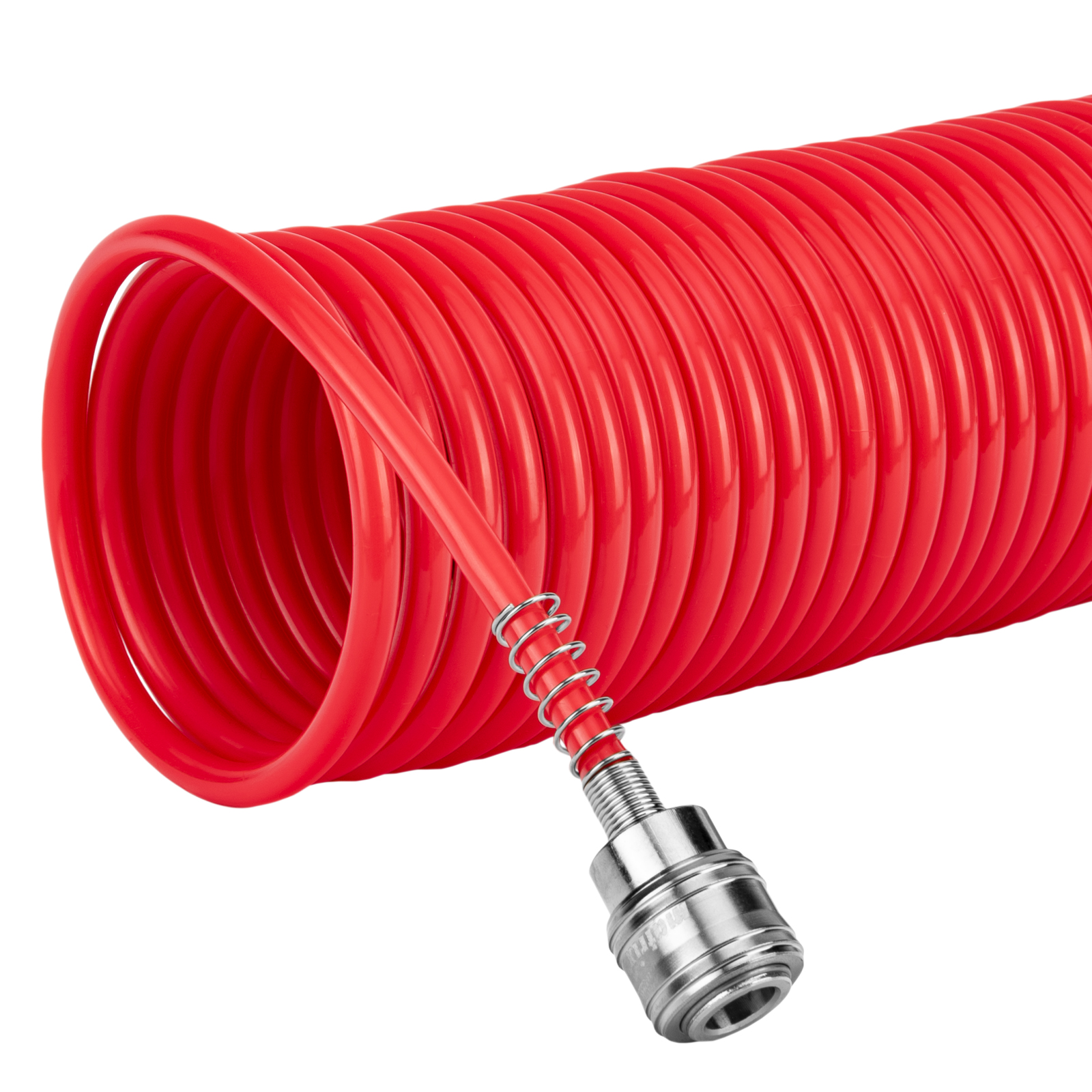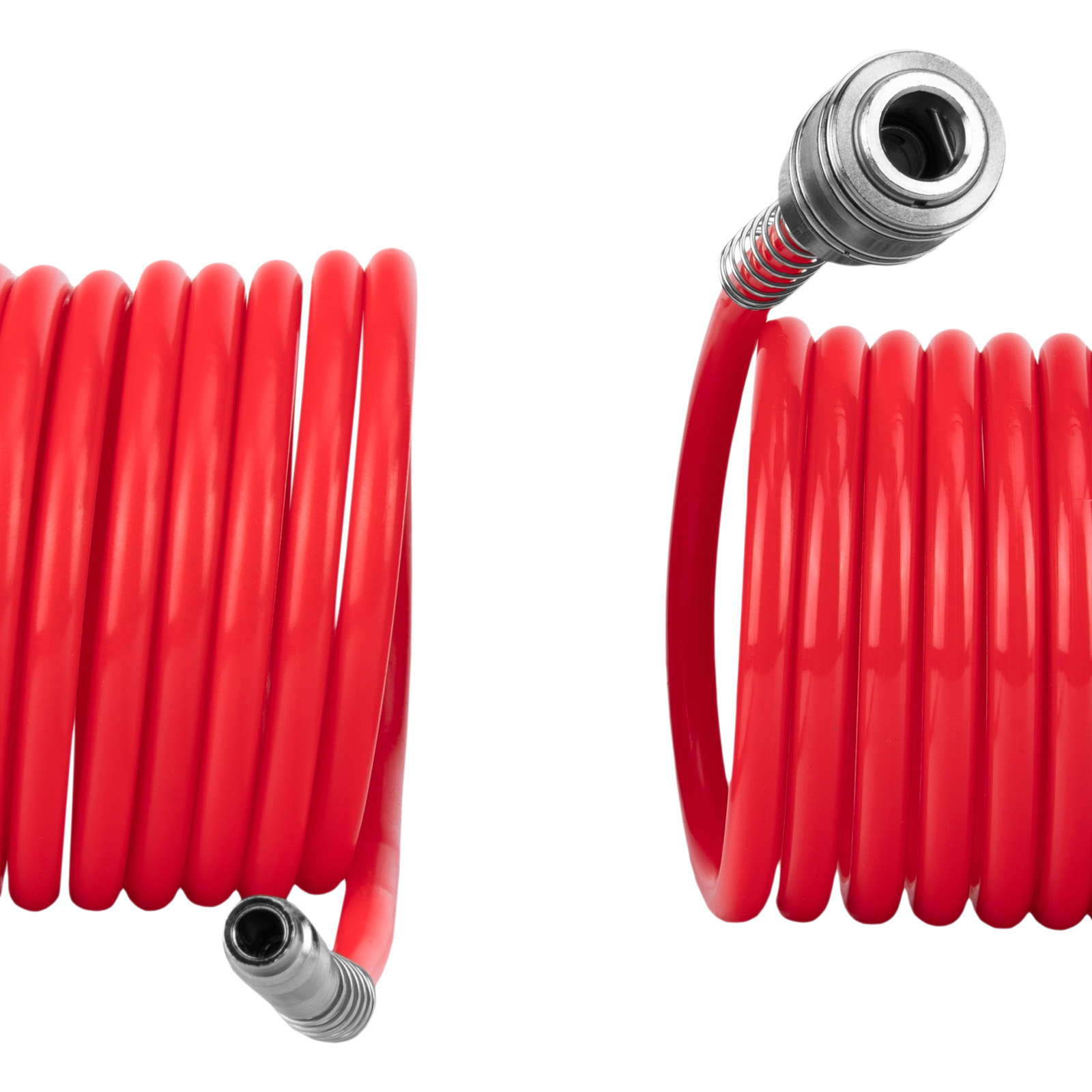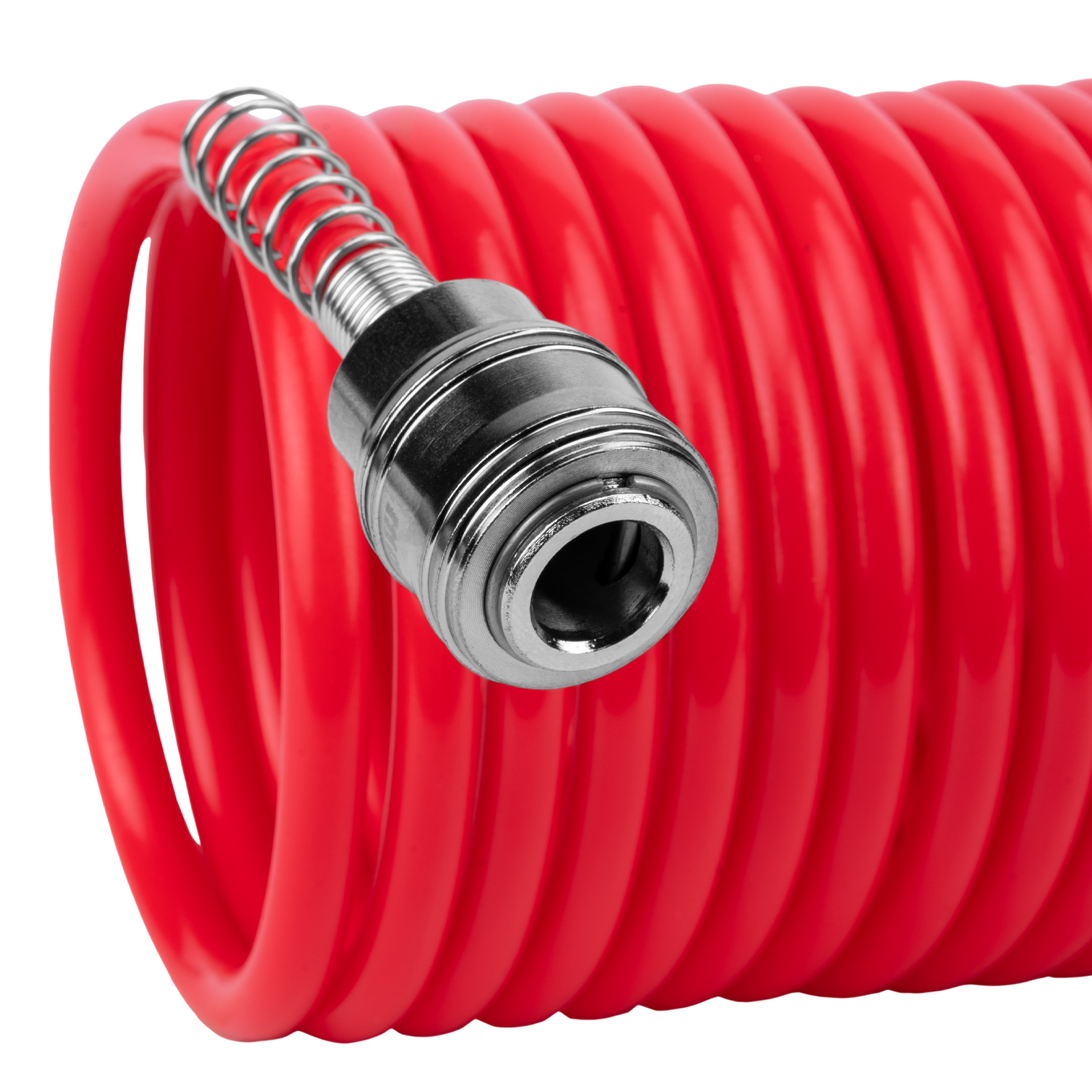 Спиральный воздушный шланг Matrix 57006 длиной 15 м, с быстросъемными соединениями, используется для подключения пневмоинструментов к компрессору. Изготовлен из легкого полиэтилена, за счет чего даже длительная работа не вызывает усталости. Имеет форму спирали, поэтому его не нужно скручивать после работы. Рукав пригодится в автосервисе, слесарной мастерской, а также во время отделочных работ.