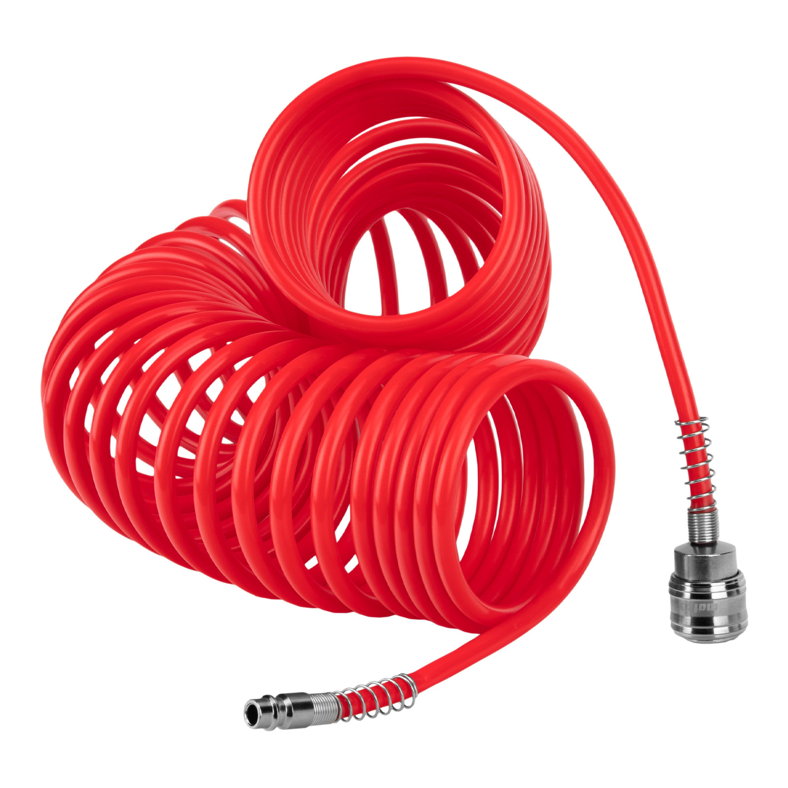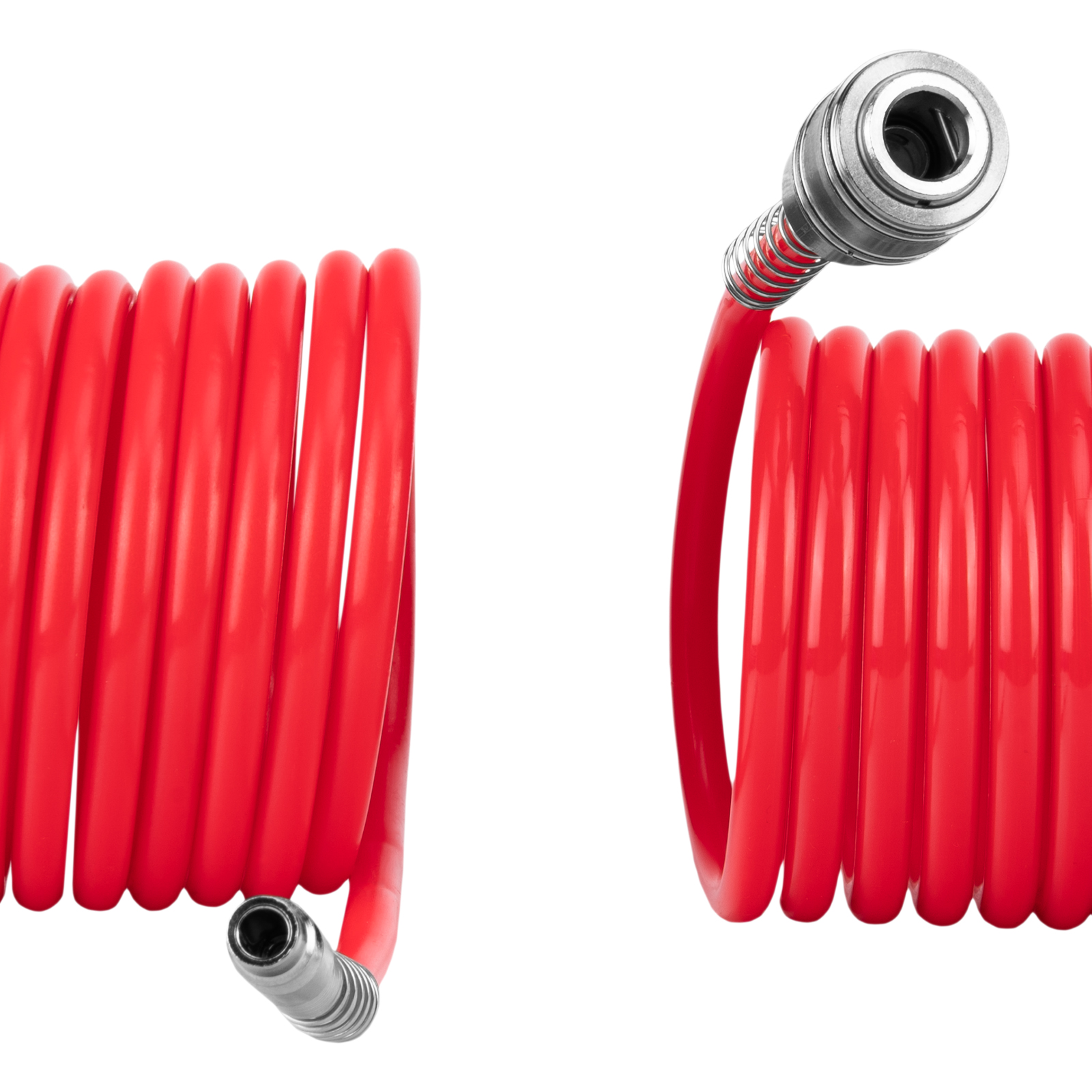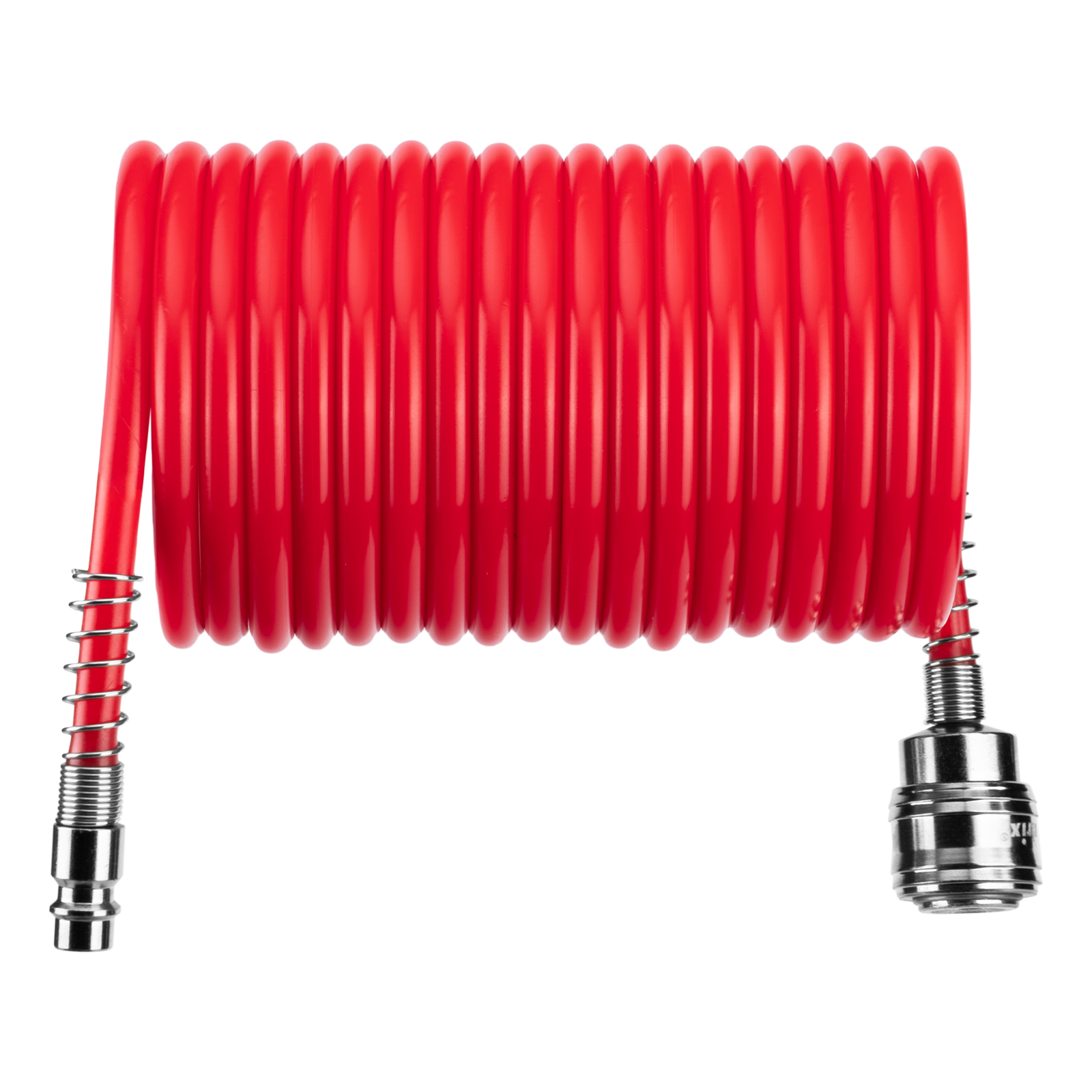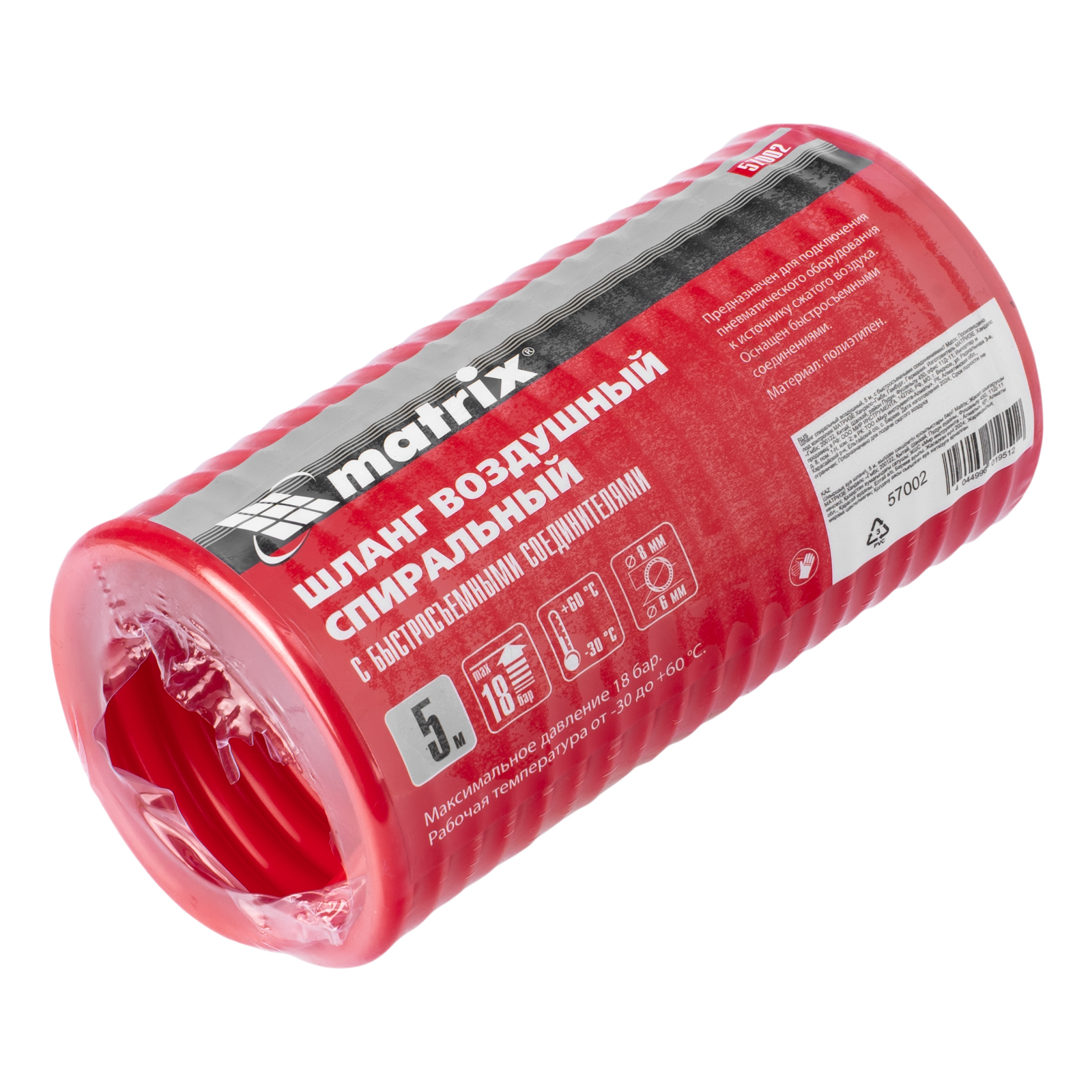Спиральный воздушный шланг Matrix 57002 длиной 5 м, с быстросъемными соединениями, используется для подключения пневмоинструментов к компрессору. Изготовлен из легкого полиэтилена, за счет чего даже длительная работа не вызывает усталости. Имеет форму спирали, поэтому его не нужно скручивать после работы. Рукав пригодится в автосервисе, слесарной мастерской, а также во время отделочных работ.