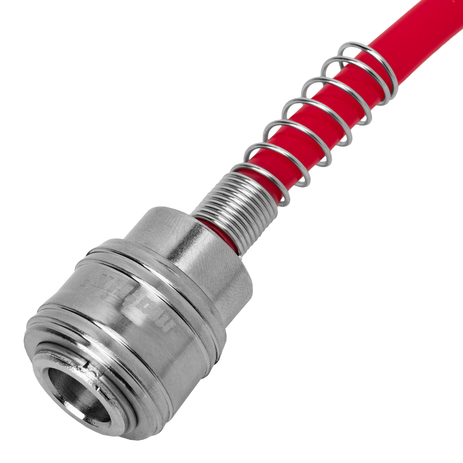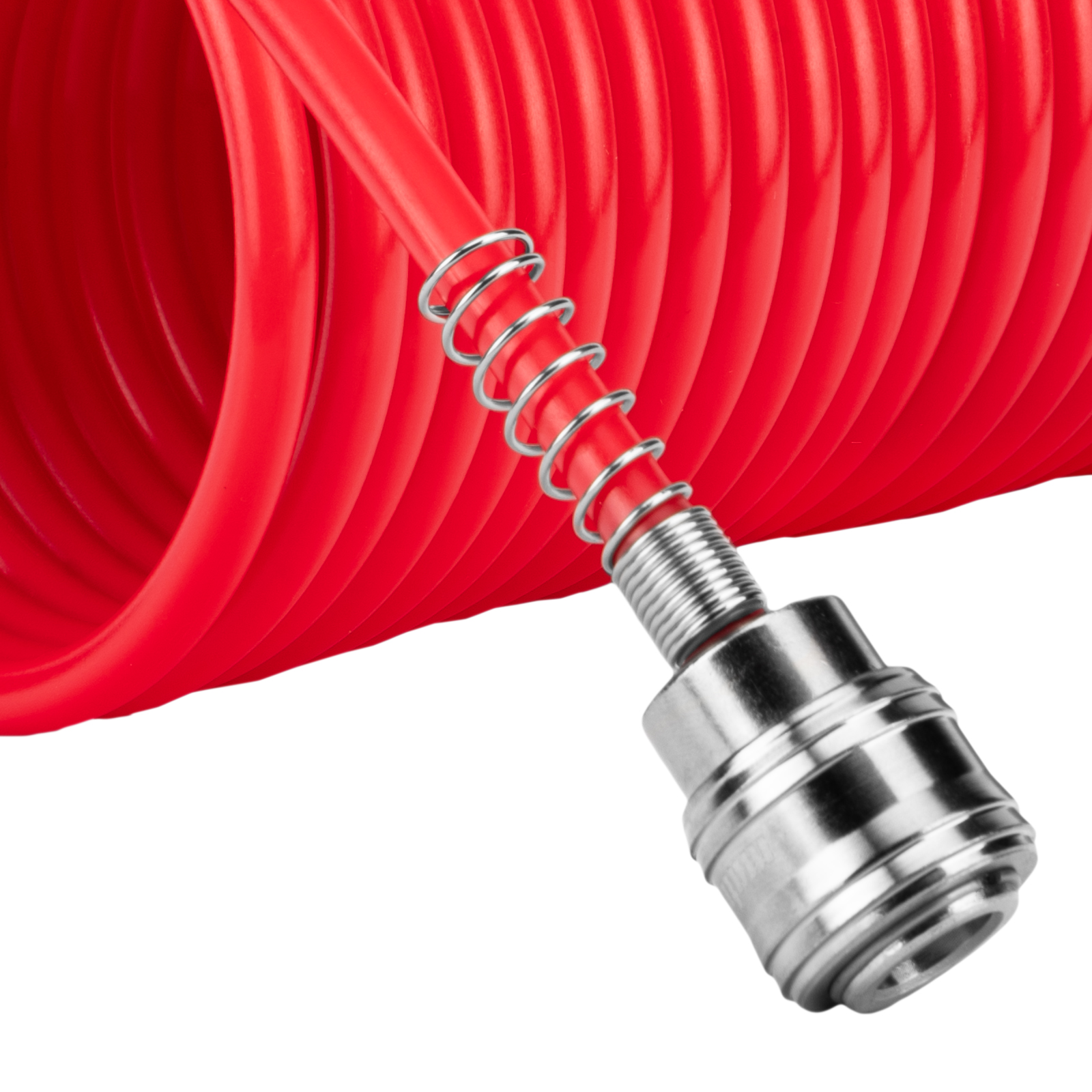 - Максимальное давление составляет 18 бар, что позволяет использовать шланг с мощным компрессорным оборудованием.