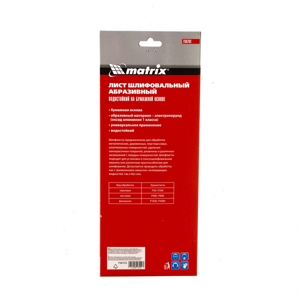 Шлифлист Matrix 756703 размером 115 х 280 мм оптимален для промежуточной обработки. Устанавливается в плоскошлифовальную машину, а также различные шлифовальные приспособления, либо применяться для ручной обработки. Среднезернистый электрокорунд Р150 способен справиться с тонким слоем эмали, лака, краски, удалением налета ржавчины и загрязнений, подготовкой поверхности к отделке.