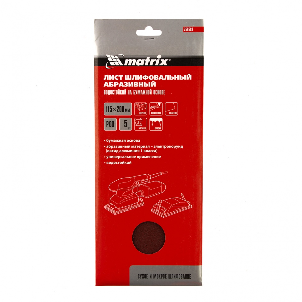 Шлифлист Matrix 756583 размером 115 х 280 мм подходит для черновой обработки. Устанавливается в плоскошлифовальную машину, а также различные шлифовальные приспособления, либо применяться для ручной обработки. Крупнозернистый электрокорунд Р80 способен справиться со старыми покрытиями, ржавчиной и загрязнениями, подготовкой поверхности к дальнейшей обработке.