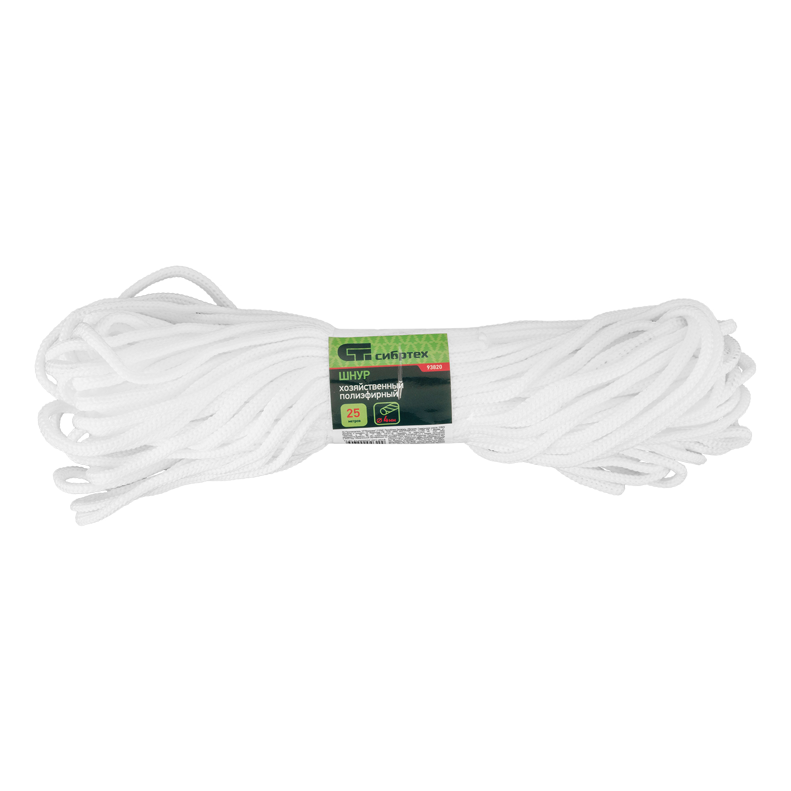 Хозяйственный полиэфирный шнур Сибртех 93820 диаметром 4 мм и длиной 25 м используется для упаковки и закрепления грузов, связывания предметов, сушки белья и решения других профессиональных и бытовых задач. Обладает высокой прочностью — максимальная разрывная нагрузка составляет 120 кгс. Будет полезен дома, на даче, а также в походе, на охоте или рыбалке.