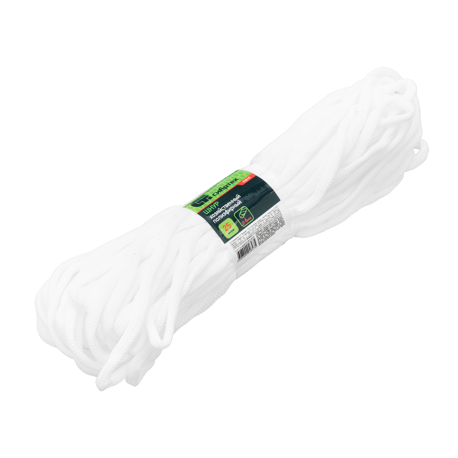 Хозяйственный полиэфирный шнур Сибртех 93819 диаметром 6 мм и длиной 25 м используется для упаковки и закрепления грузов, связывания предметов, сушки белья и решения других профессиональных и бытовых задач. Обладает высокой прочностью — максимальная разрывная нагрузка составляет 140 кгс. Будет полезен дома, на даче, а также в походе, на охоте или рыбалке.