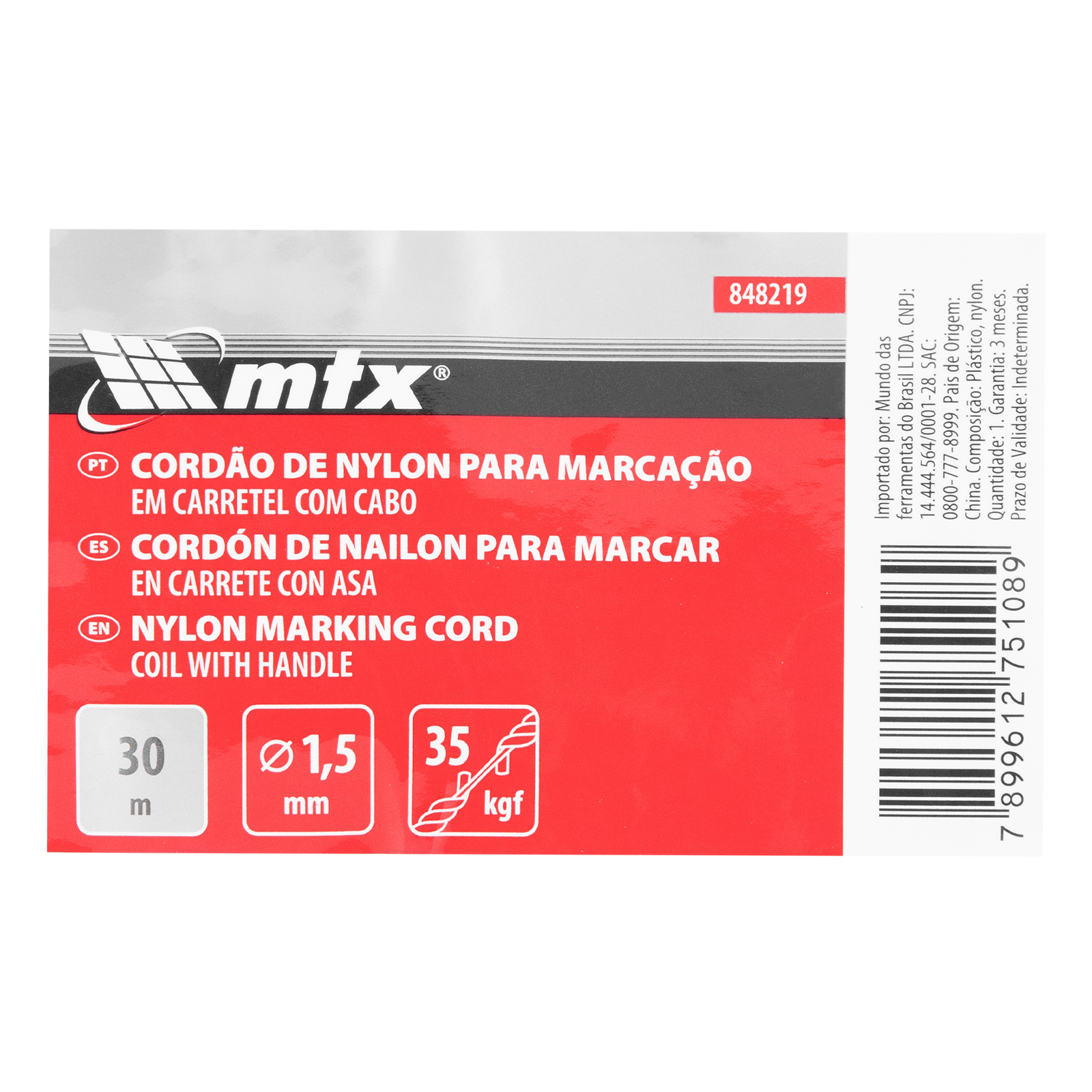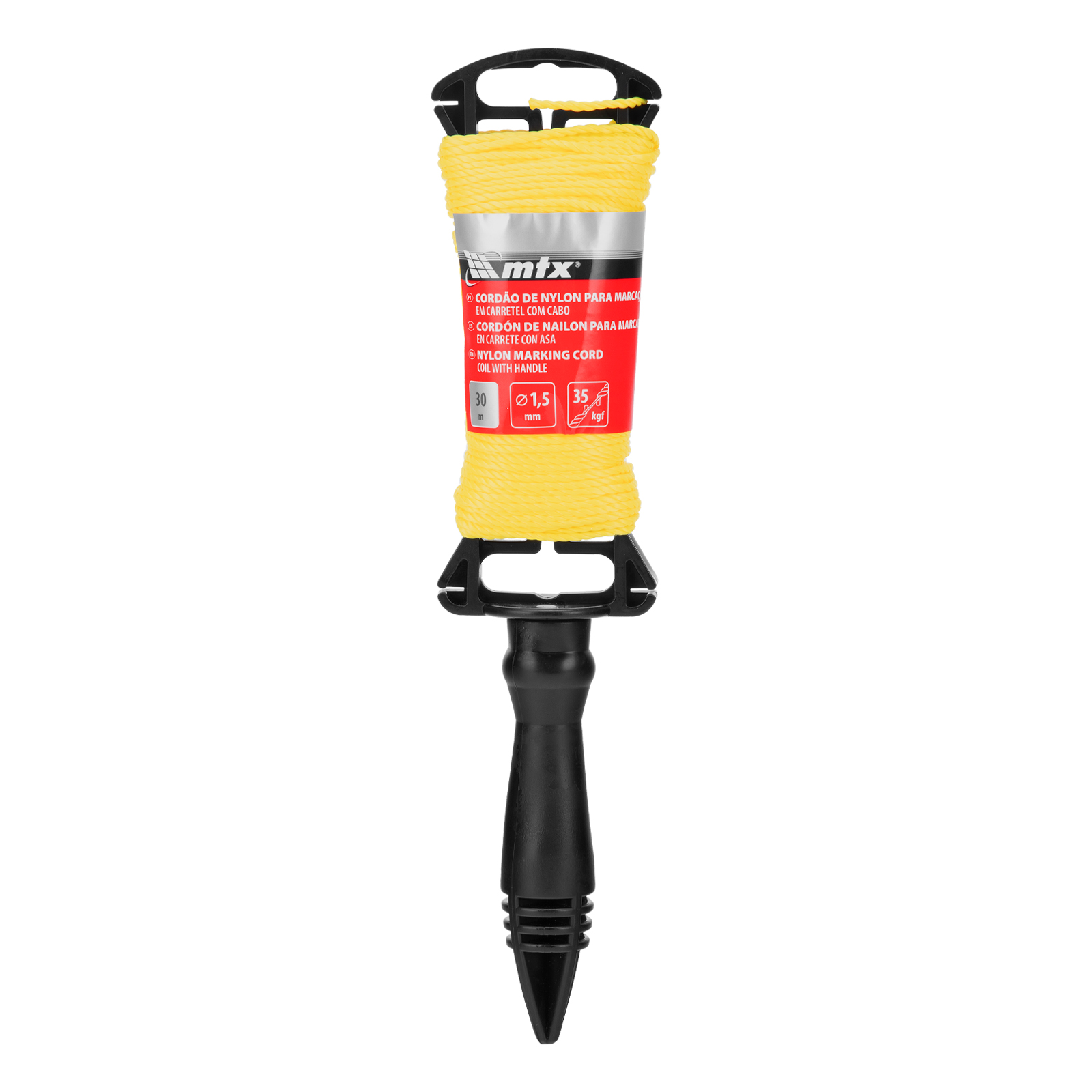 Нейлоновый разметочный шнур Matrix 84821 на катушке с ручкой, длиной 30 м и диаметром 1,5 мм, пригодится для выполнения строительно-ремонтных, земельных и хозяйственных работ. Позволяет производить разметку больших и маленьких участков, контролировать отклонения от прямолинейности при монтаже различных конструкций, кладке кирпича и т.д.