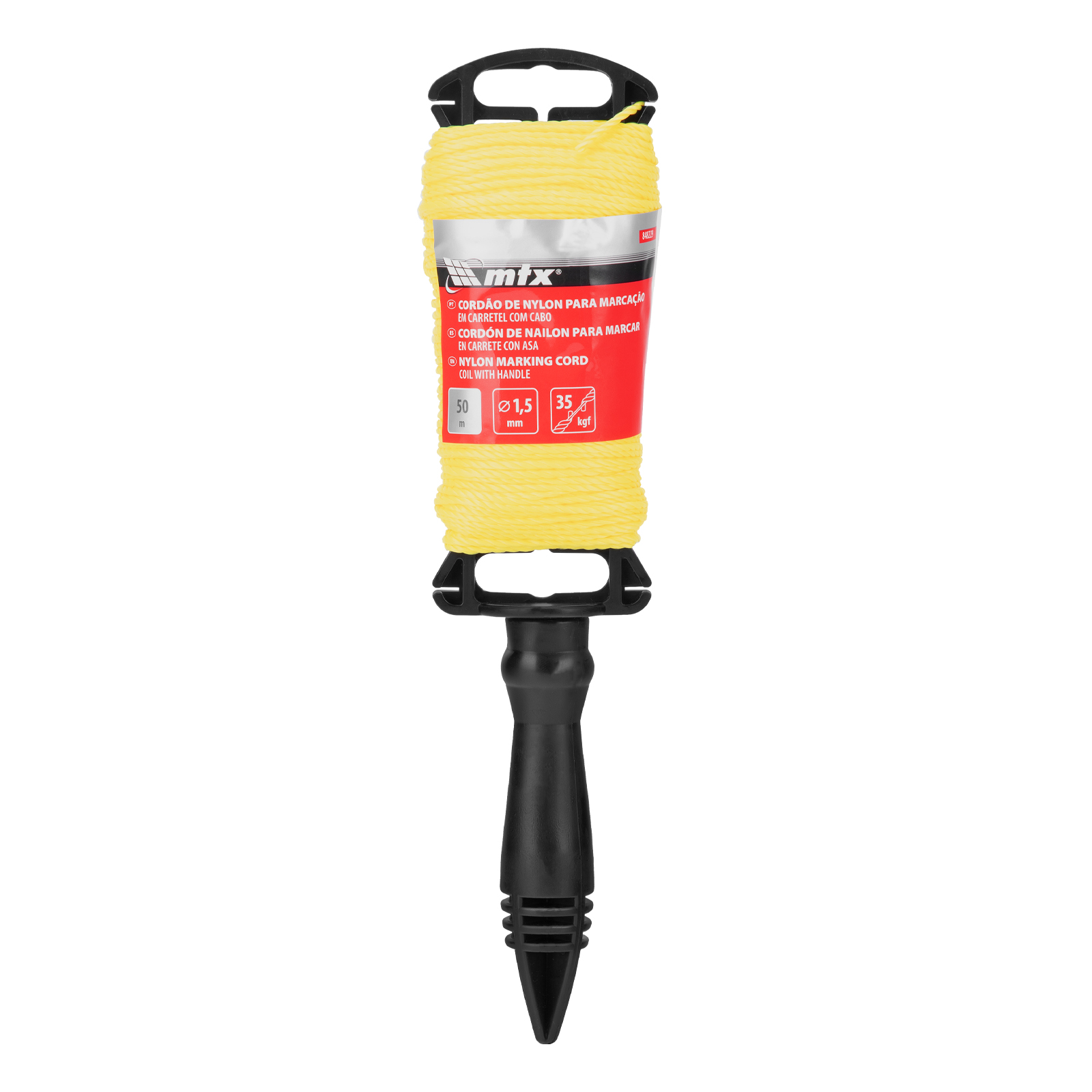Нейлоновый разметочный шнур Matrix 84822 на катушке с ручкой, длиной 50 м и диаметром 1,5 мм, пригодится для выполнения строительно-ремонтных, земельных и хозяйственных работ. Позволяет производить разметку больших и маленьких участков, контролировать отклонения от прямолинейности при монтаже различных конструкций, кладке кирпича и т.д.