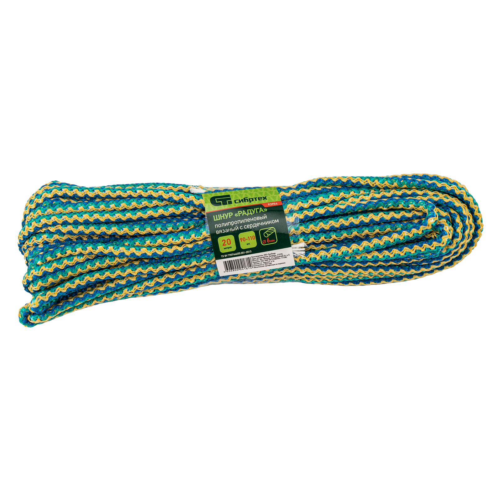 Вязаный полипропиленовый шнур с сердечником Сибртех «Радуга» 93954 белого цвета, диаметром 6 мм, длиной 20 м, будет полезен для хозяйственных нужд: сушки белья, связывания предметов, подвязки растений. Пригодится также в походе, на охоте или рыбалке. Благодаря сердечнику и высокопрочной оплетке обладает повышенной устойчивостью к истиранию и разрыву — максимальная разрывная нагрузка составляет 90 кгс. Шнур выдерживает значительный вес, не растягивается и не провисает.