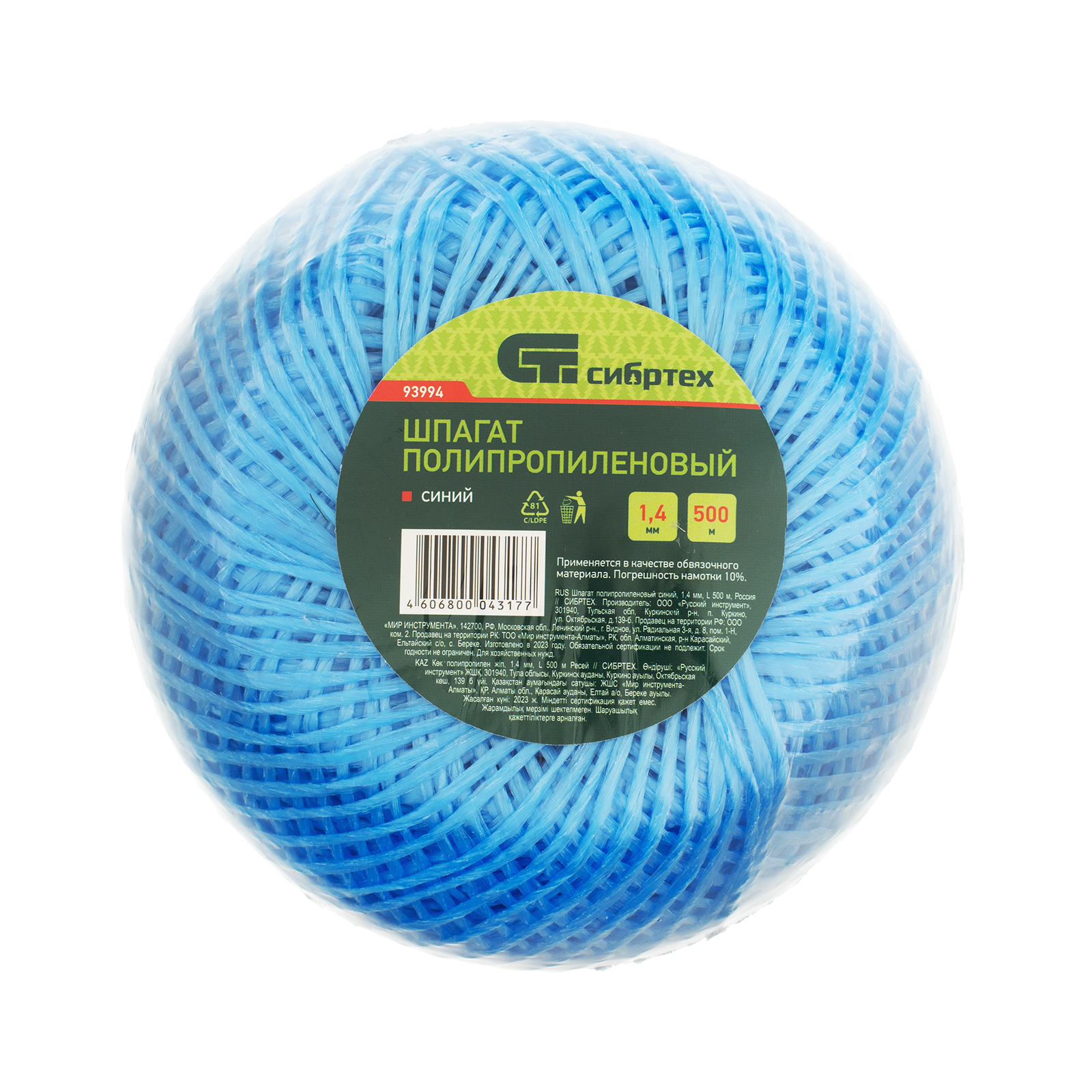 Длительный срок службы — шпагат изготовлен из полипропиленовых нитей, устойчивых к истиранию и воздействию химических веществ.