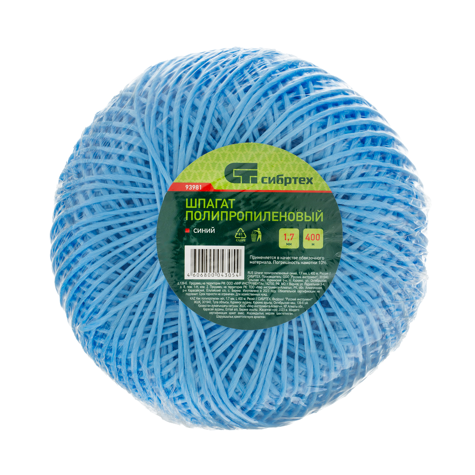 Синий полипропиленовый шпагат Сибртех 93981 диаметром 1,7 мм и длиной 400 м используется для упаковки грузов, связывания предметов, подвязки растений и решения других задач. Шпагат имеет многониточную свивку и выдерживает разрывную нагрузку 50 кгс. Бобину можно разматывать как с внутренней, так и с наружной стороны. Шпагат будет полезен в сельском хозяйстве, на складе, производстве, а также дома или на даче.